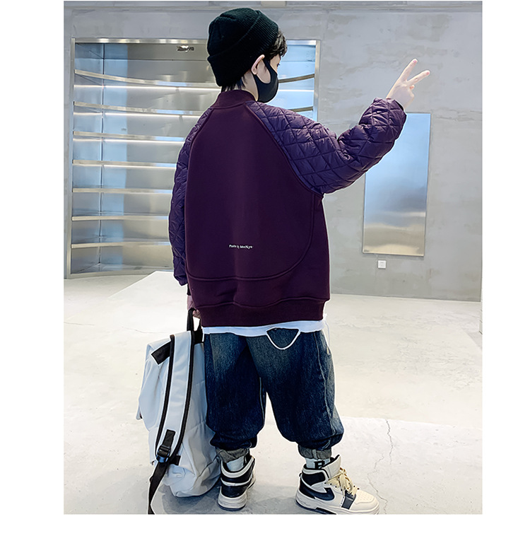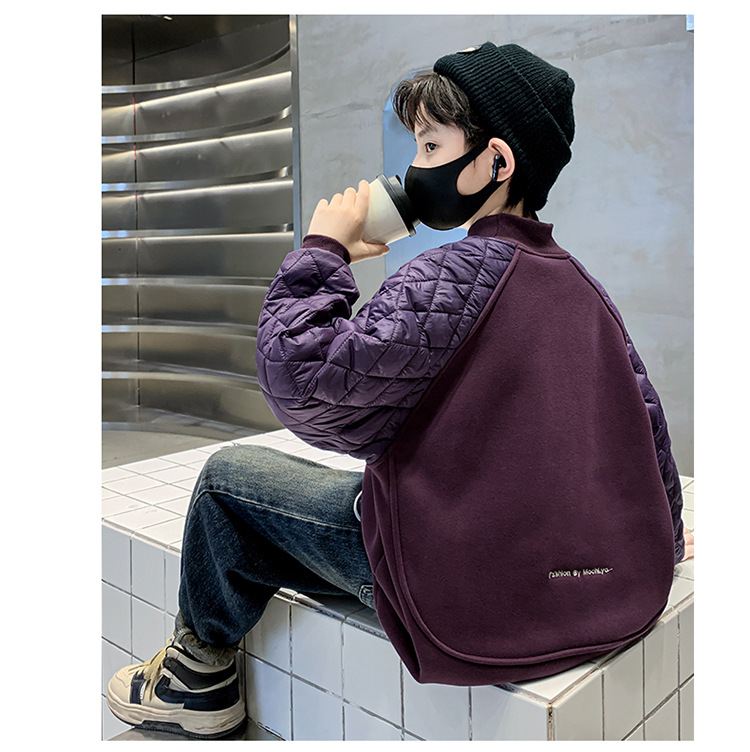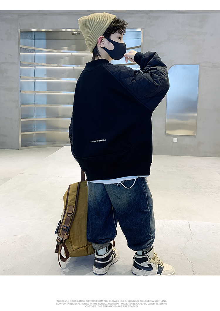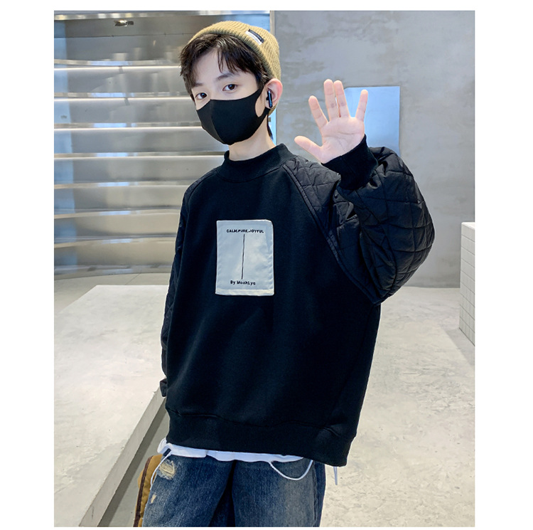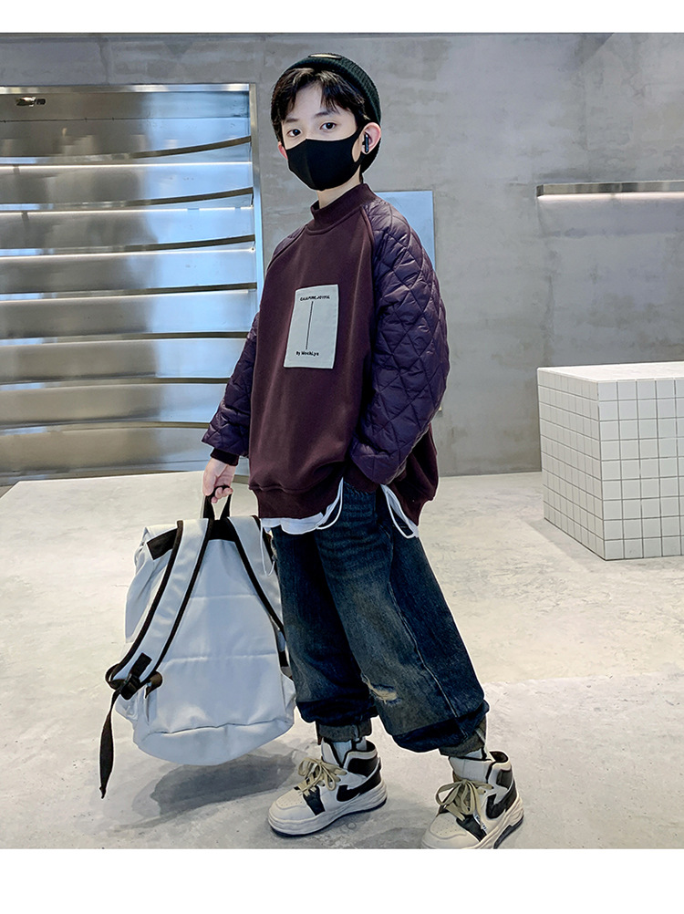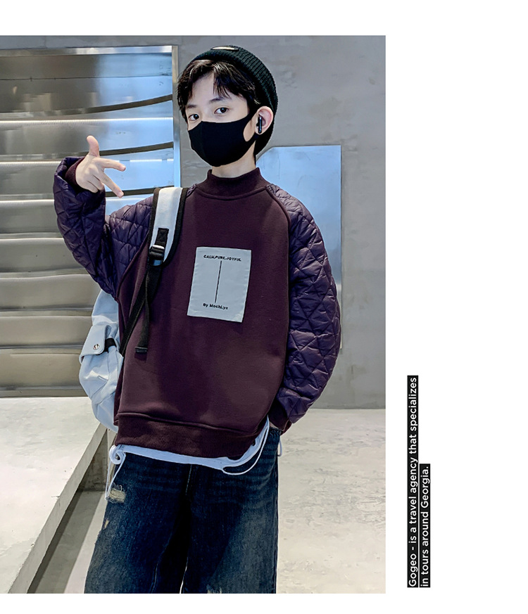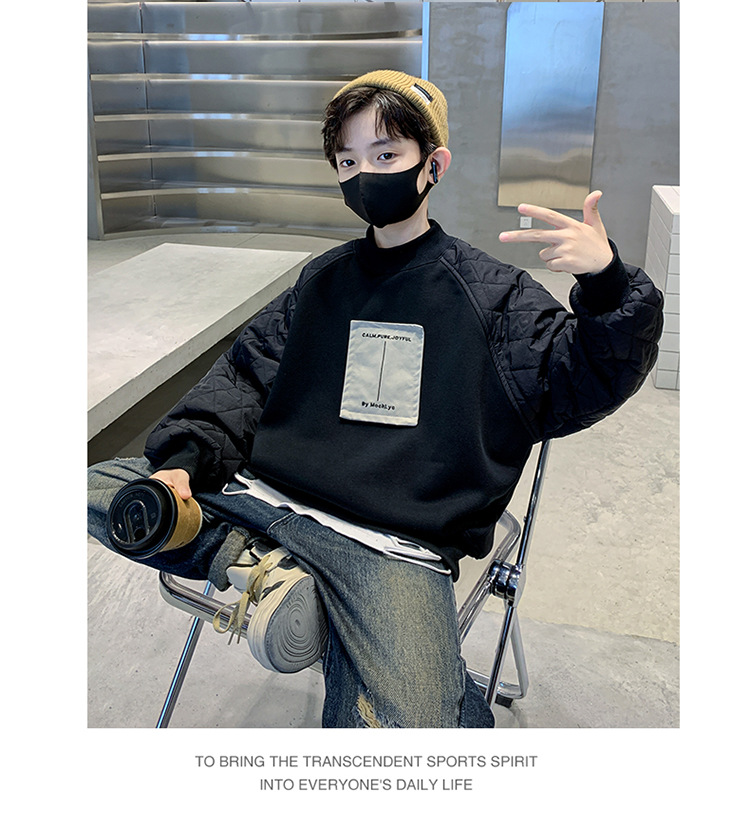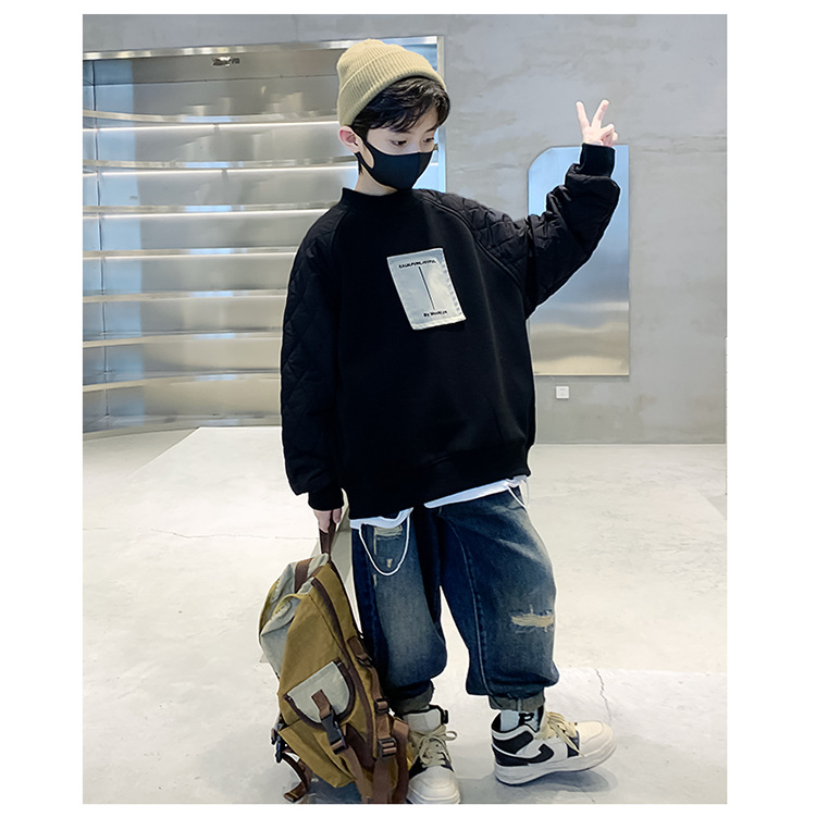 男童冬季拼接夹棉加绒卫衣2023新款中大儿童休闲加厚保暖卫衣冬装