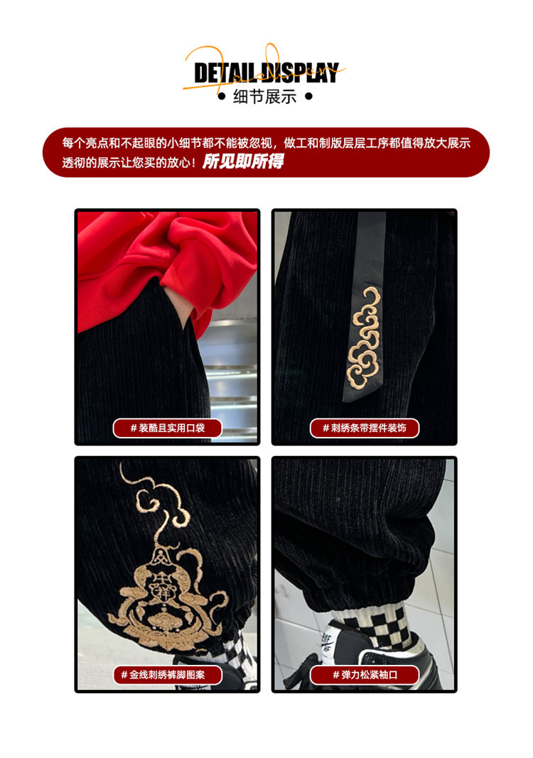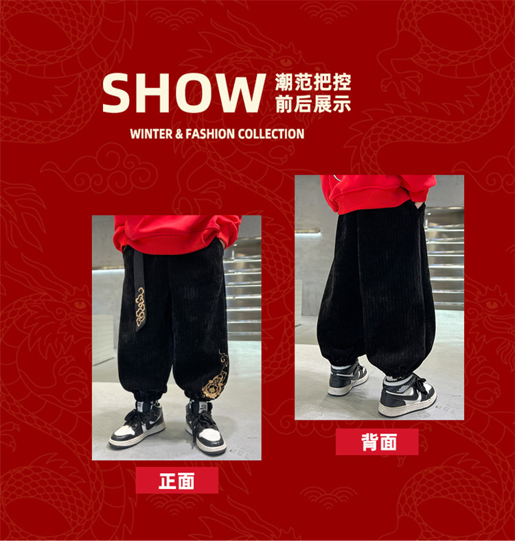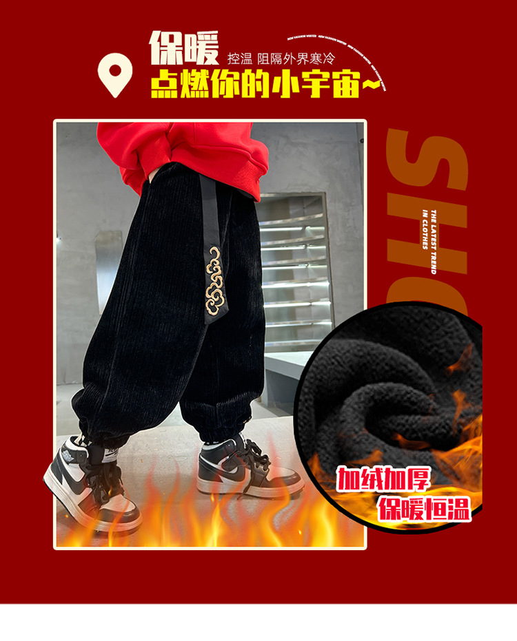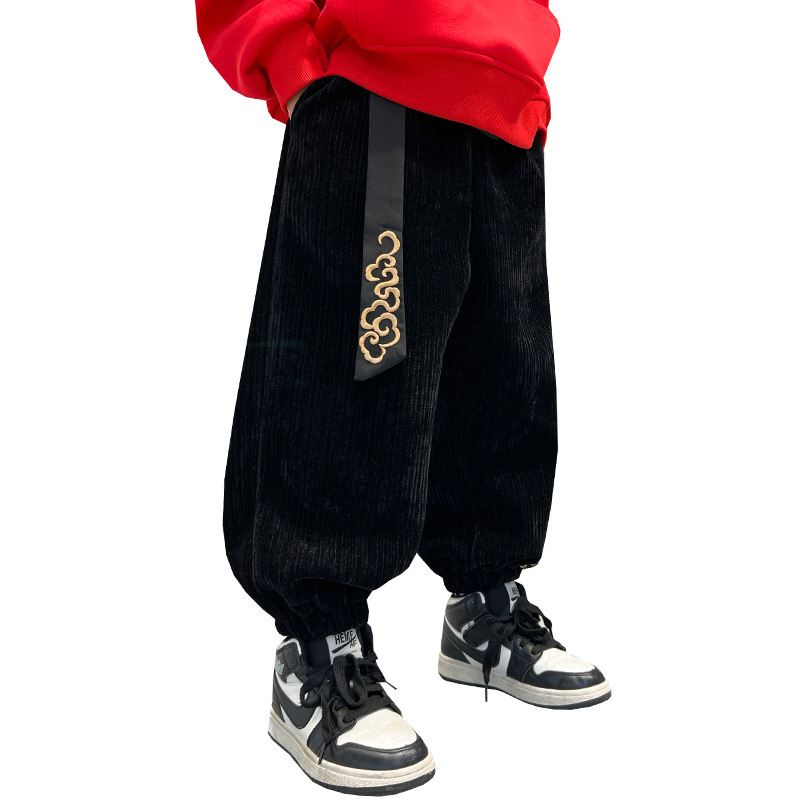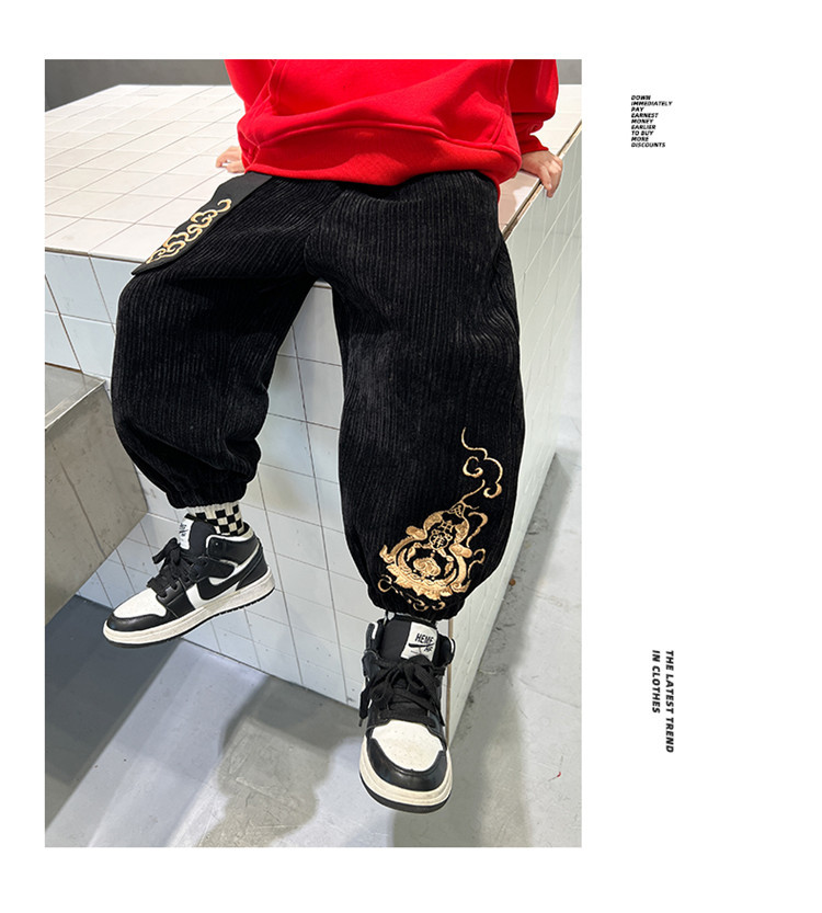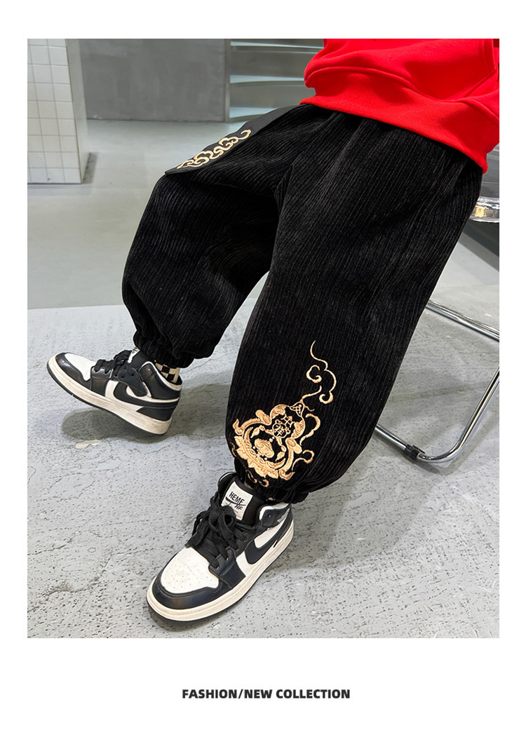 男童冬季条绒刺绣束脚裤2023新款大儿童加绒加厚保暖休闲裤长裤子