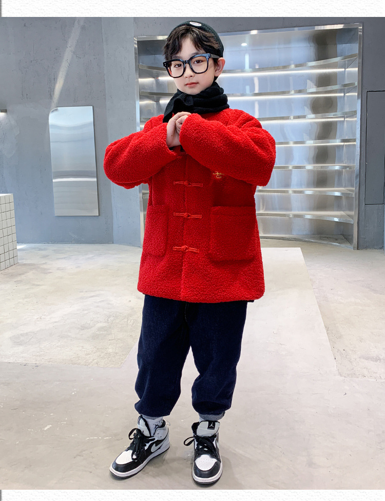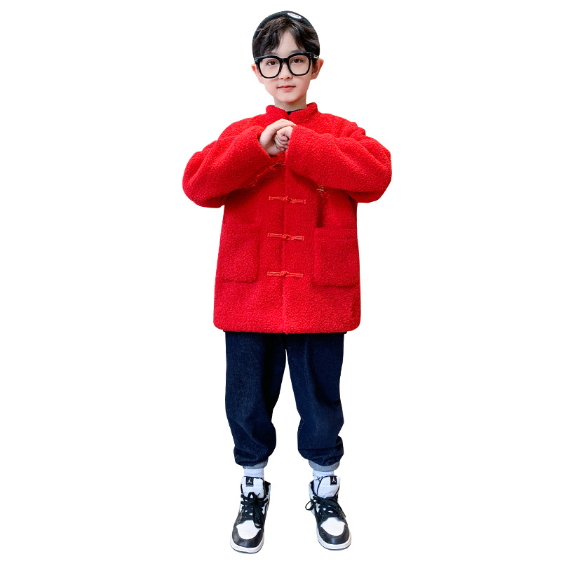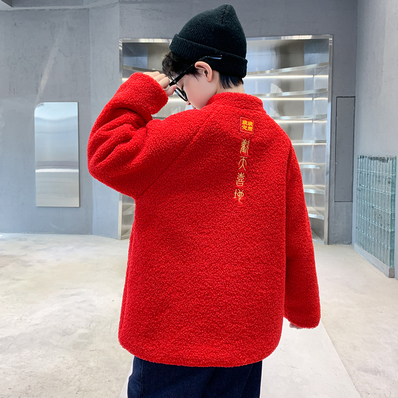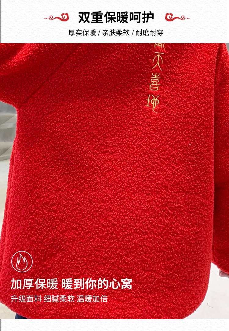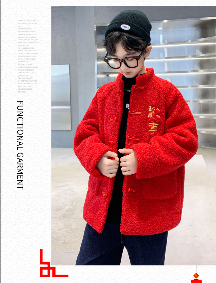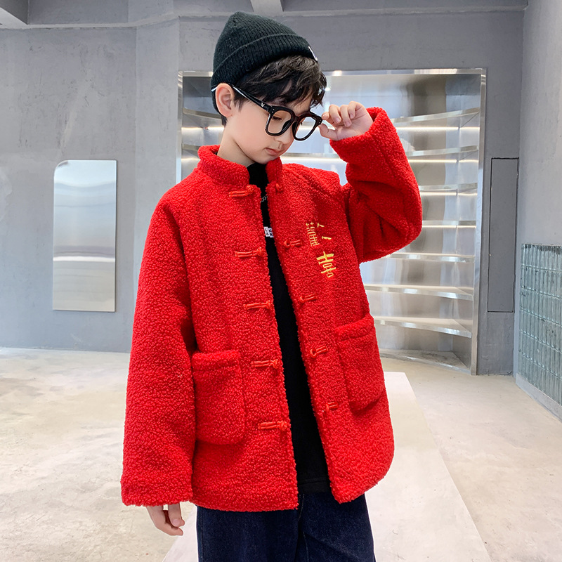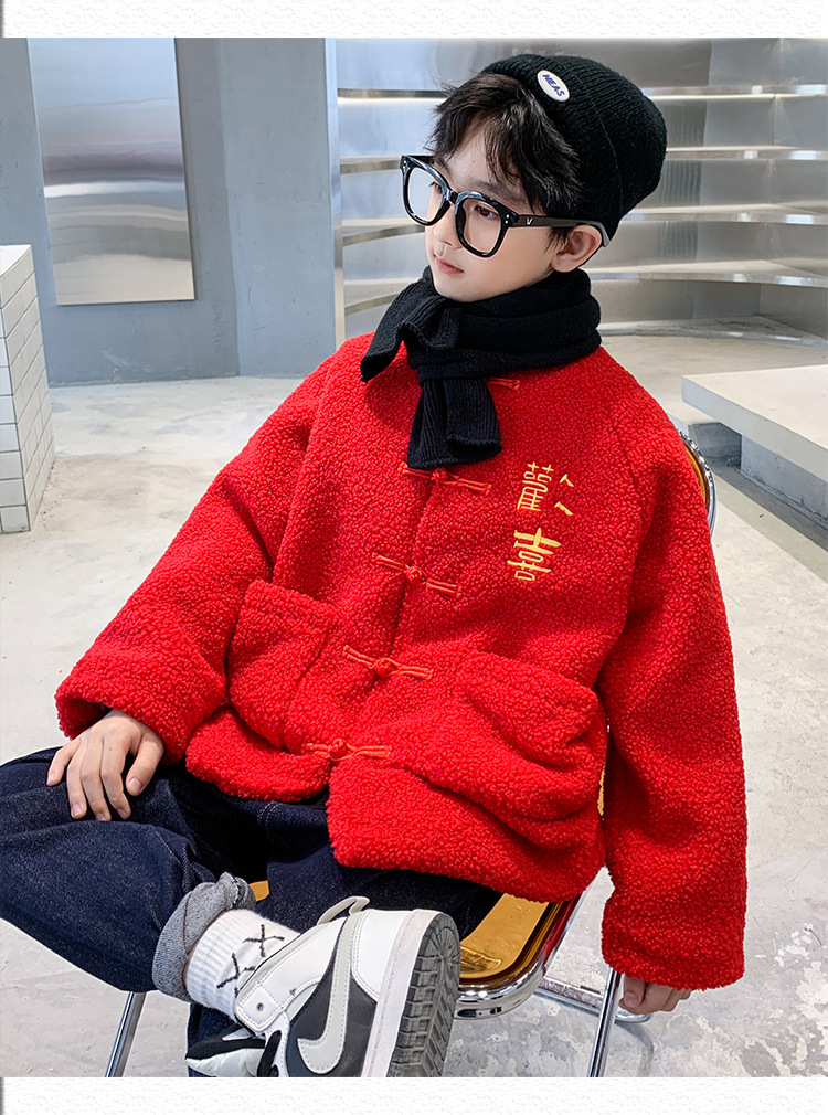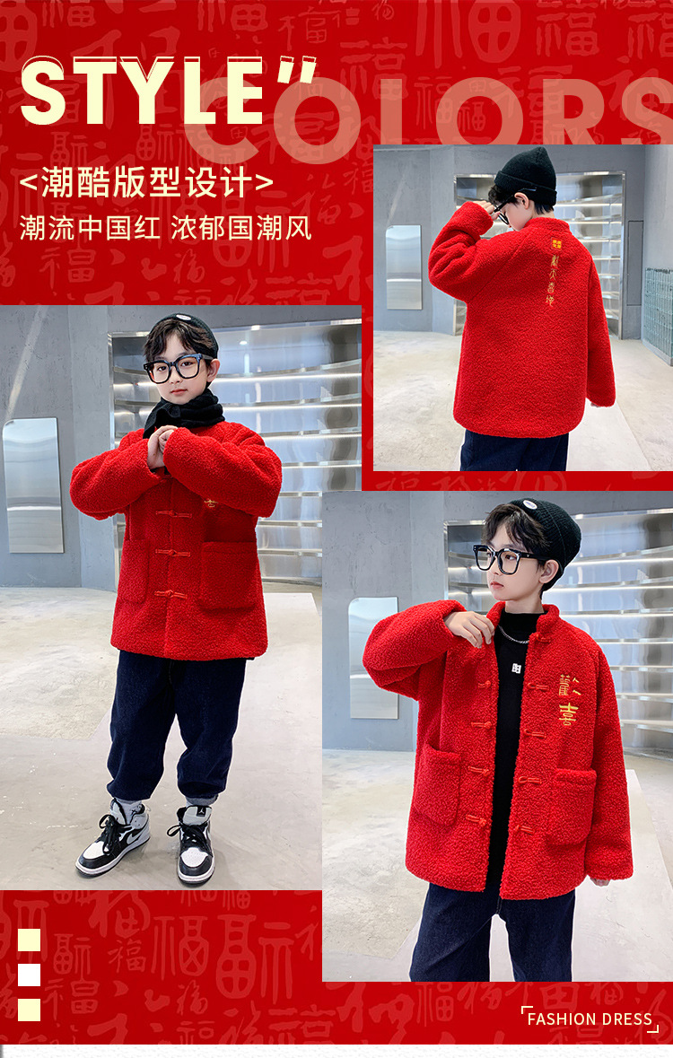 男童冬季国风欢喜刺绣毛毛衣拜年服2023新款儿童加绒加厚保暖外套