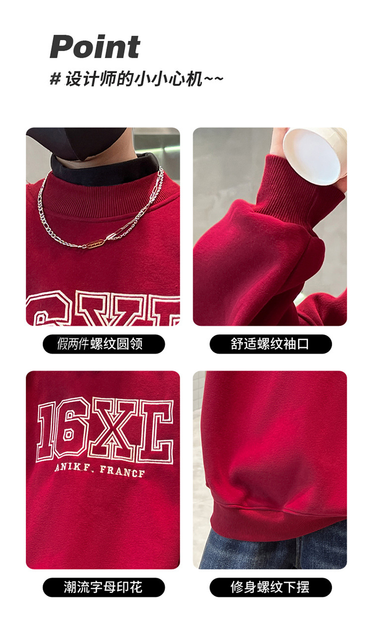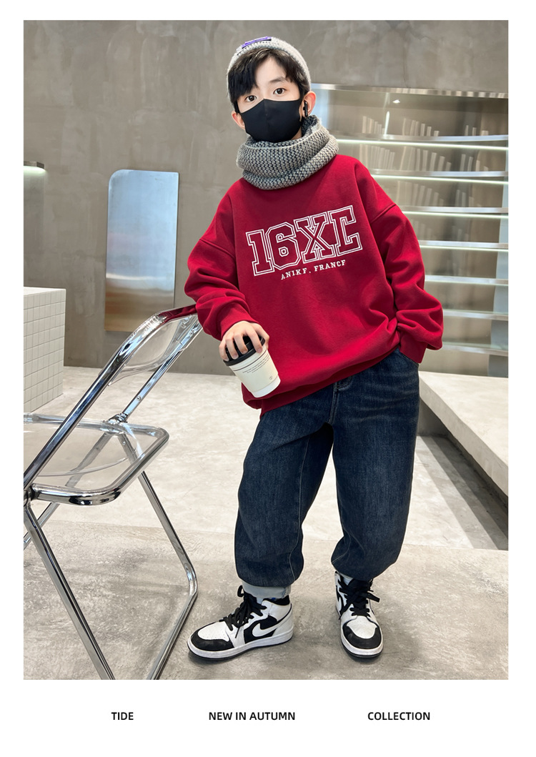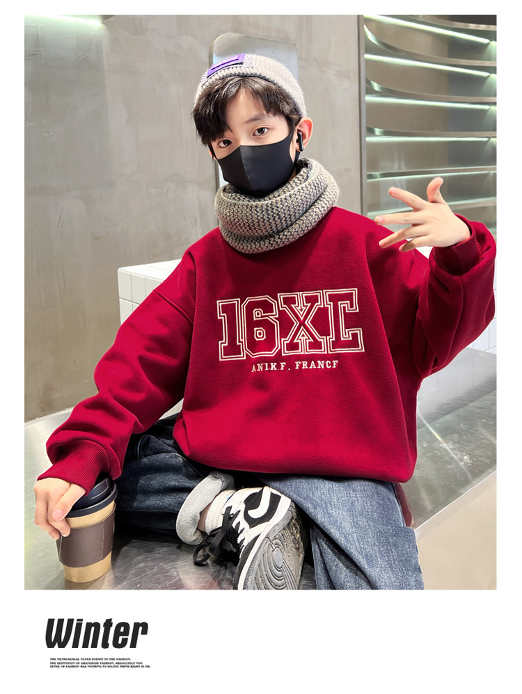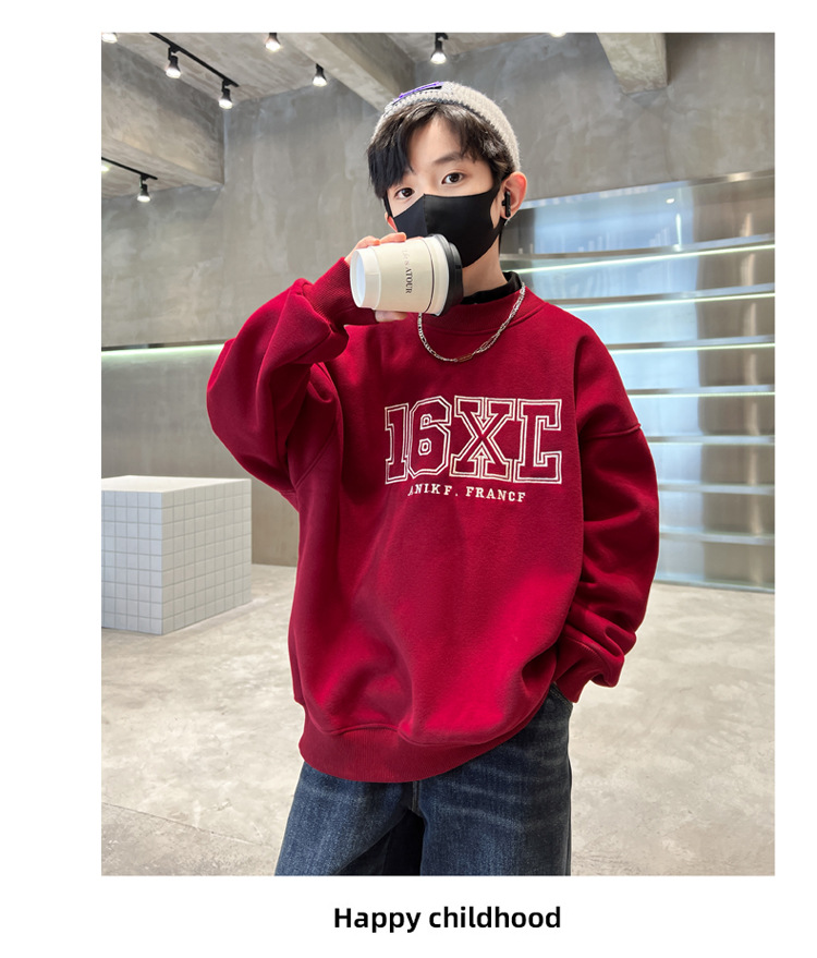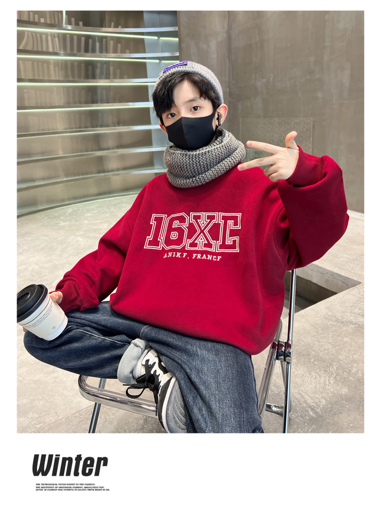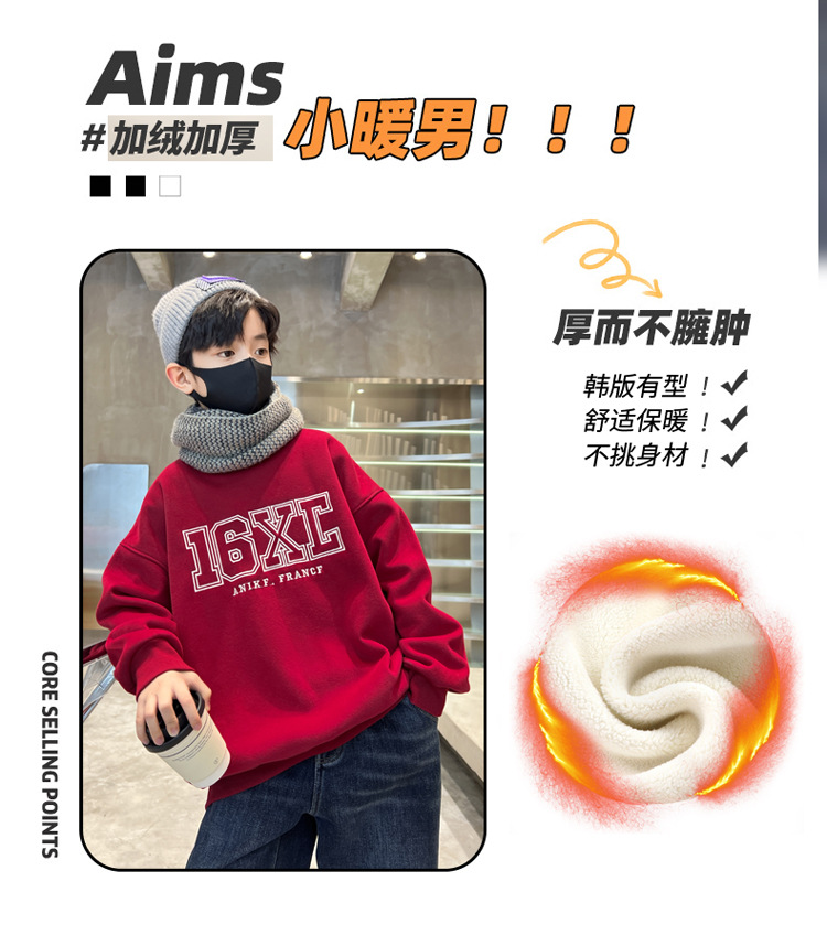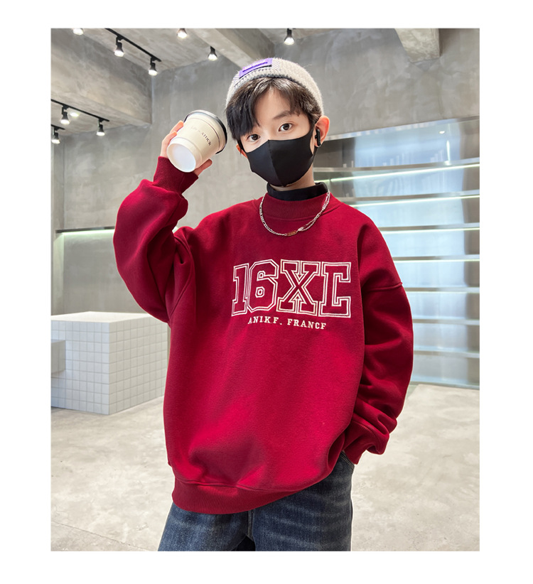 男童冬季假两件加绒卫衣2023新款大儿童休闲加厚保暖字母卫衣冬装