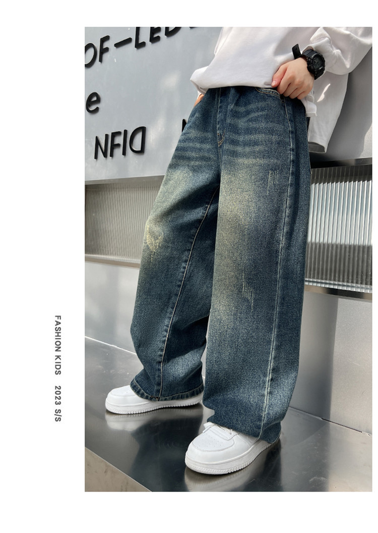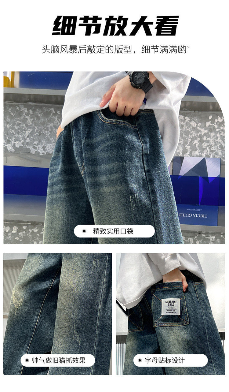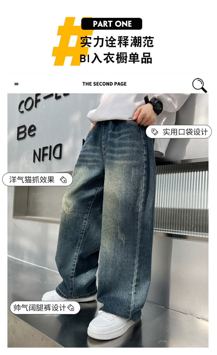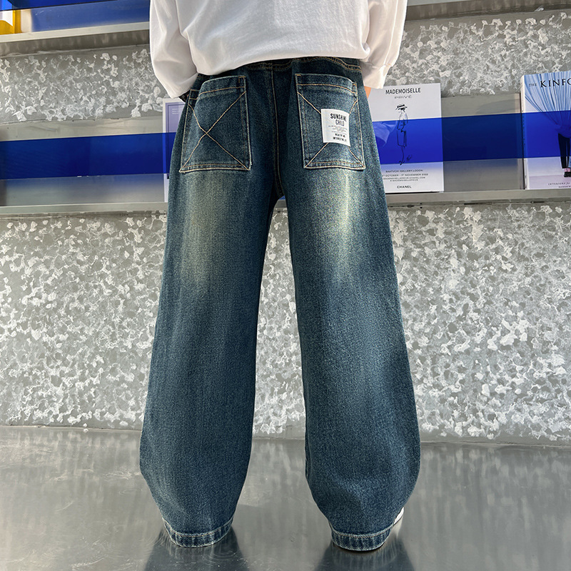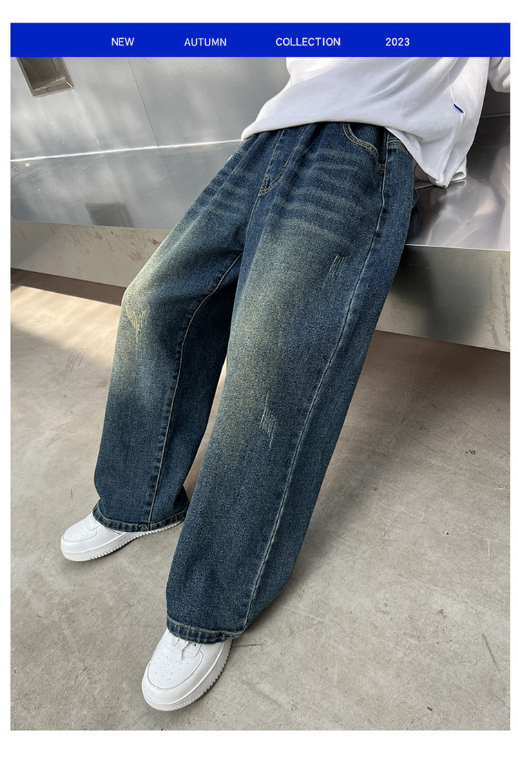 男童冬季加绒阔腿牛仔裤2023新款儿童装加厚保暖休闲裤长裤子冬装