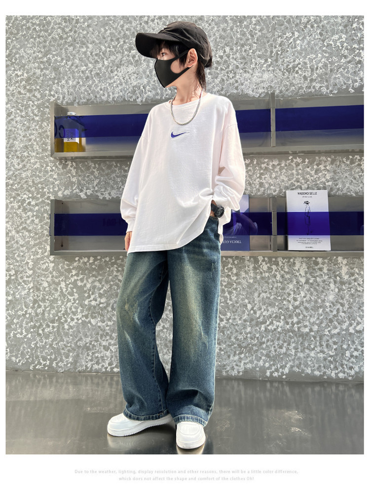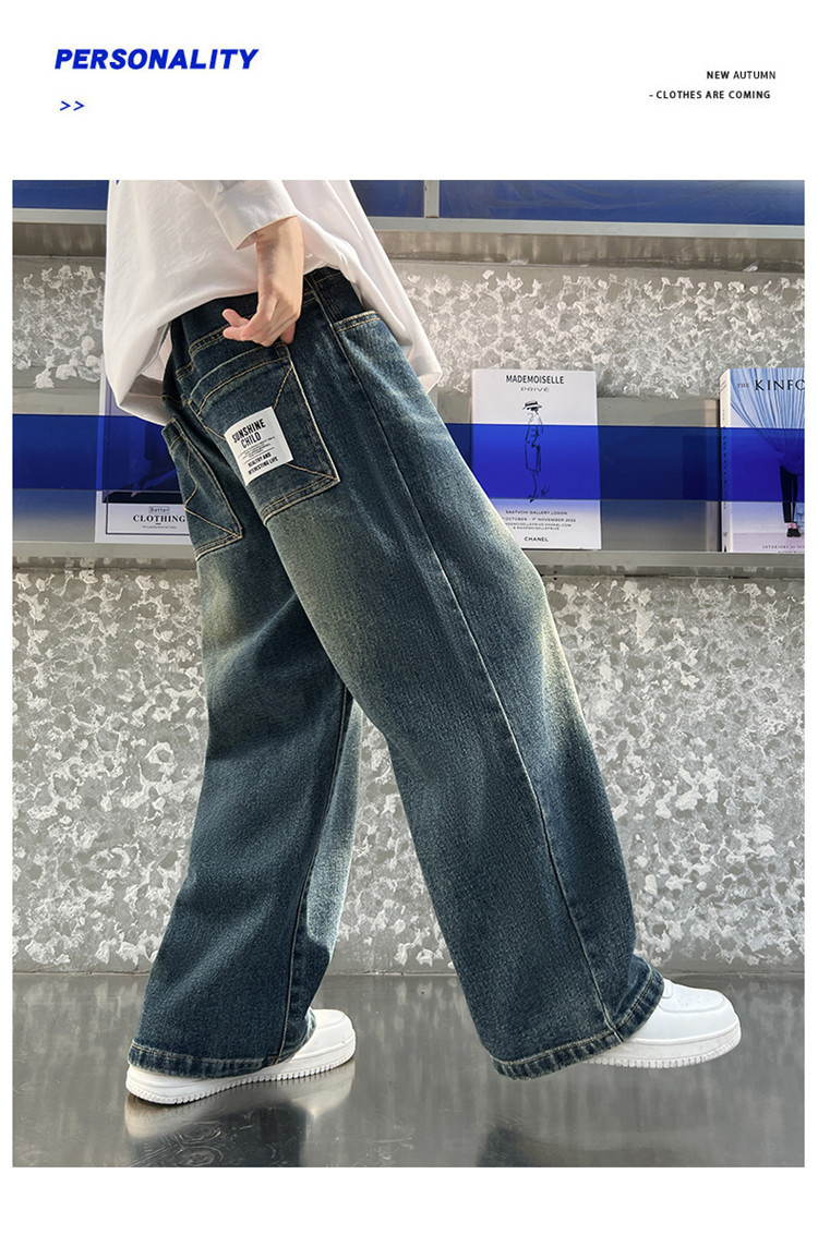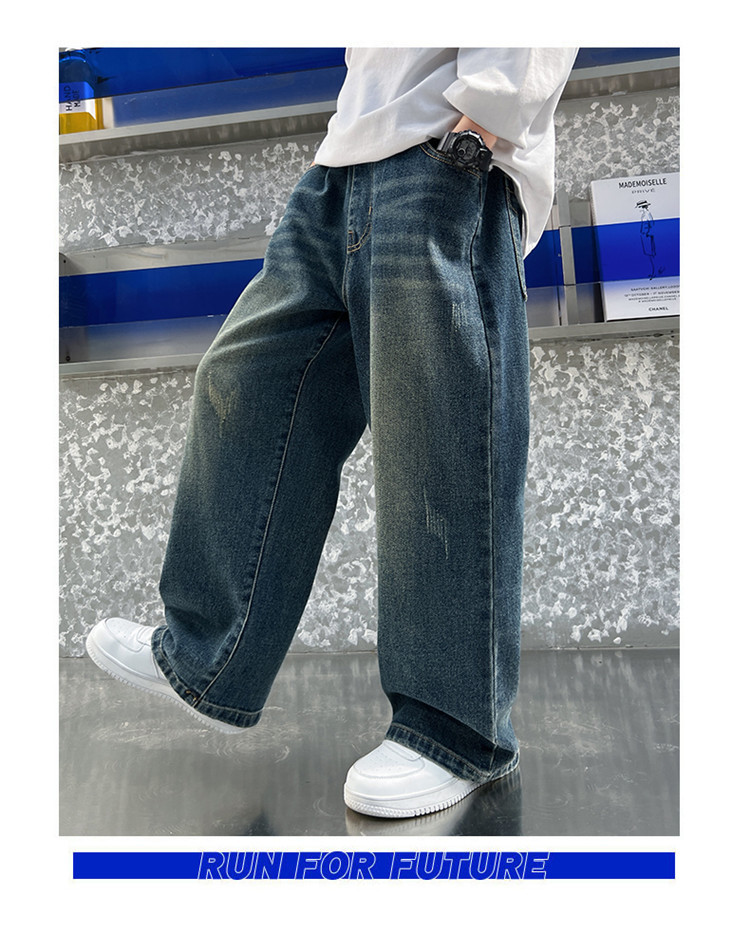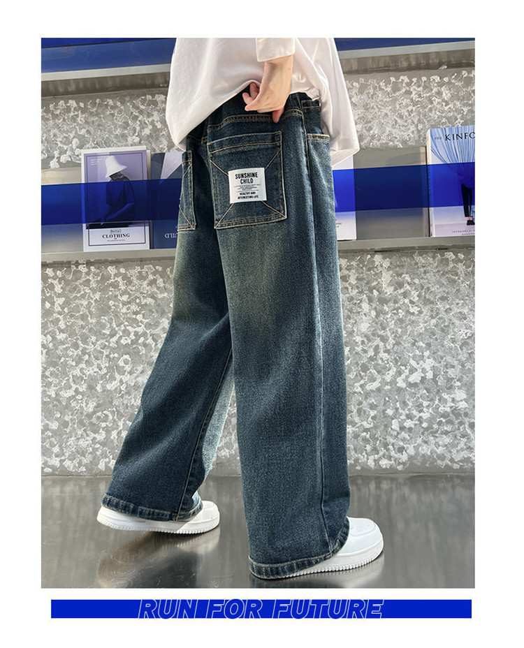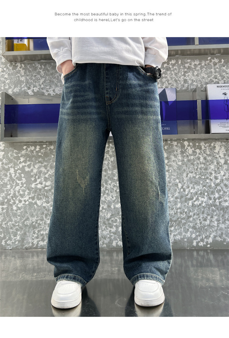 男童冬季加绒阔腿牛仔裤2023新款儿童装加厚保暖休闲裤长裤子冬装
