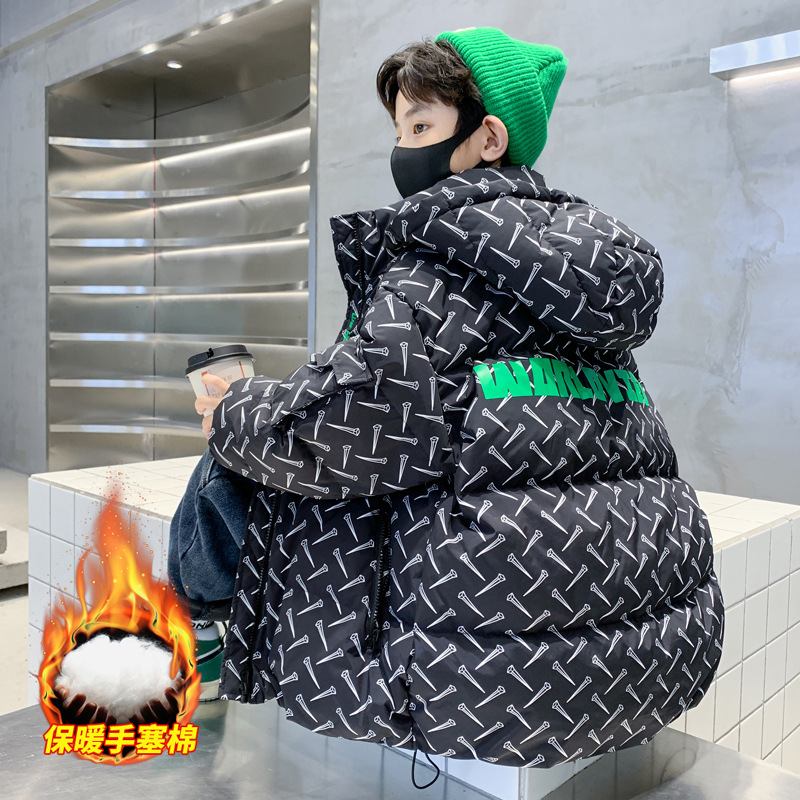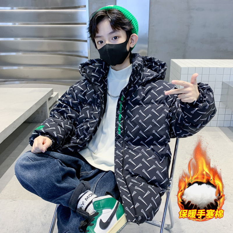 男童冬季钻石钉手塞棉棉衣2023新款儿童加棉加厚保暖棉袄棉服外套