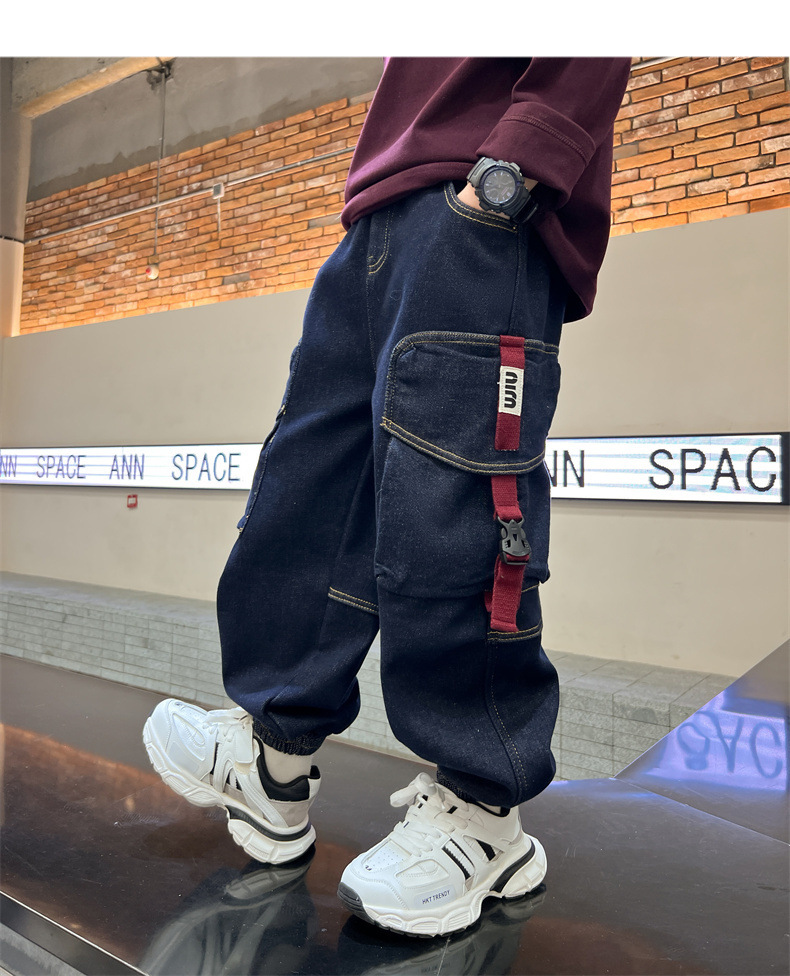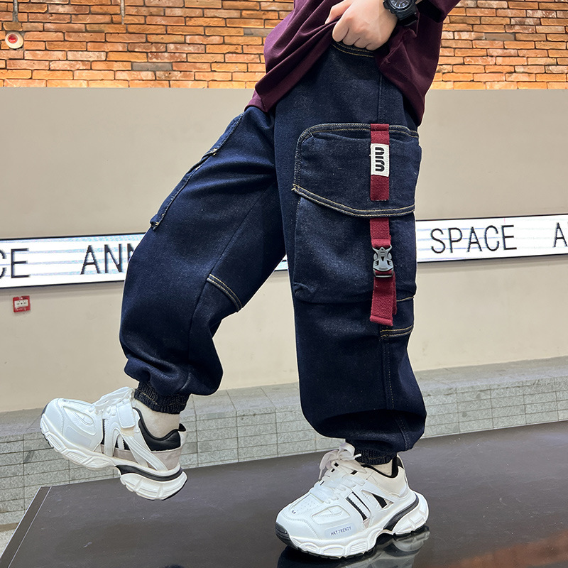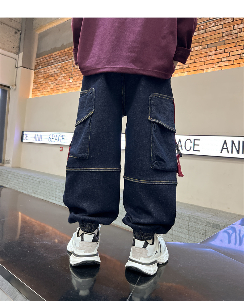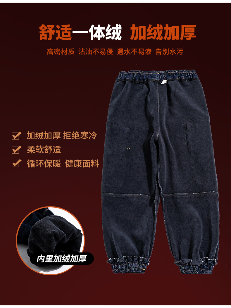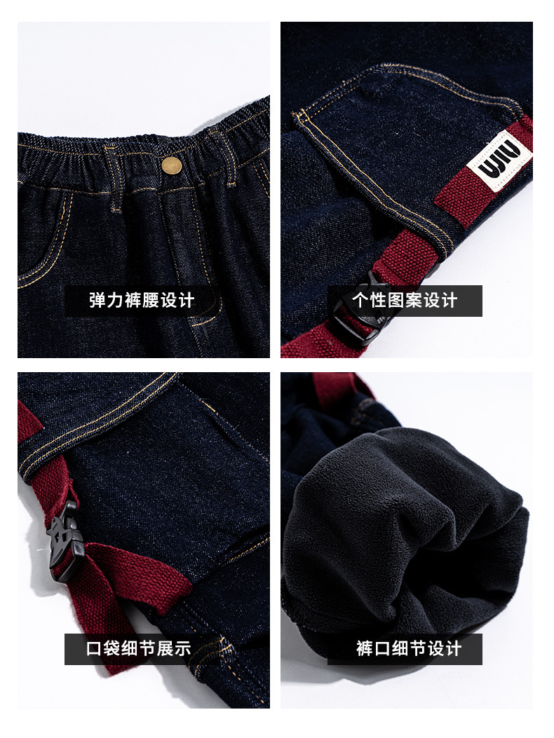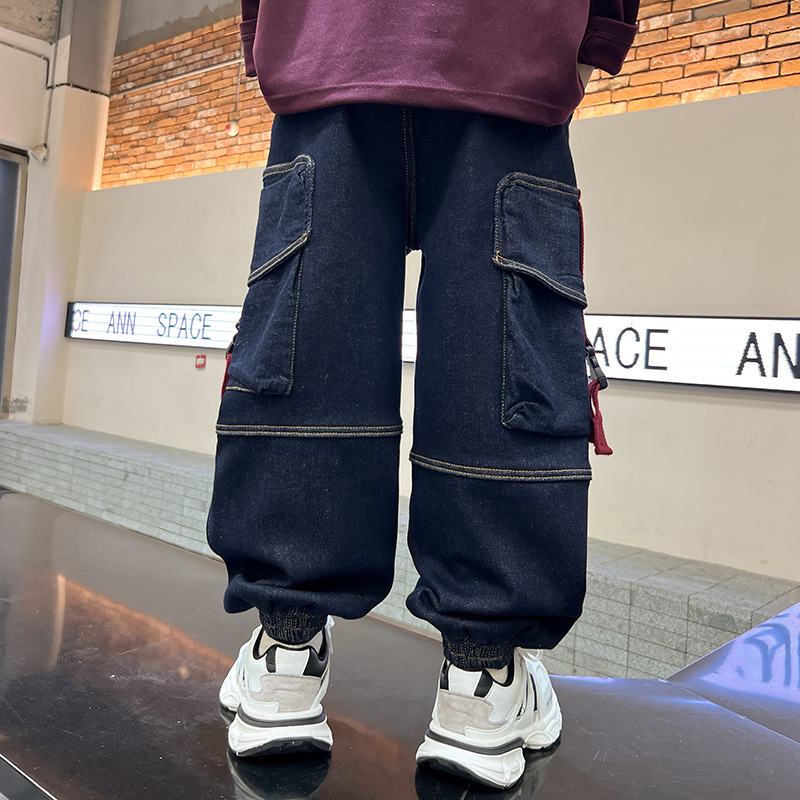 男童冬季加绒工装牛仔裤2023新款中大儿童装加厚保暖休闲裤长裤子