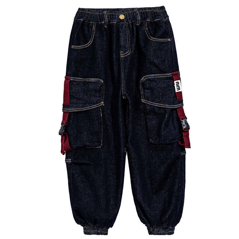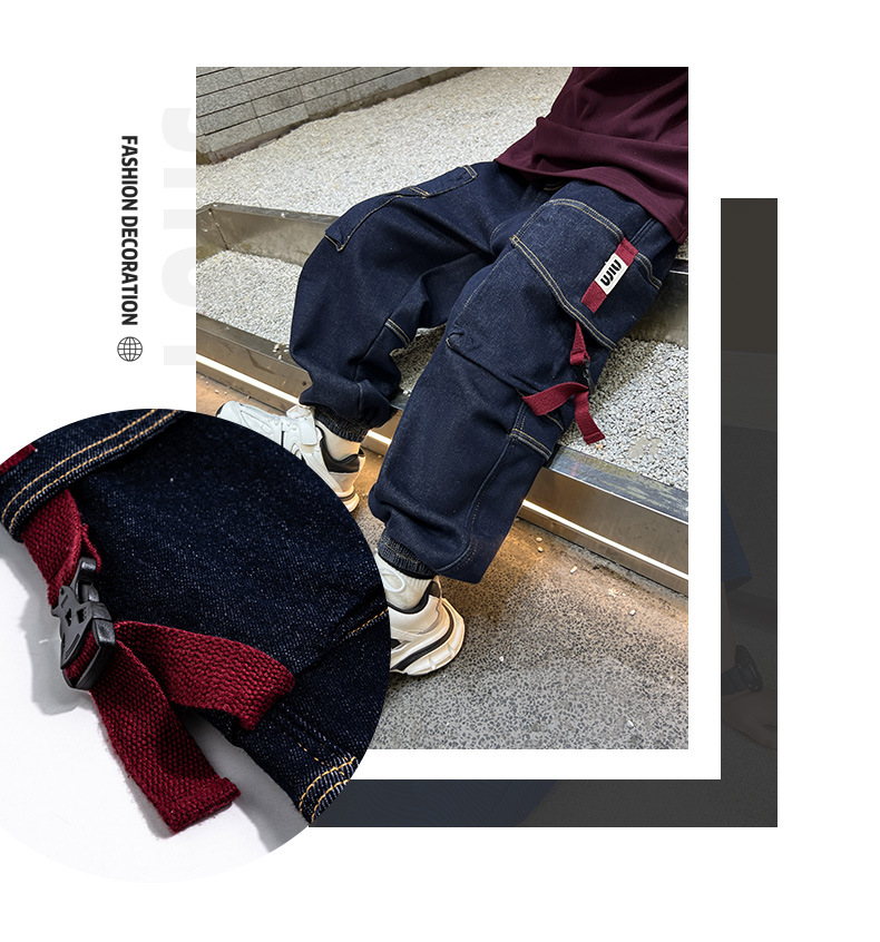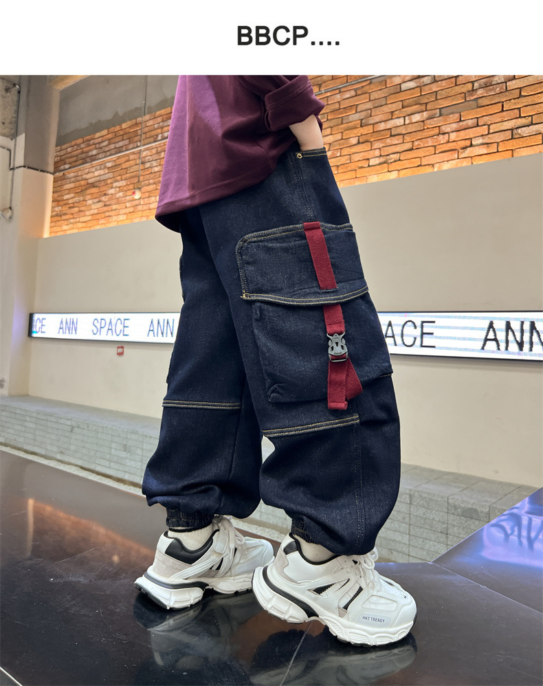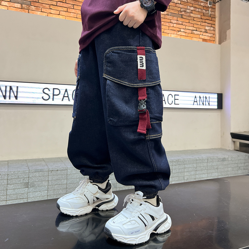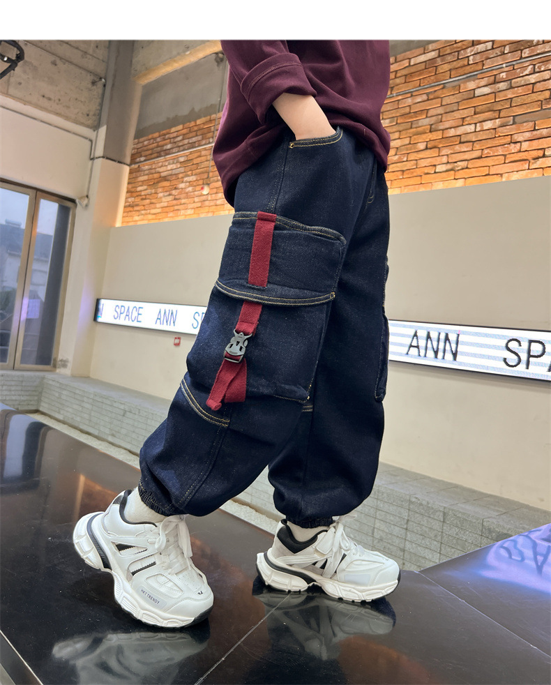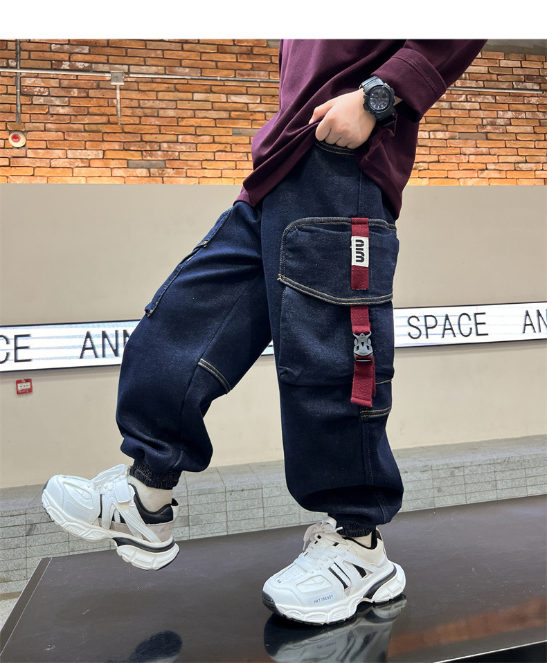 男童冬季加绒工装牛仔裤2023新款中大儿童装加厚保暖休闲裤长裤子