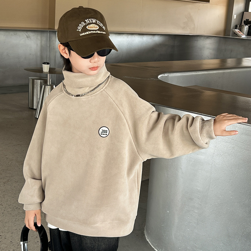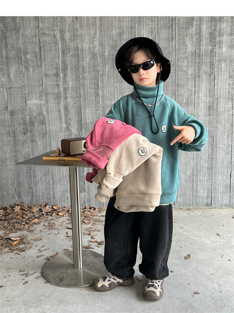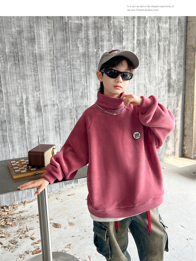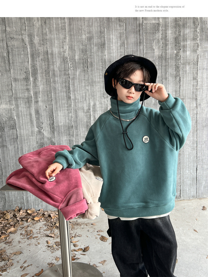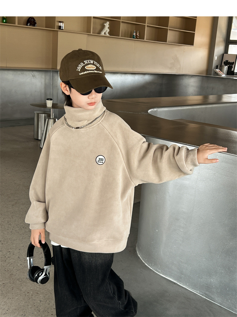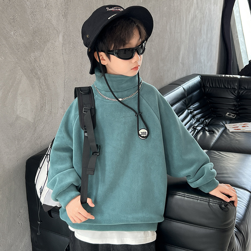 男童冬季加绒奥利绒高领卫衣2023新款大儿童休闲加厚保暖卫衣冬装