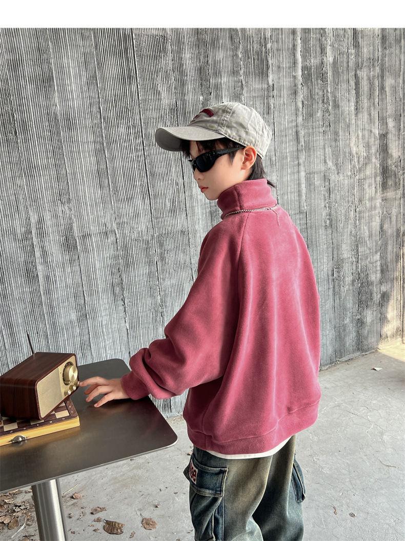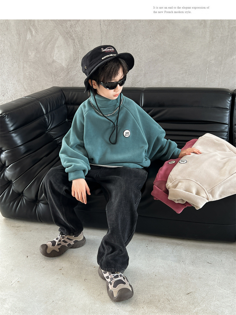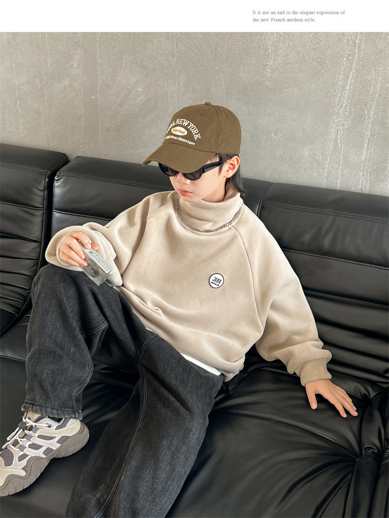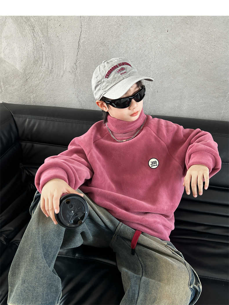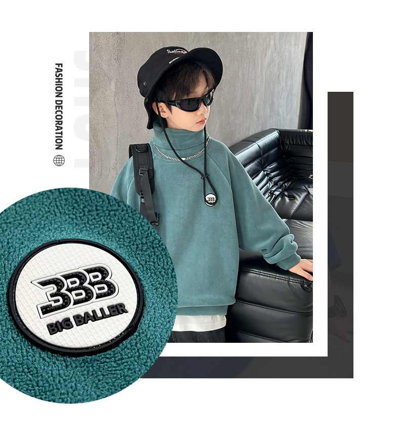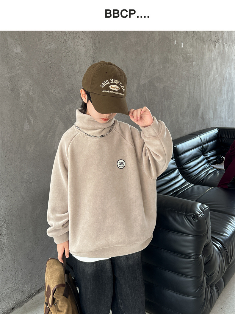 男童冬季加绒奥利绒高领卫衣2023新款大儿童休闲加厚保暖卫衣冬装