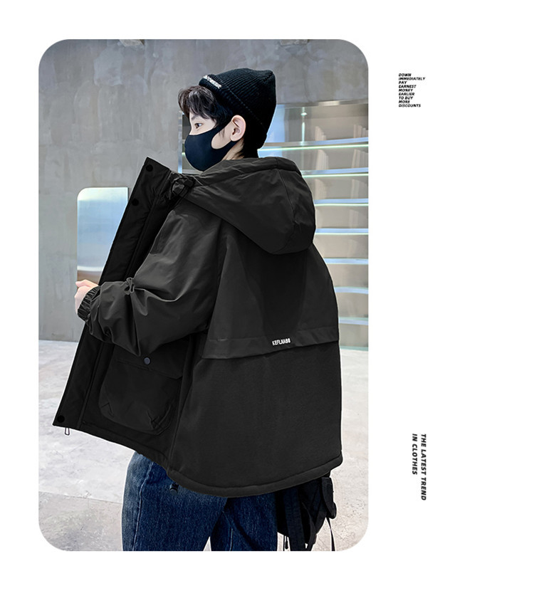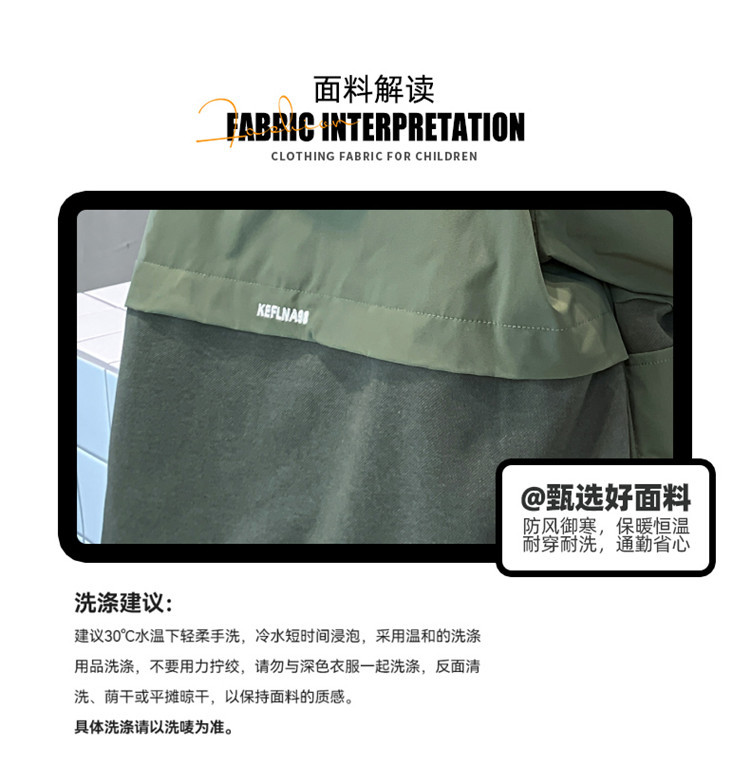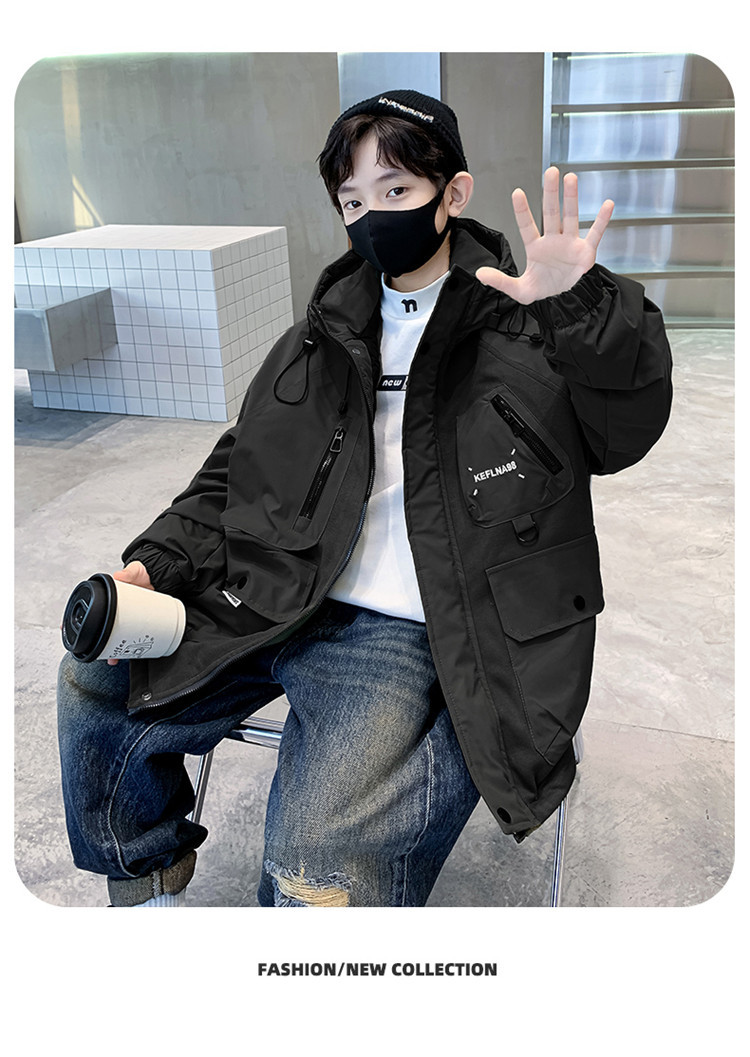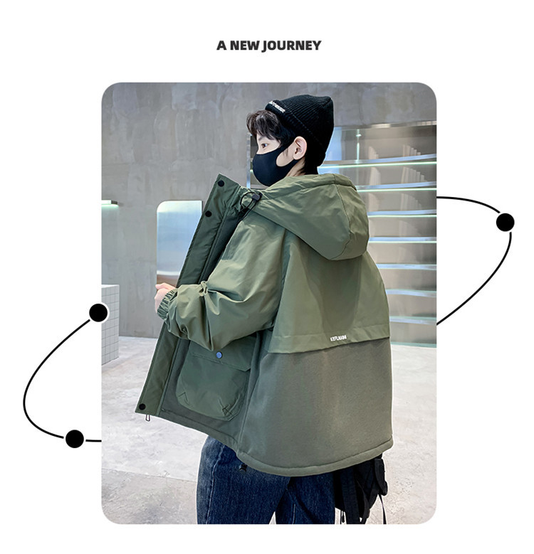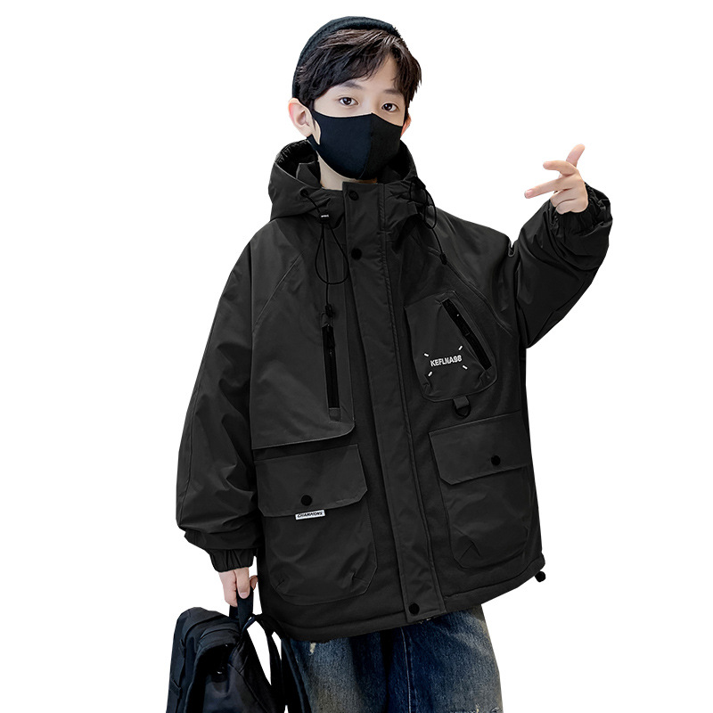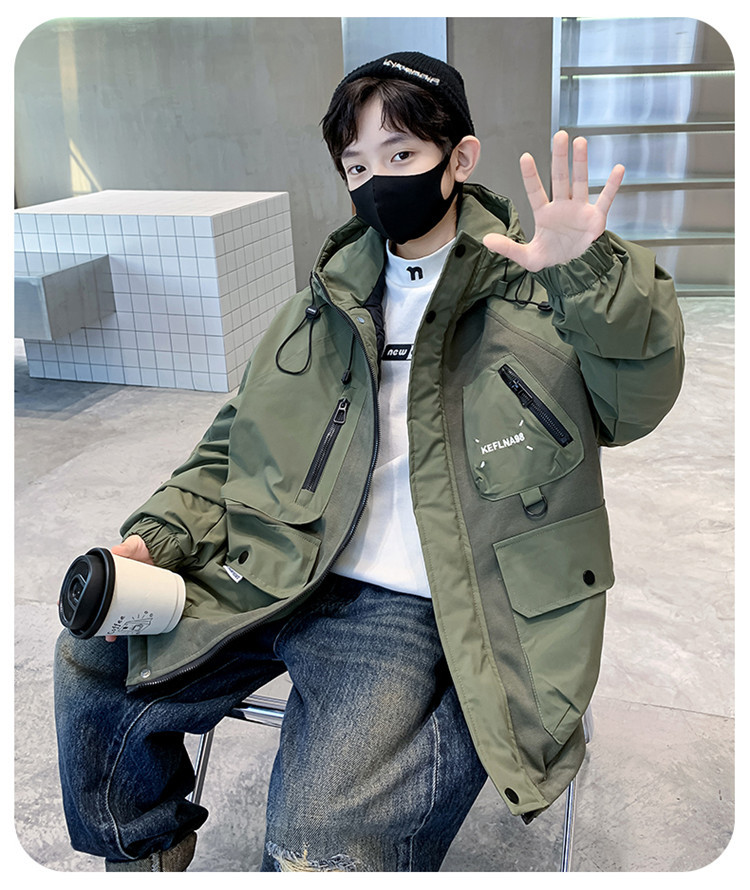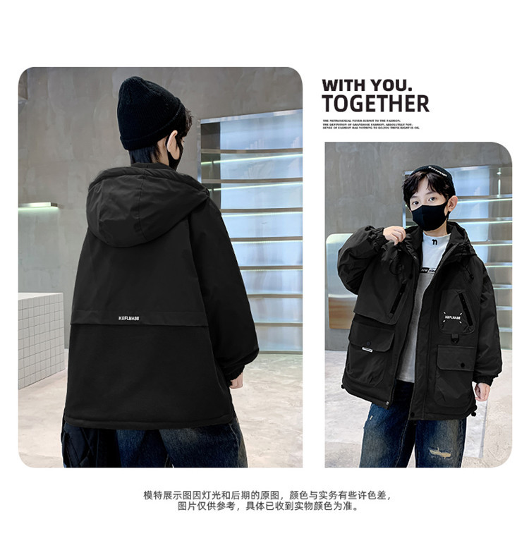 男童冬季夹棉工装派克服2023新款中大儿童装加厚保暖连帽风衣外套