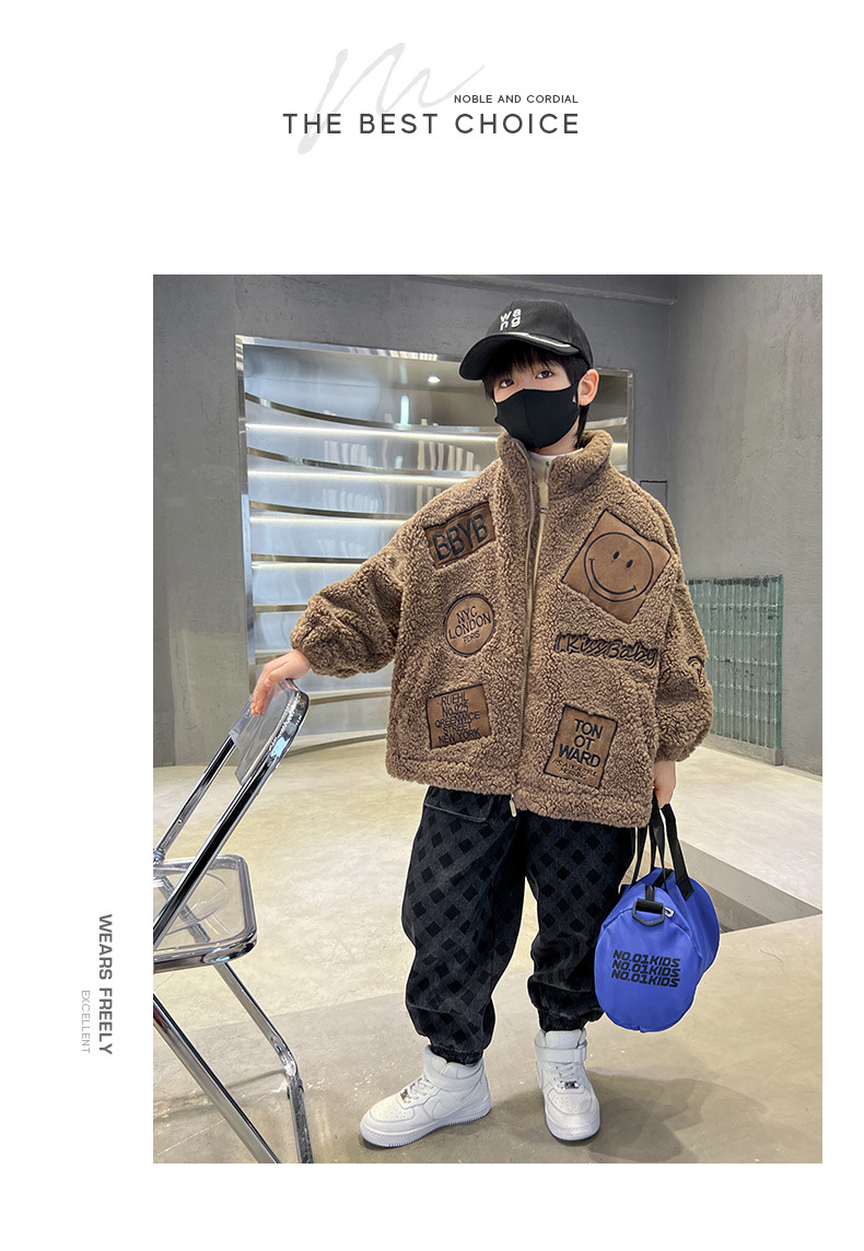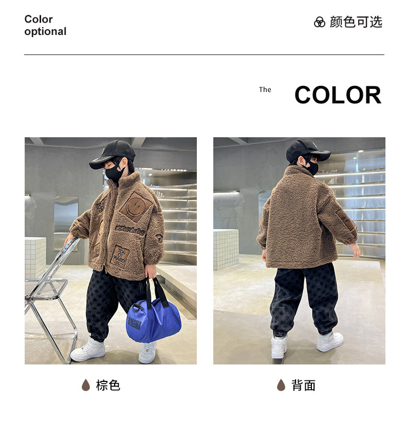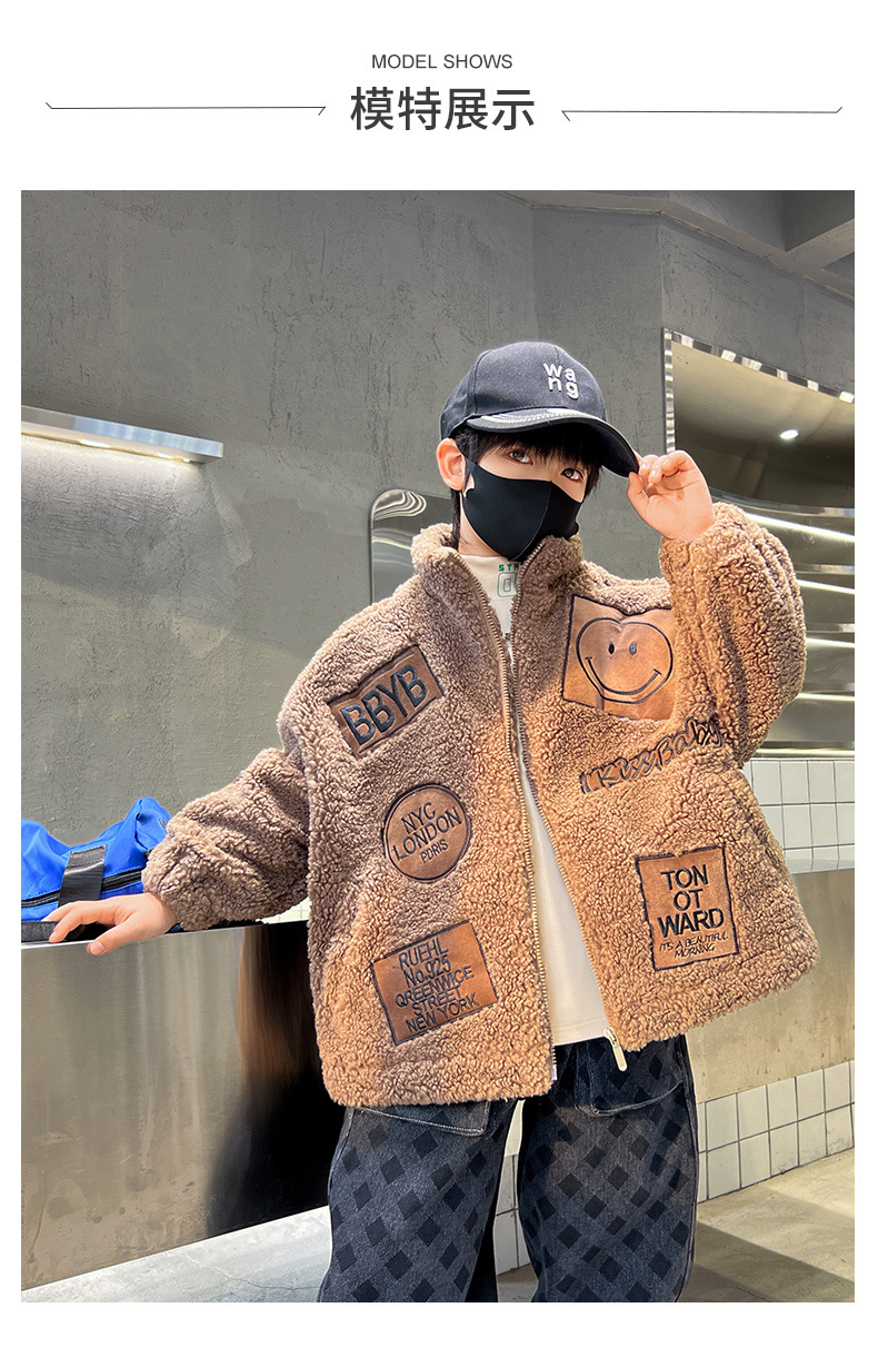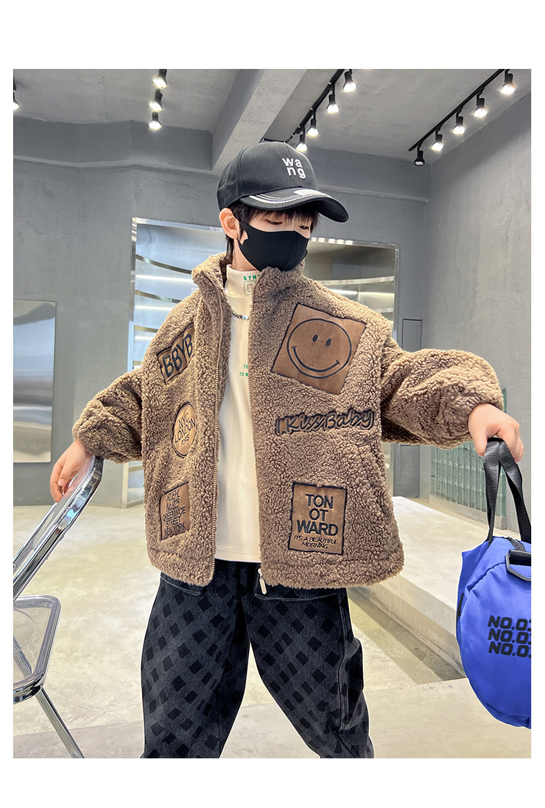 男童秋冬季加绒笑脸毛毛衣2023新款中大儿童洋气加厚保暖风衣外套