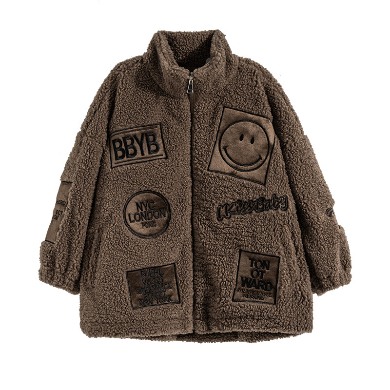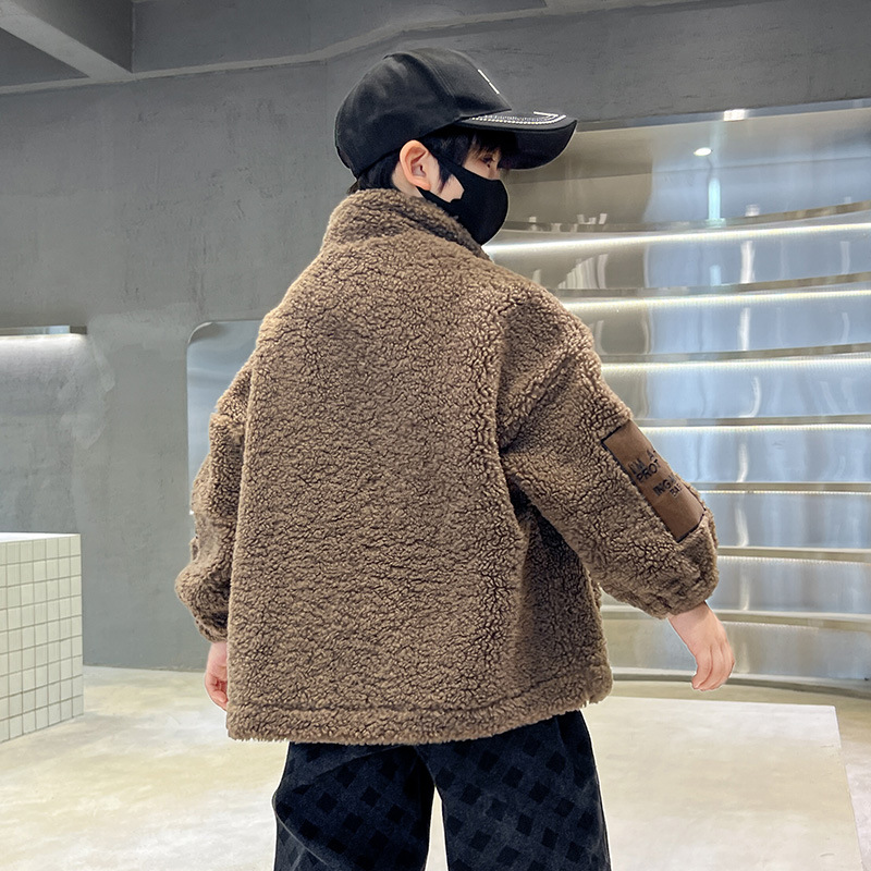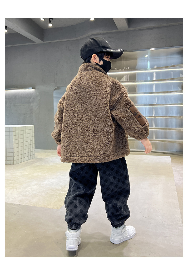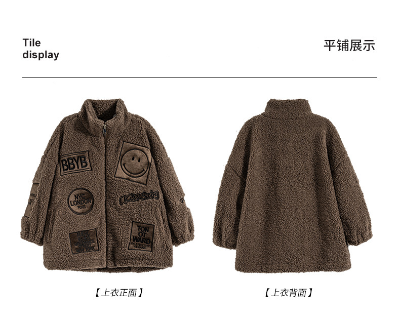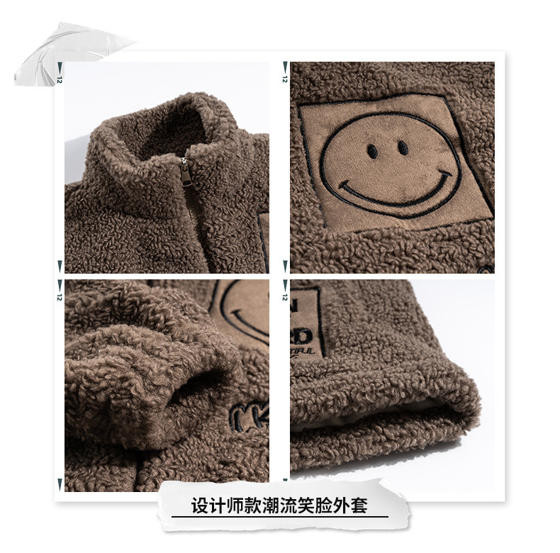 男童秋冬季加绒笑脸毛毛衣2023新款中大儿童洋气加厚保暖风衣外套