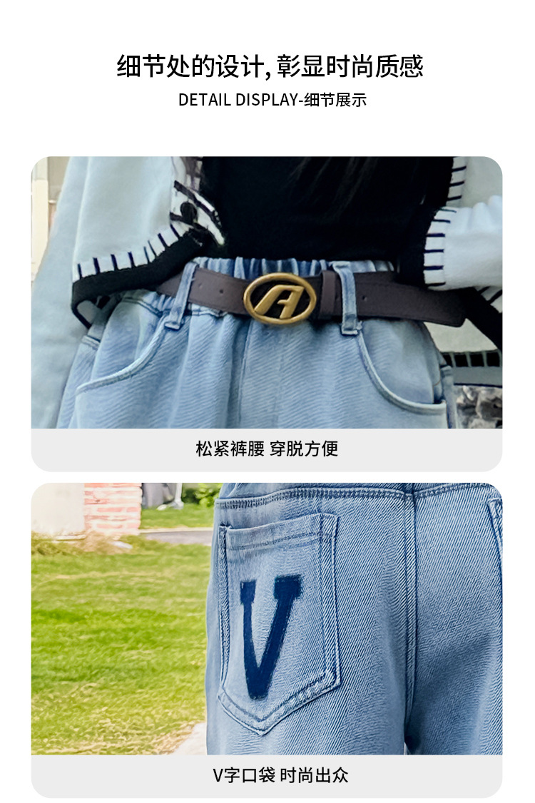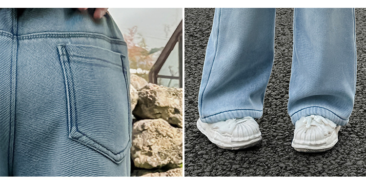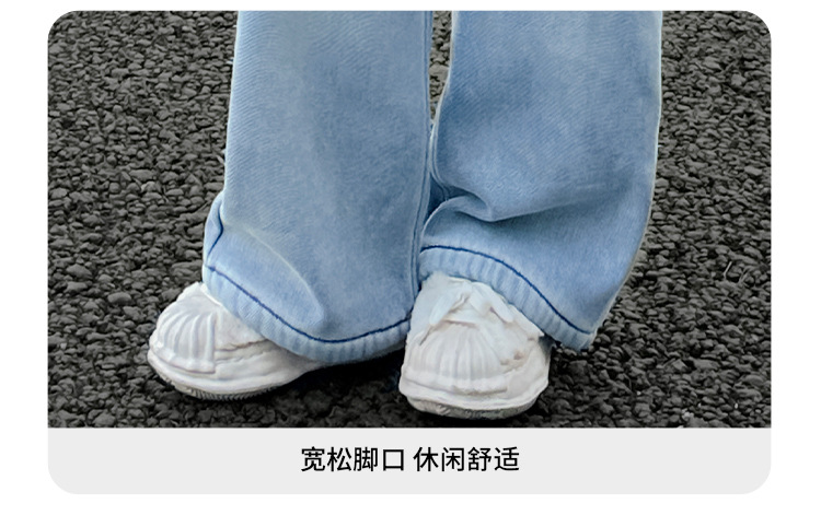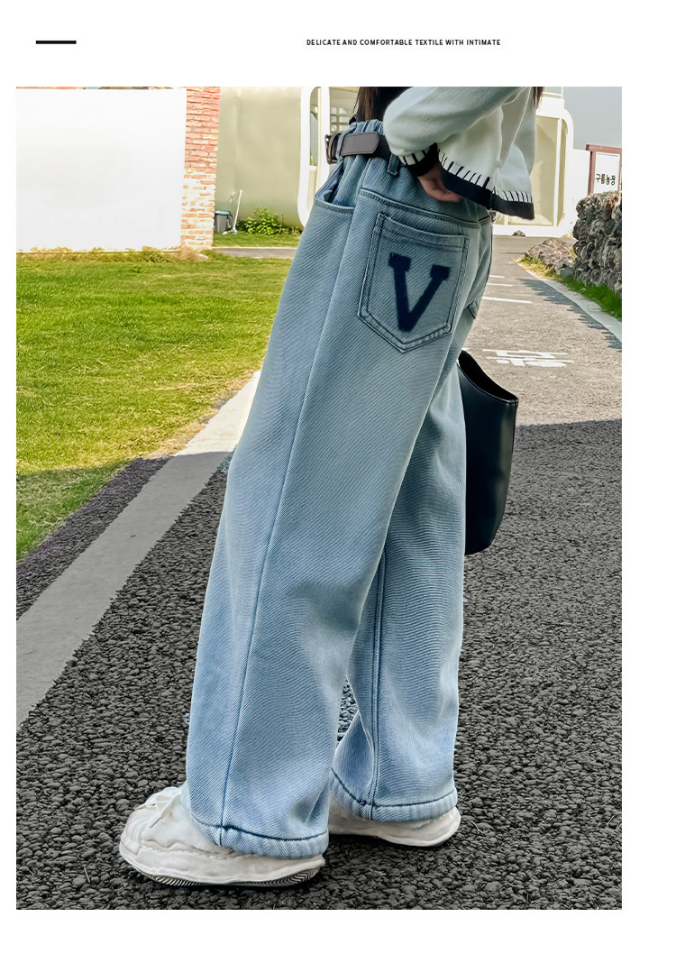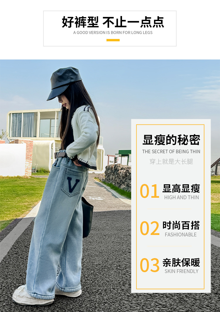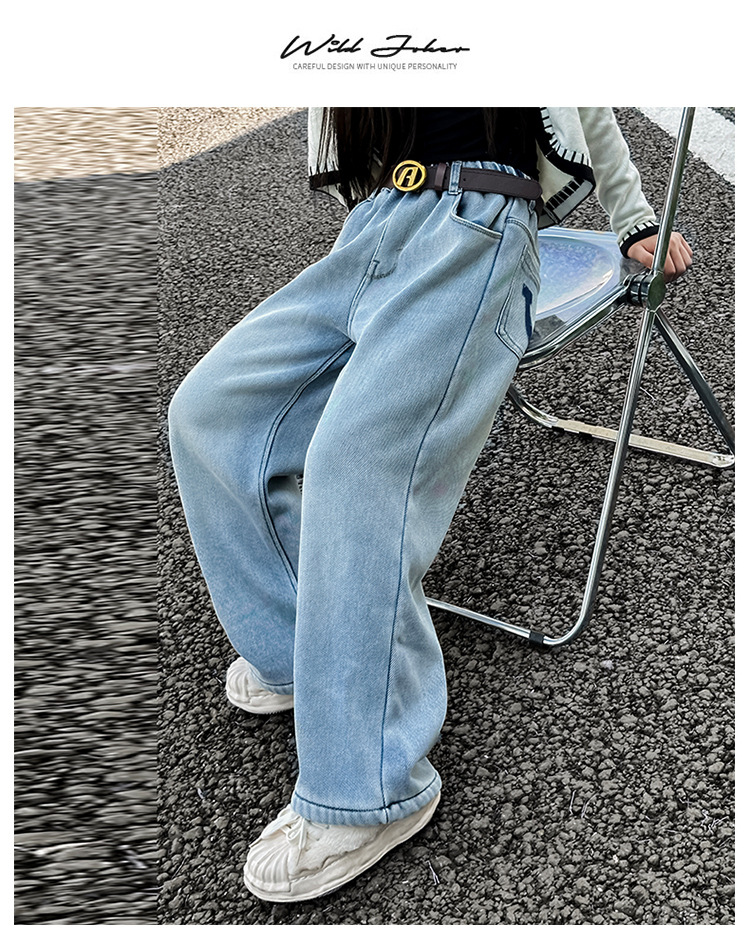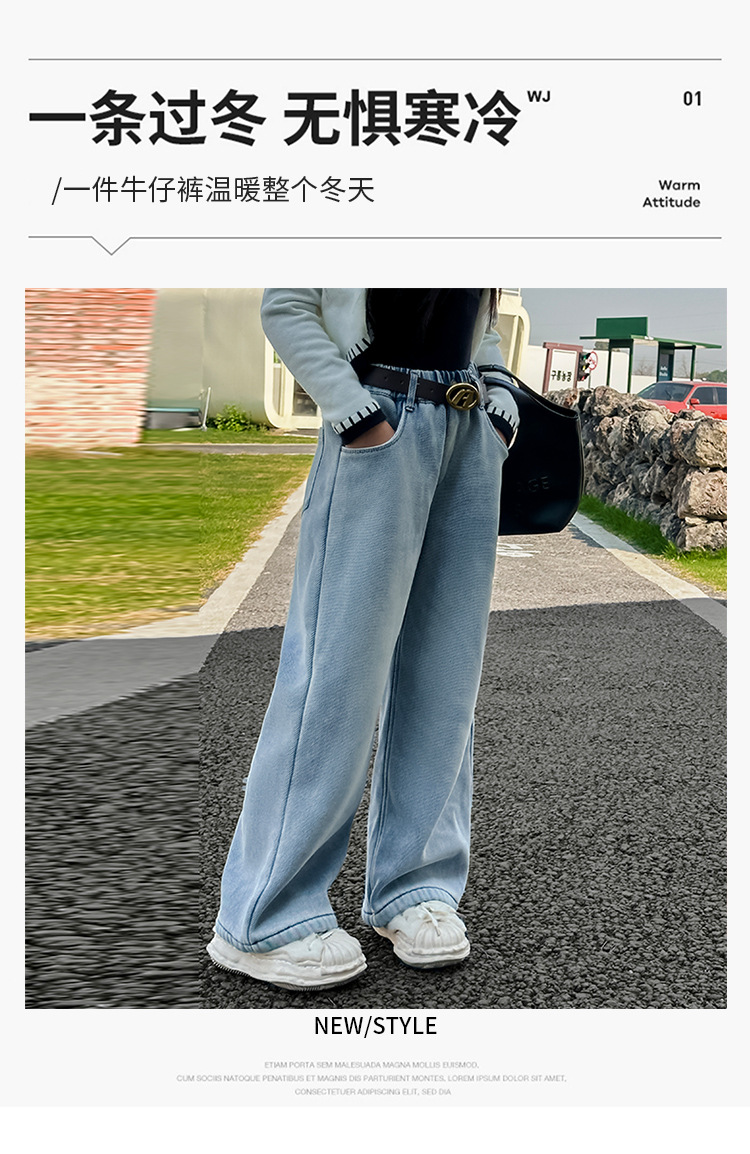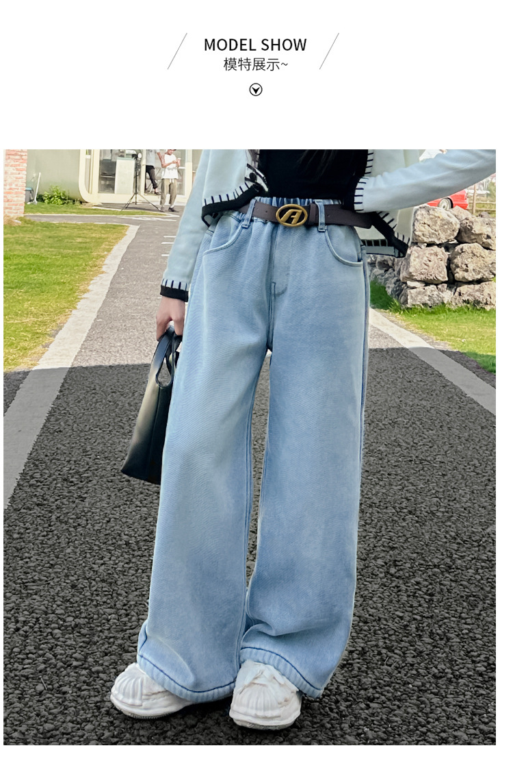 女童冬季加绒牛仔拖地裤2023新款中大儿童加厚保暖休闲裤长裤子潮