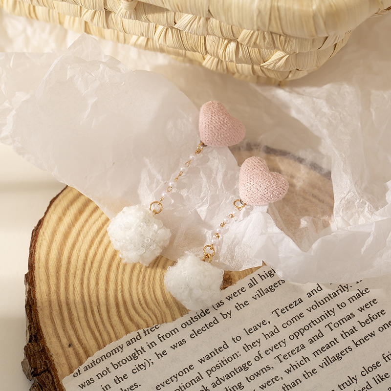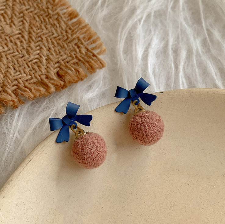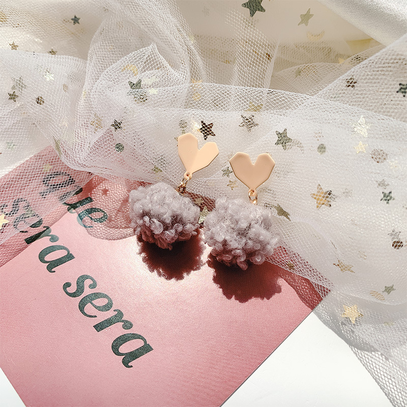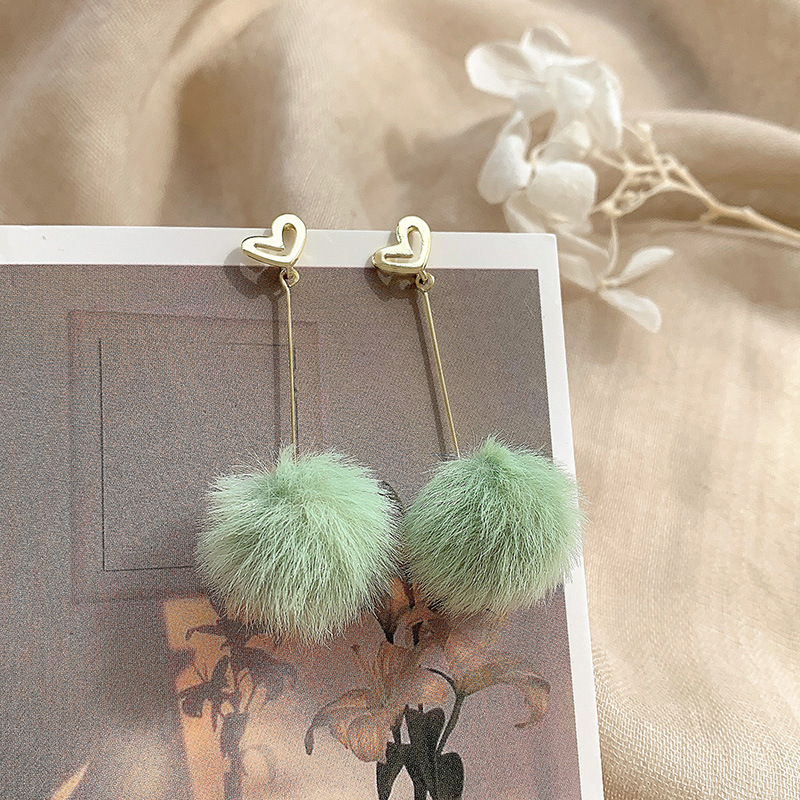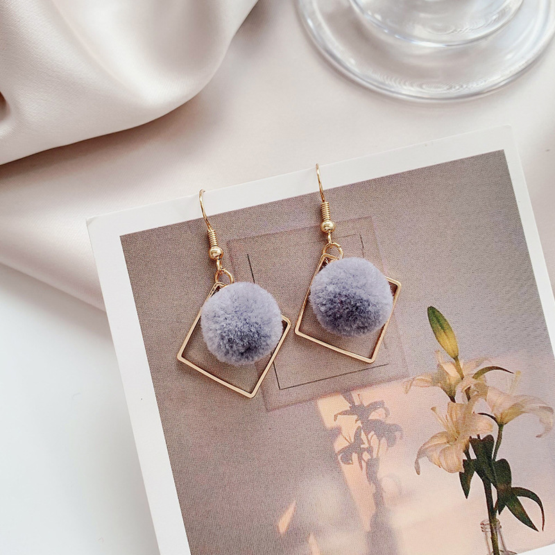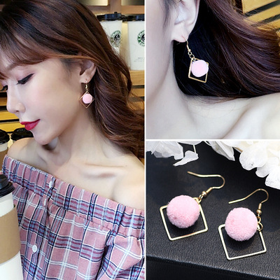 毛球耳环女长款韩版个性耳钉2023秋冬新款女网红学生简约气质耳饰