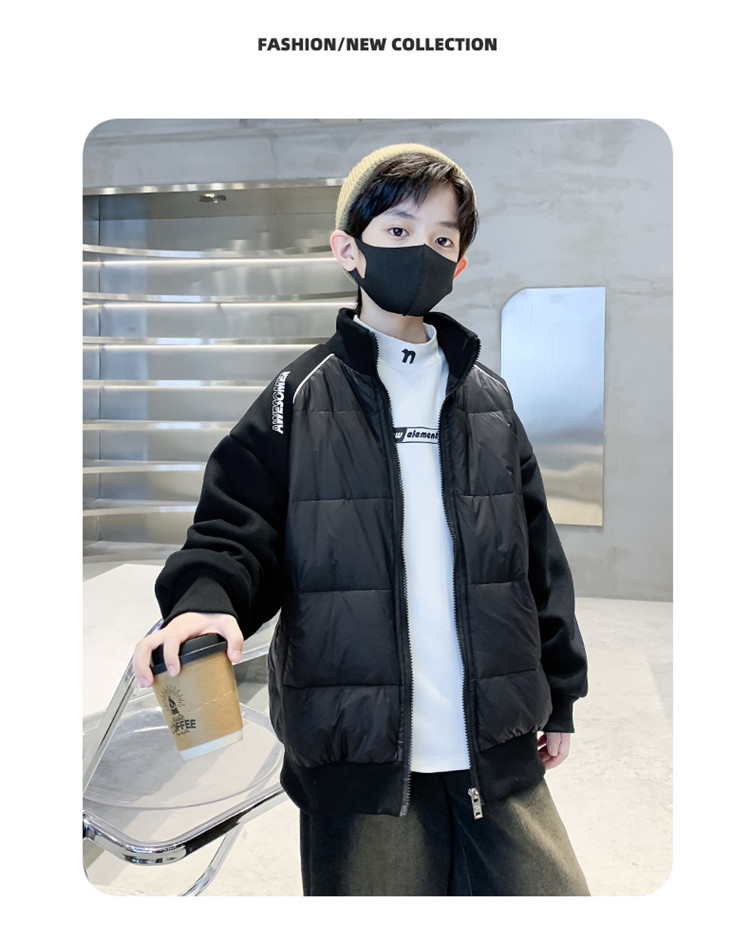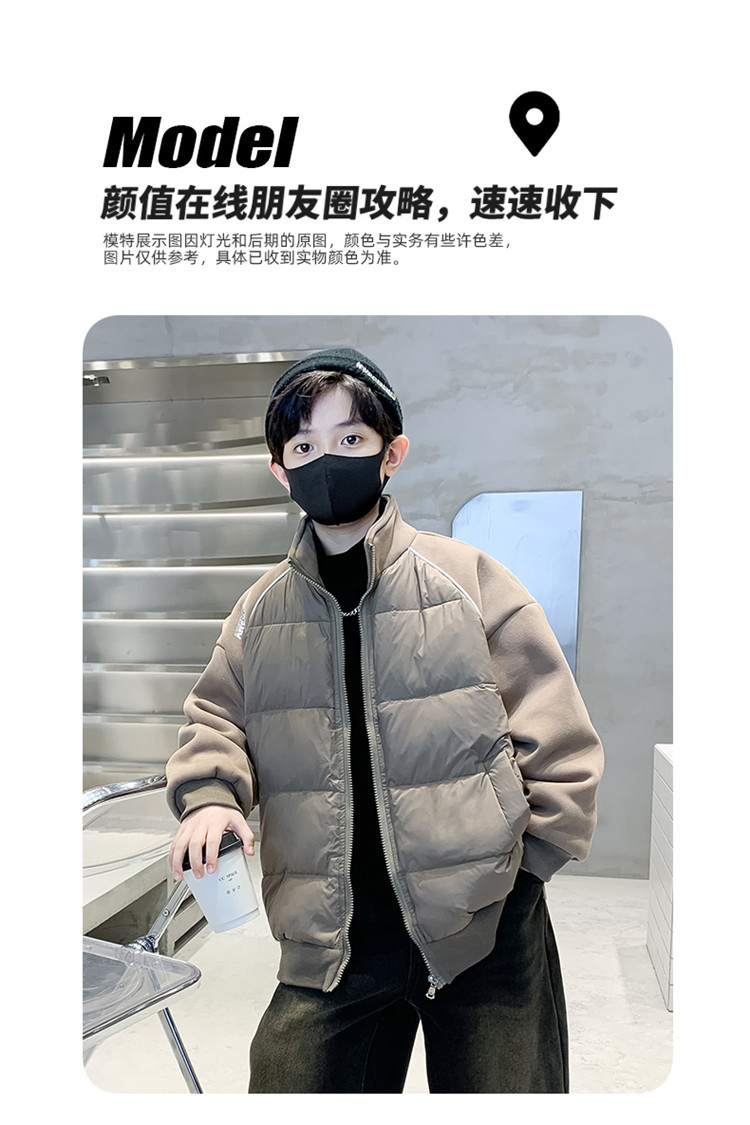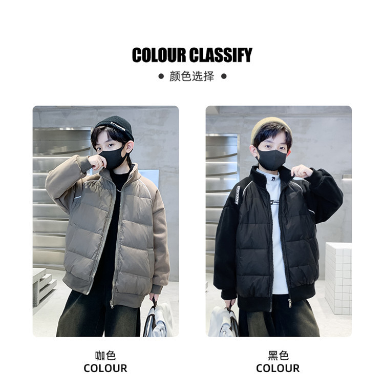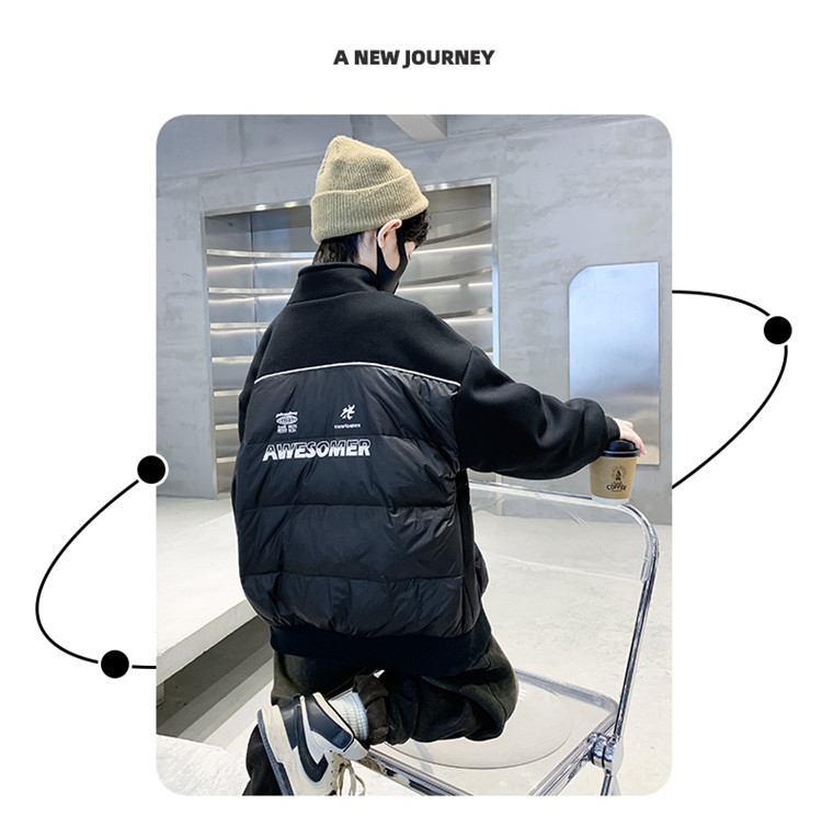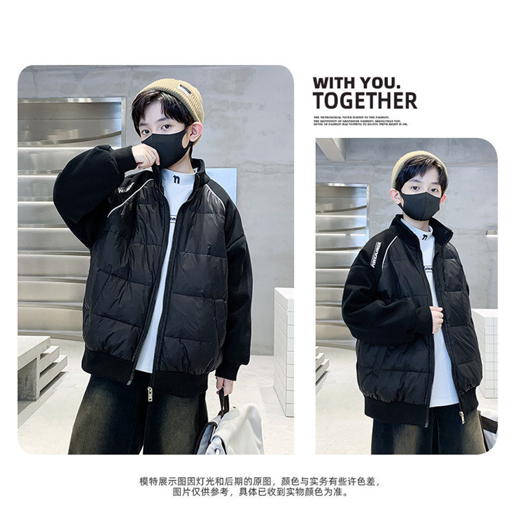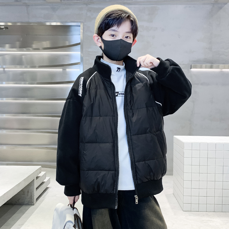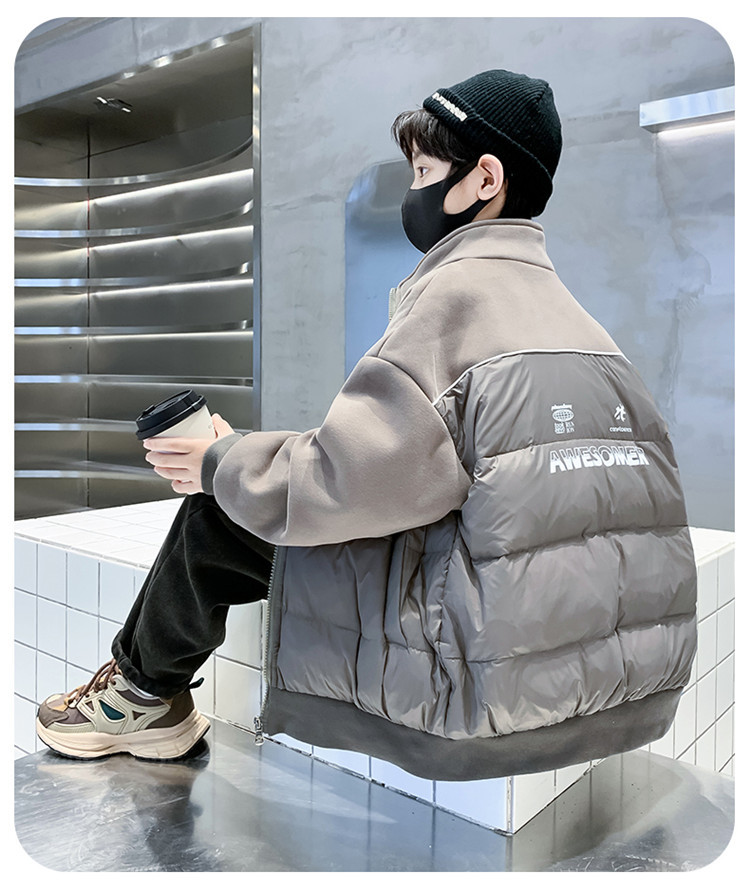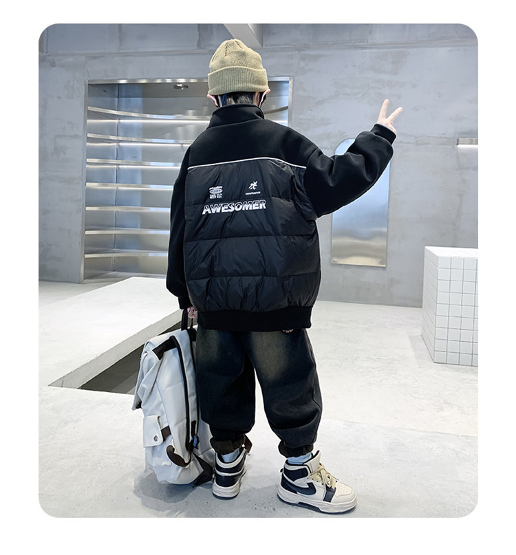 男童冬季拼接字母羽绒服2023新款儿童中大童加厚保暖白鸭绒外套潮