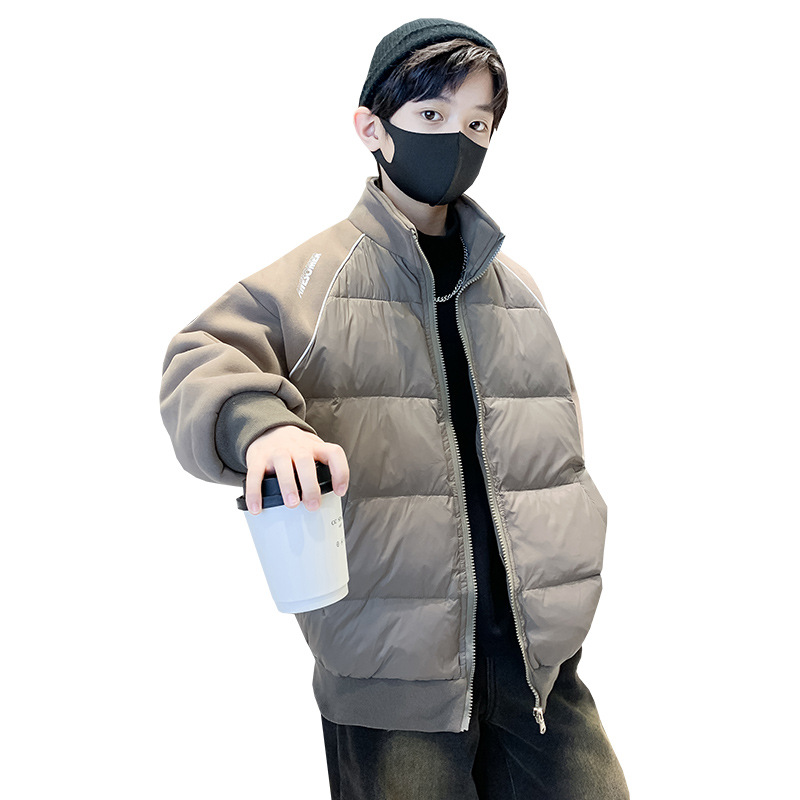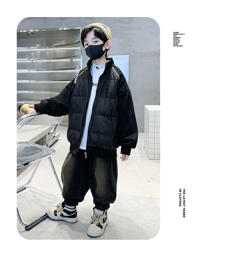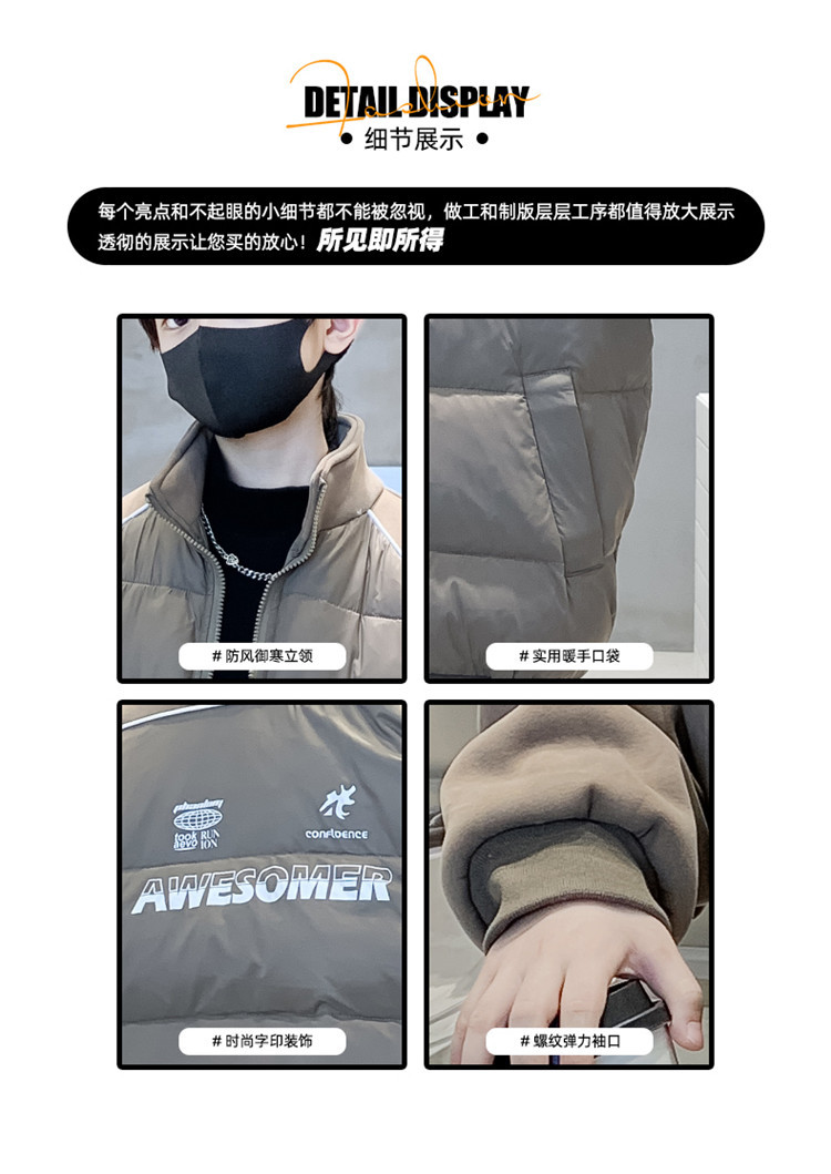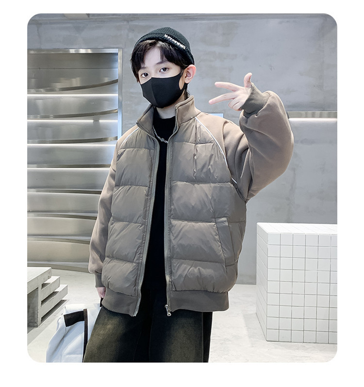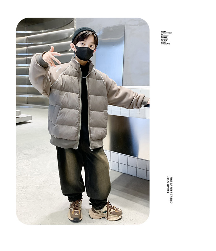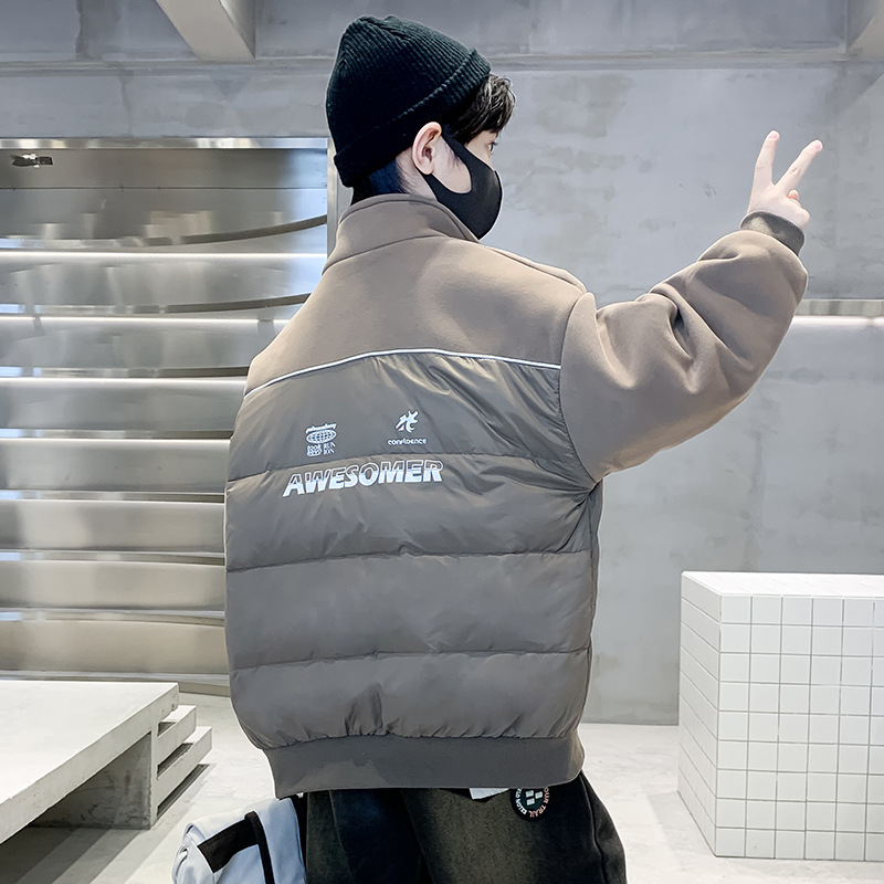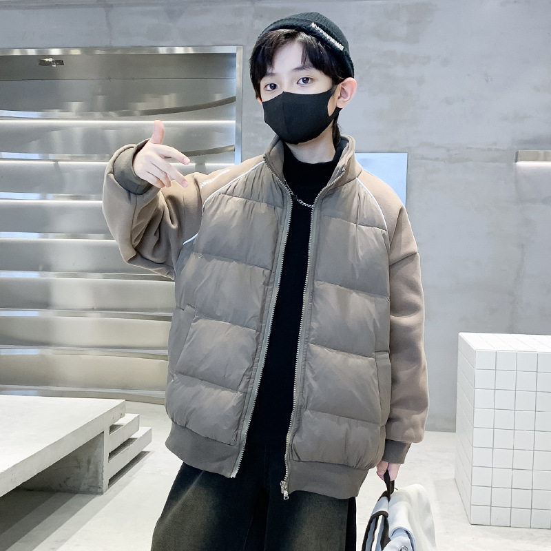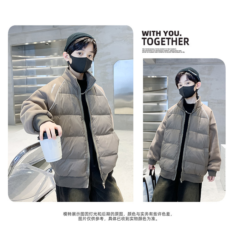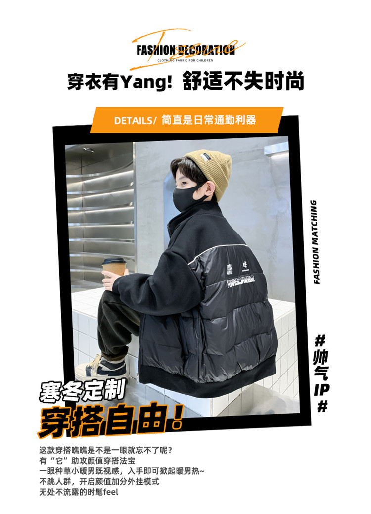 男童冬季拼接字母羽绒服2023新款儿童中大童加厚保暖白鸭绒外套潮