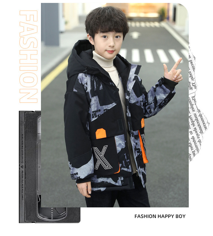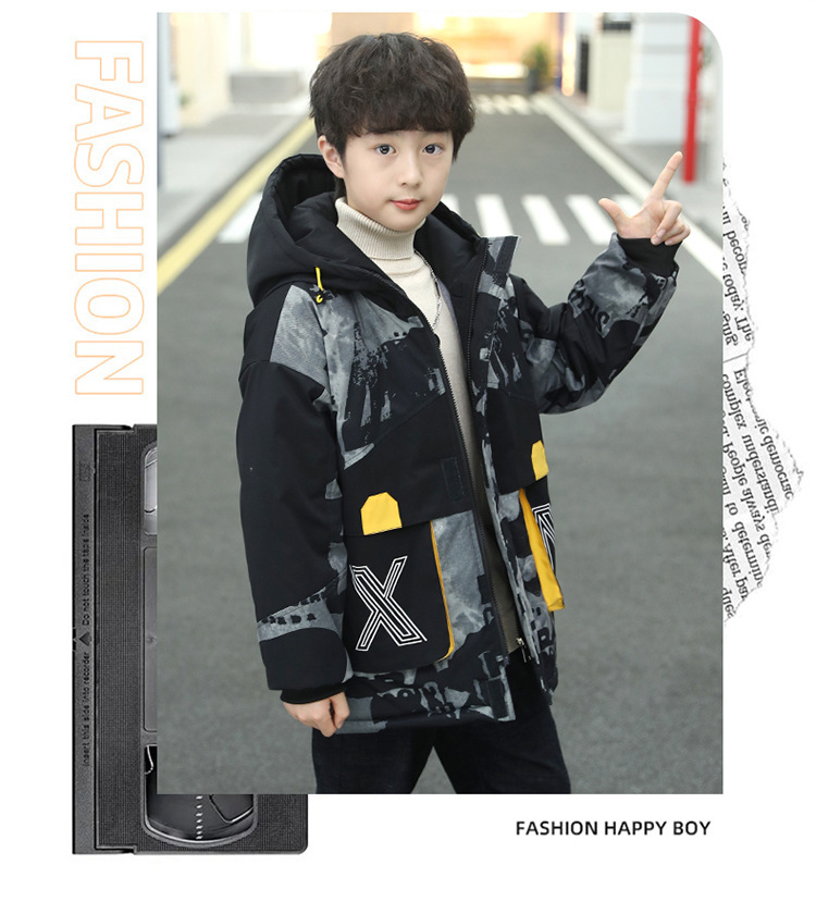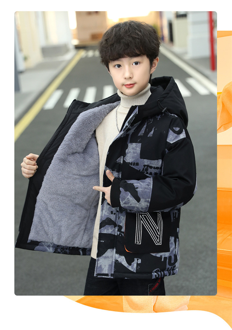 男童冬季字母棉衣派克服2023新款大儿童加绒加厚保暖棉袄棉服外套