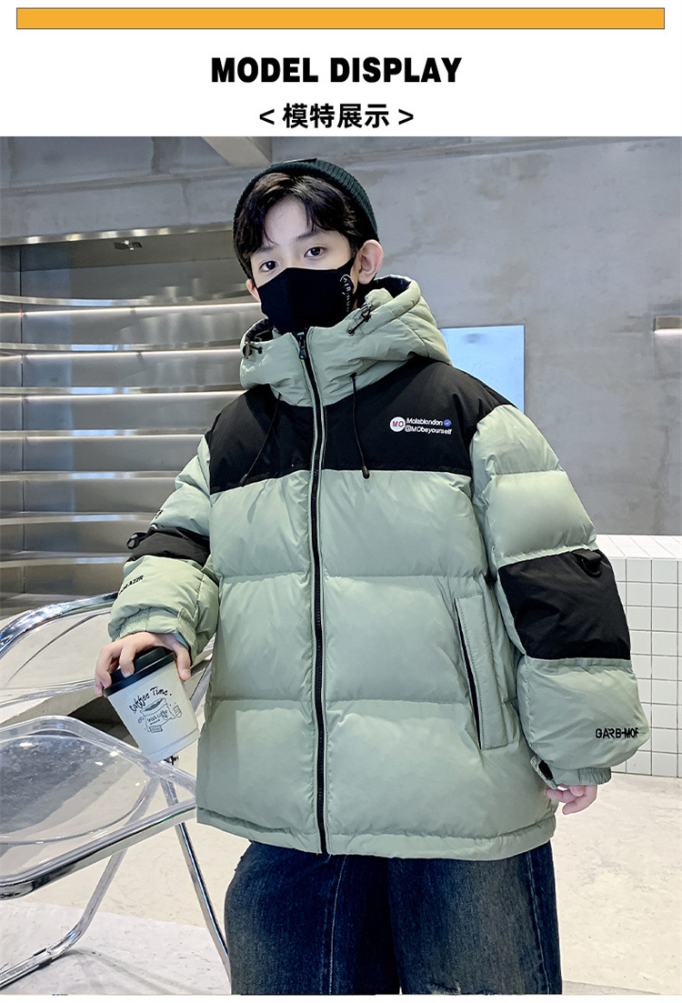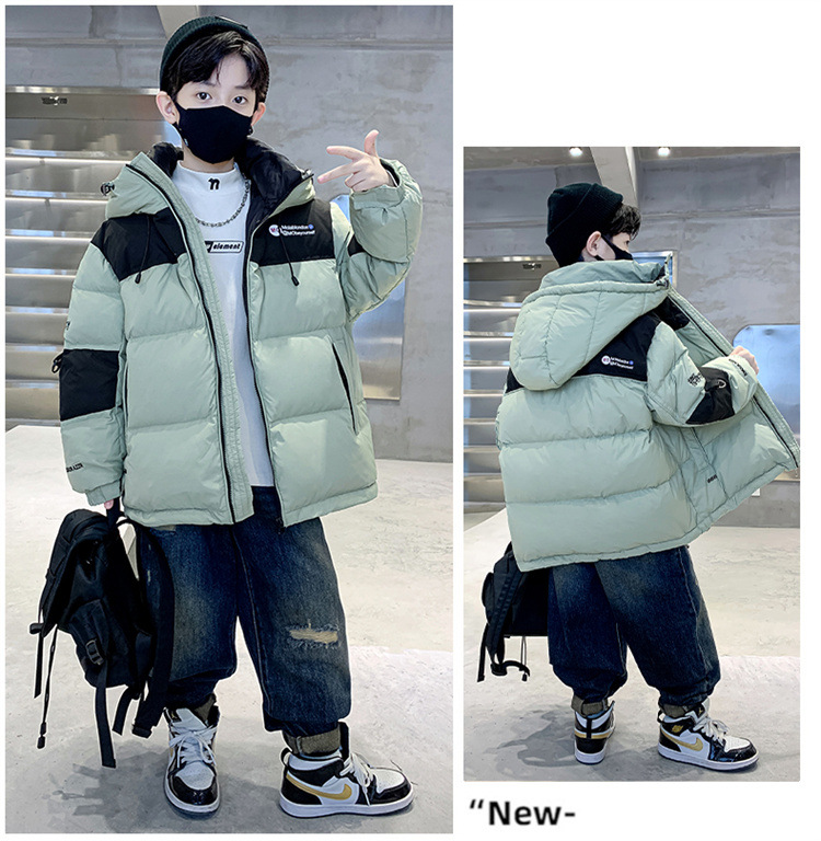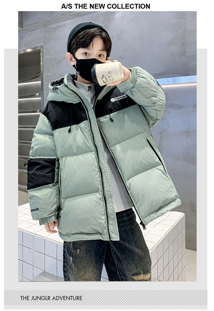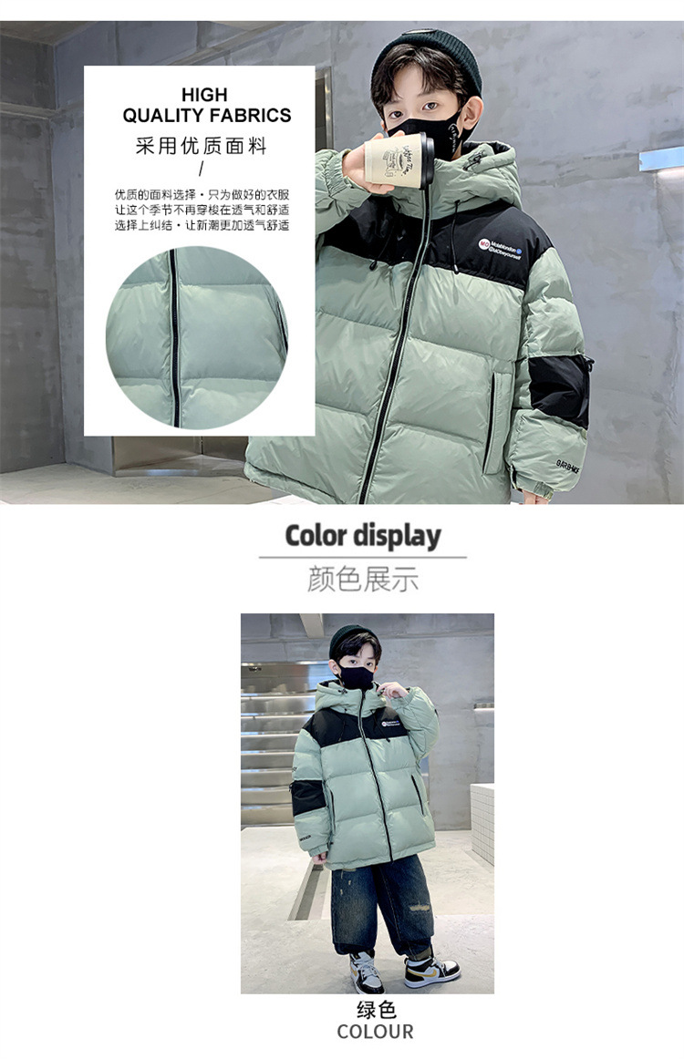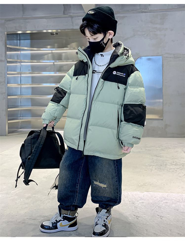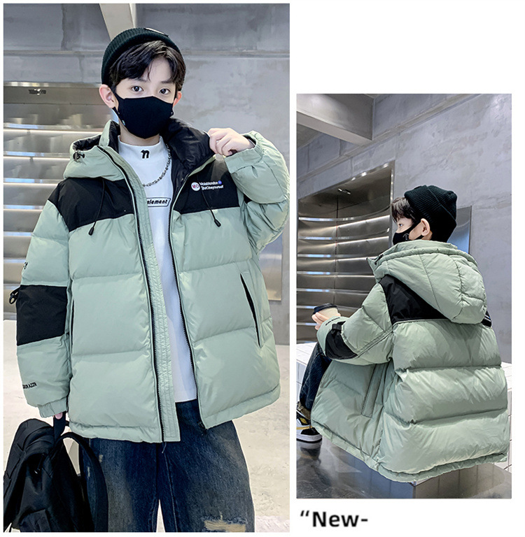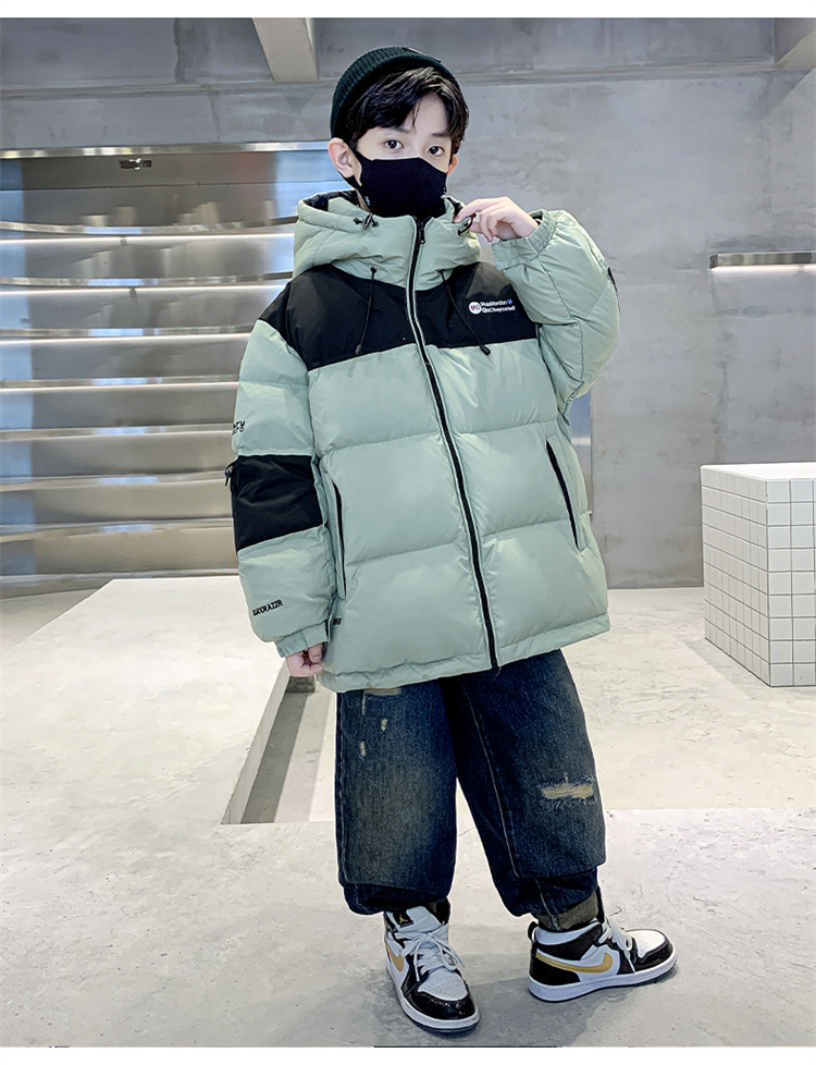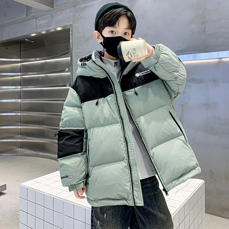 男童冬季连帽拼色羽绒服2023新款中大儿童加厚保暖白鸭绒外套冬装