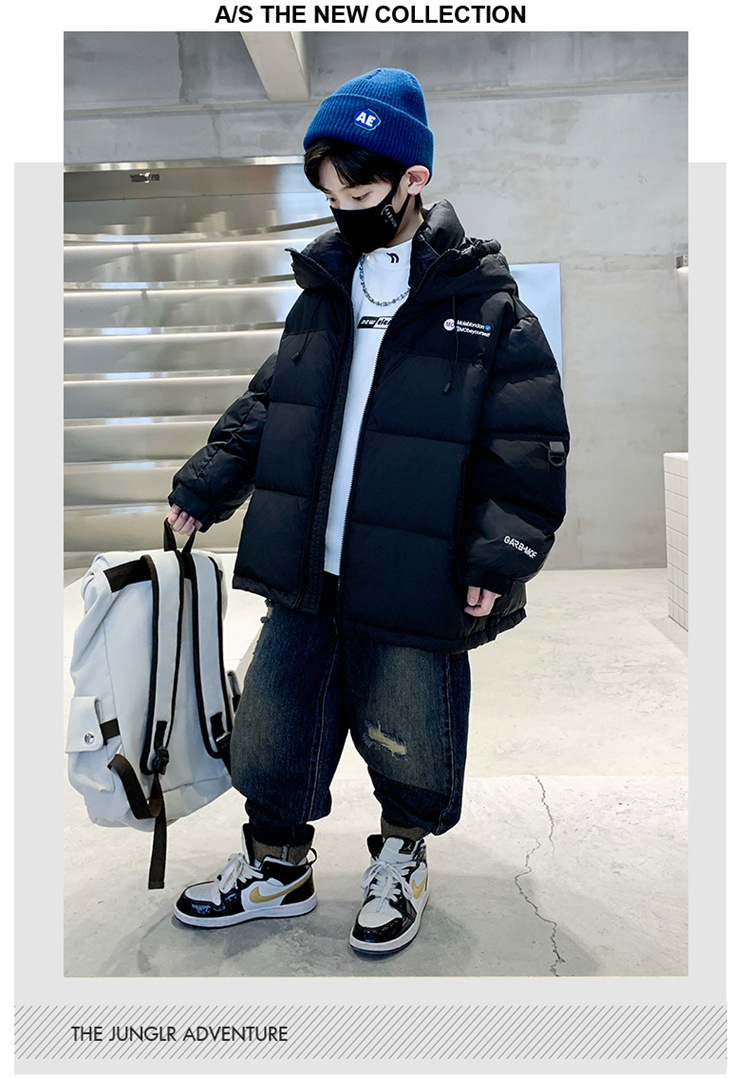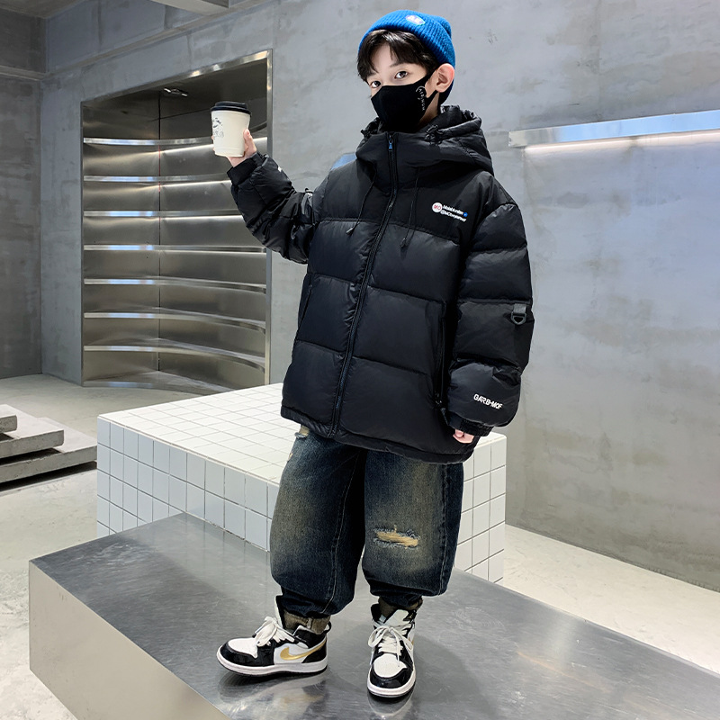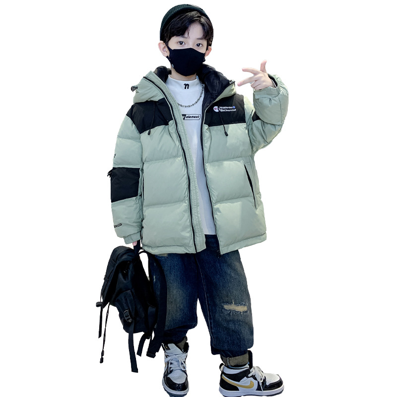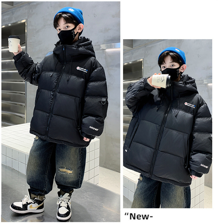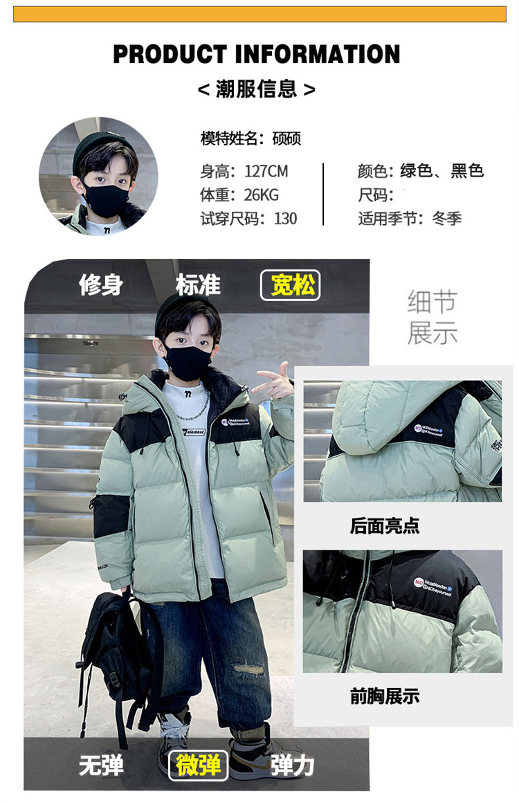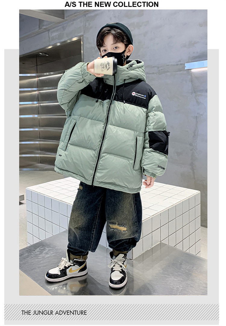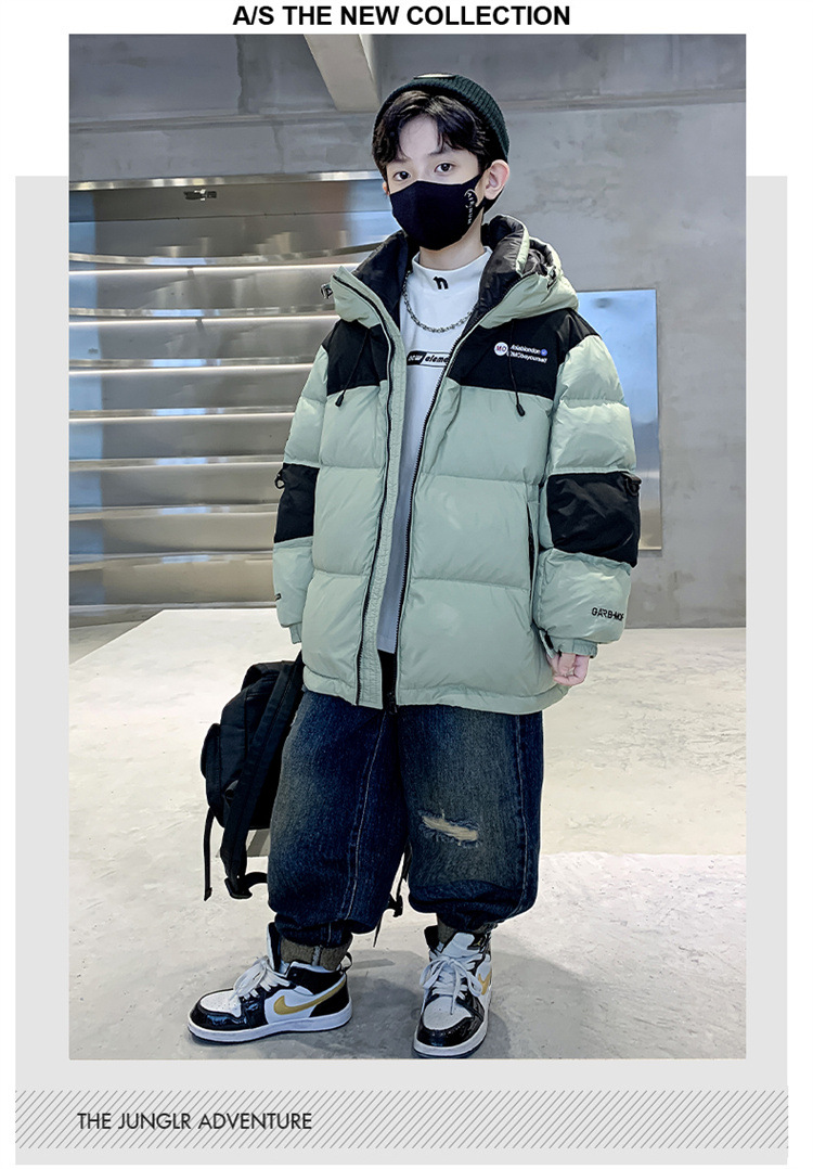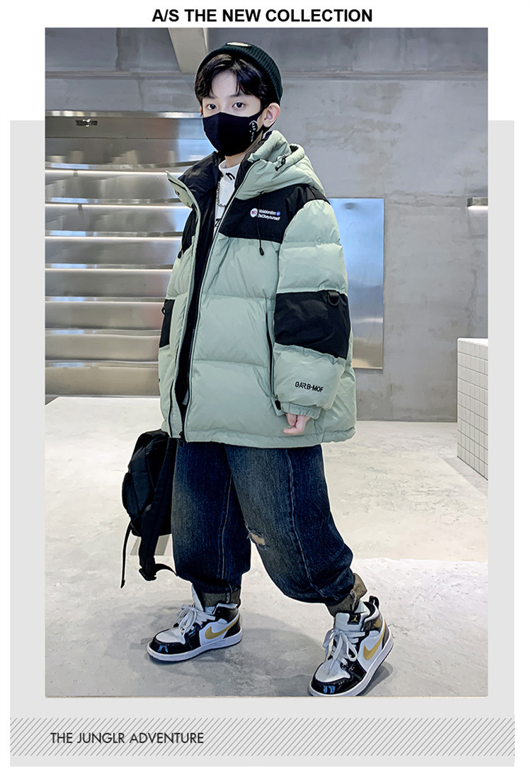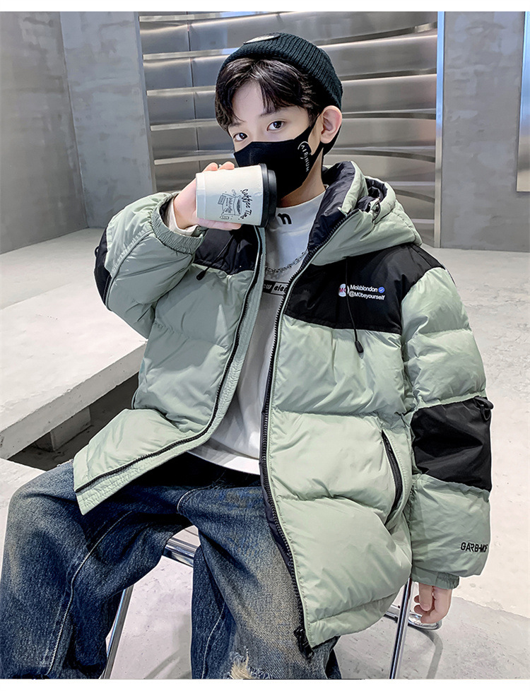 男童冬季连帽拼色羽绒服2023新款中大儿童加厚保暖白鸭绒外套冬装