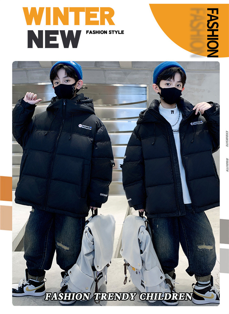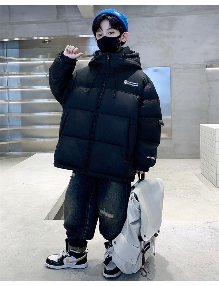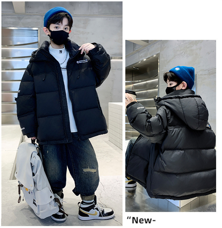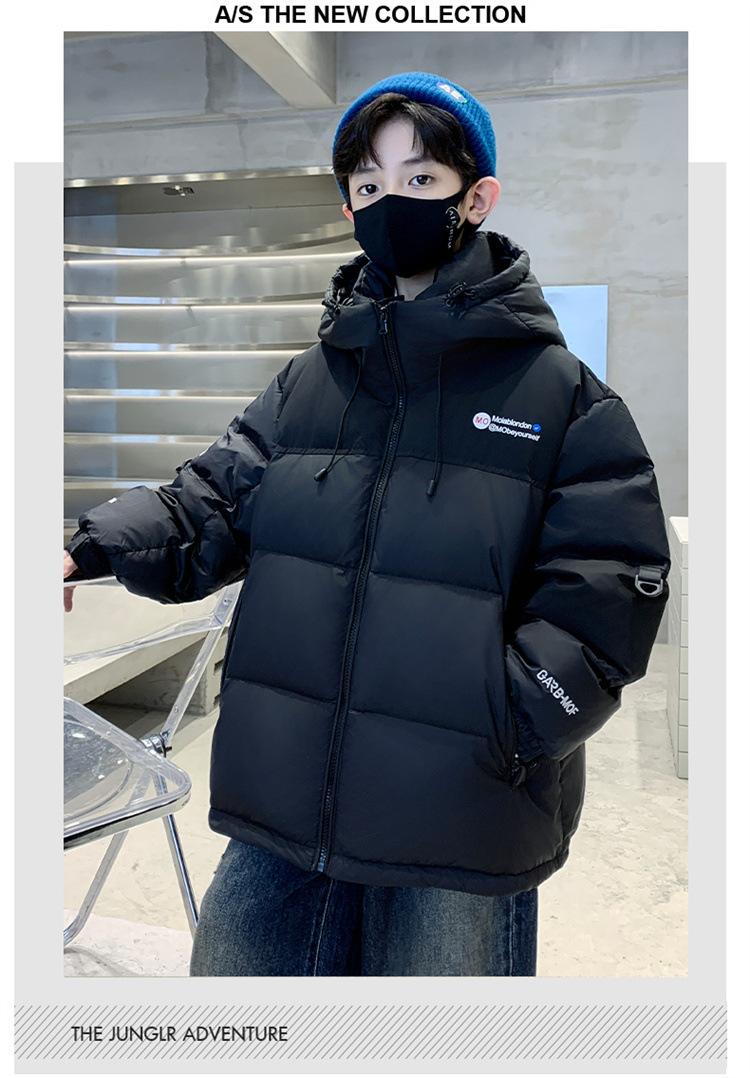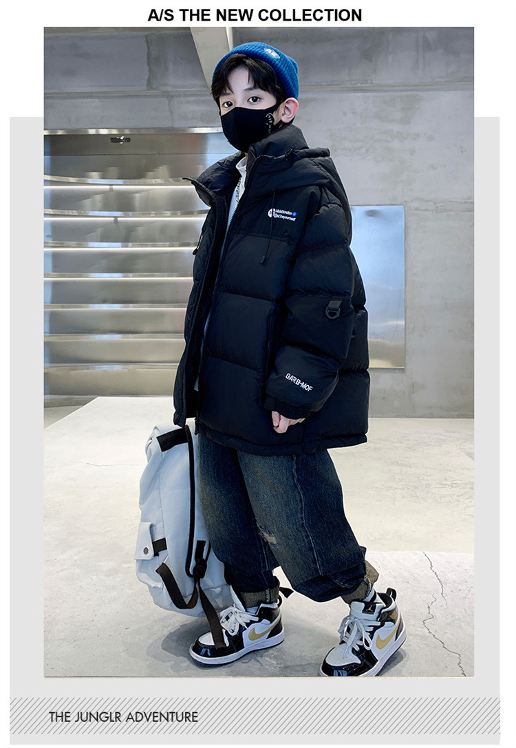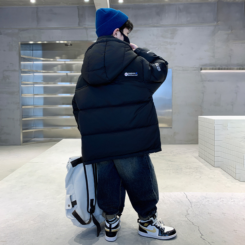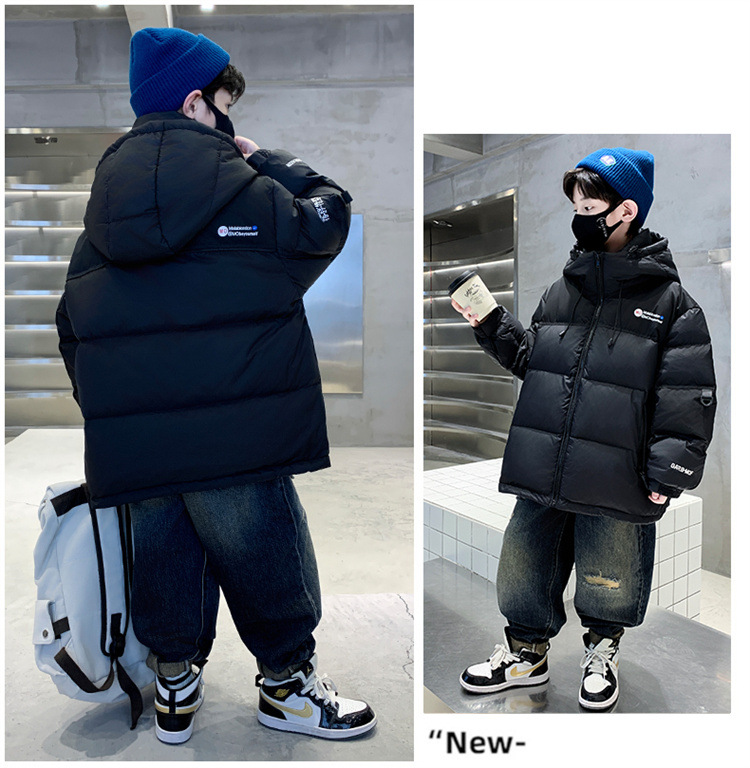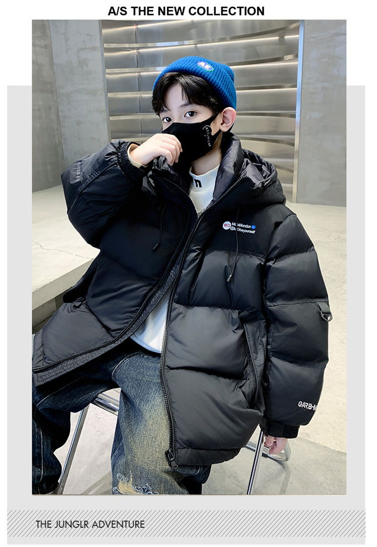 男童冬季连帽拼色羽绒服2023新款中大儿童加厚保暖白鸭绒外套冬装