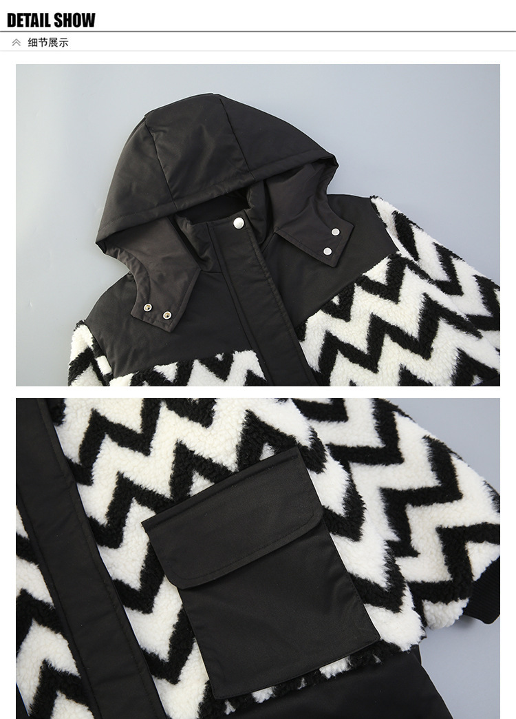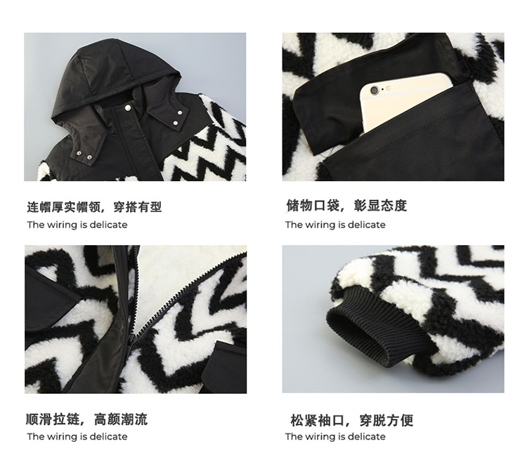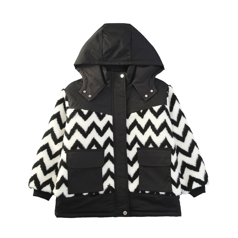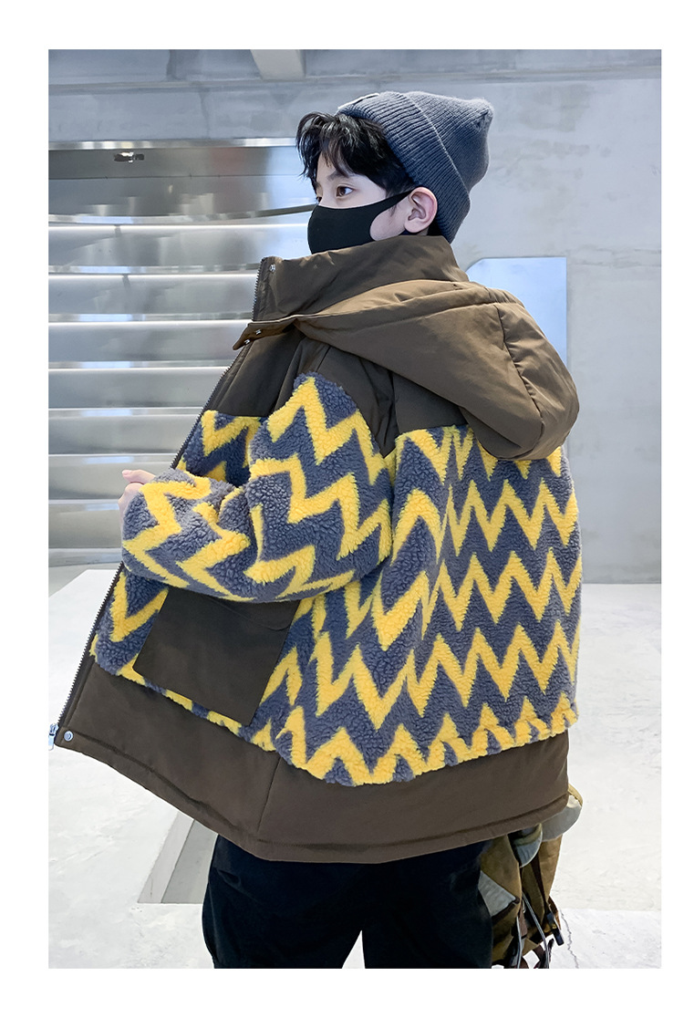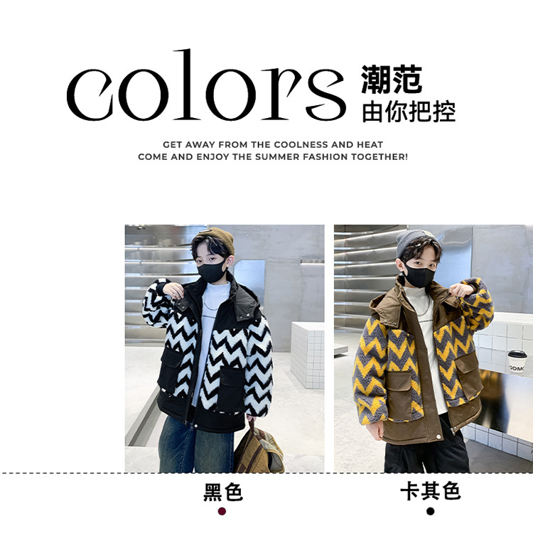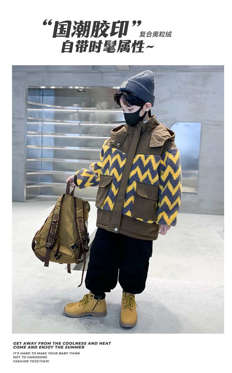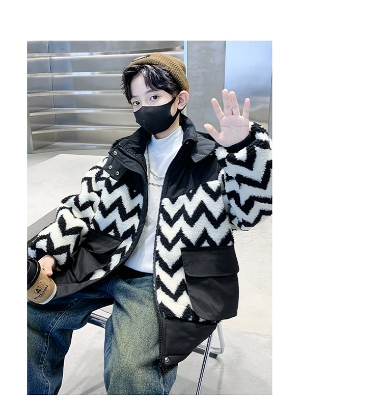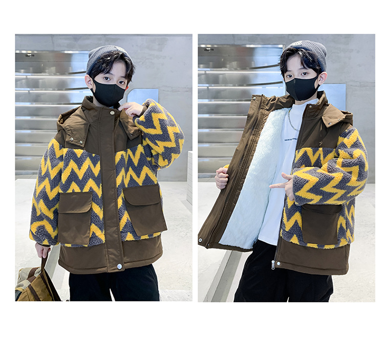 男童冬季波浪连帽毛毛衣2023新款大儿童加绒加厚保暖风衣外套冬装