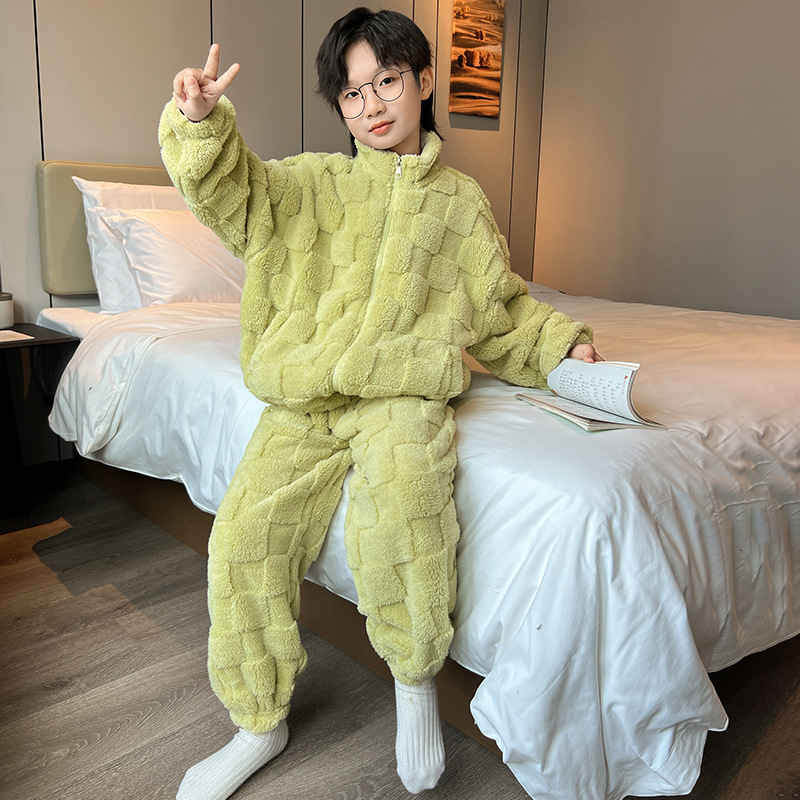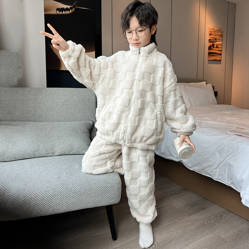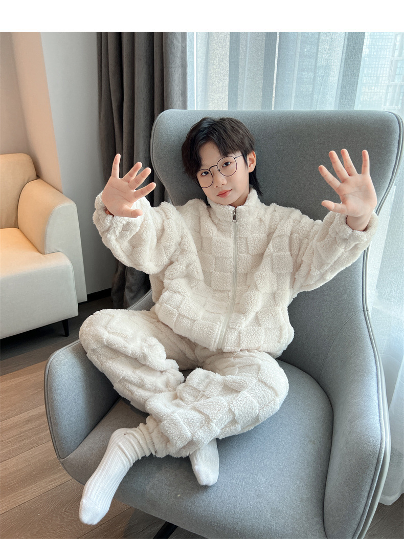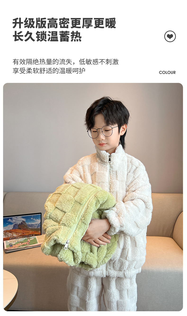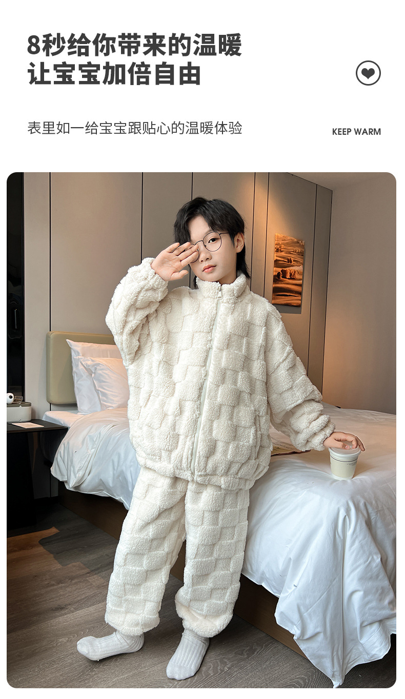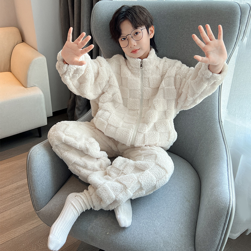 男童冬季家居服套装2023新款中大儿童保暖珊瑚绒法兰绒睡衣两件套
