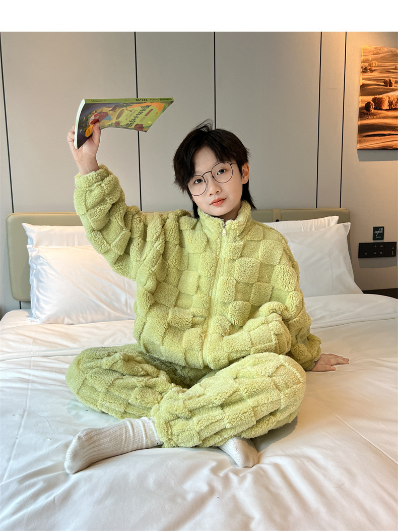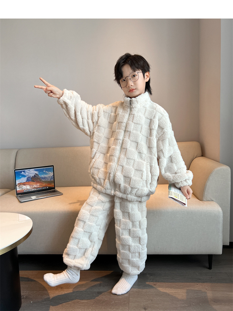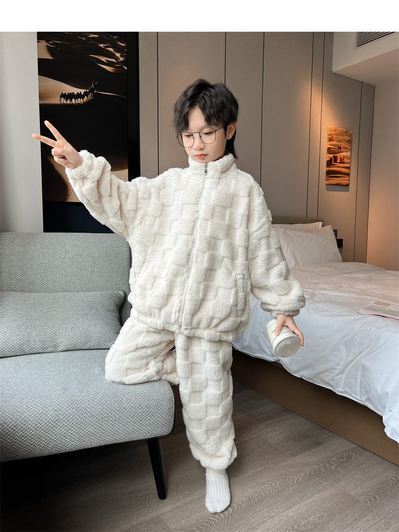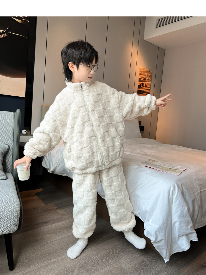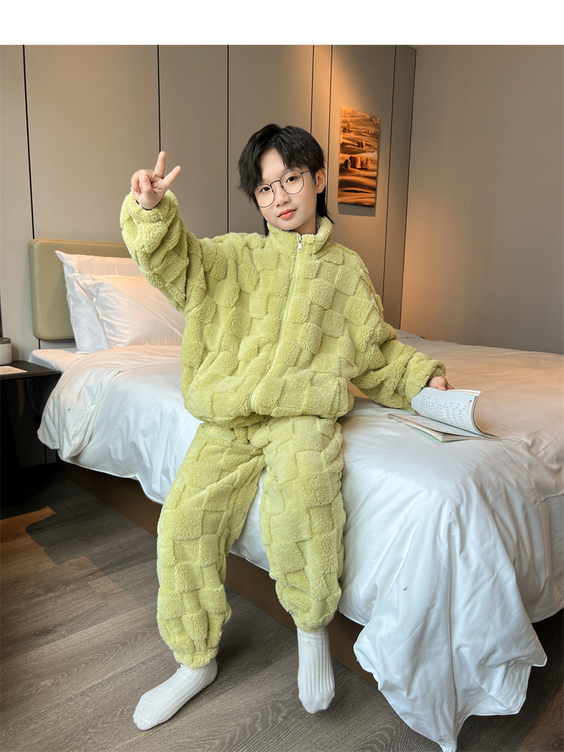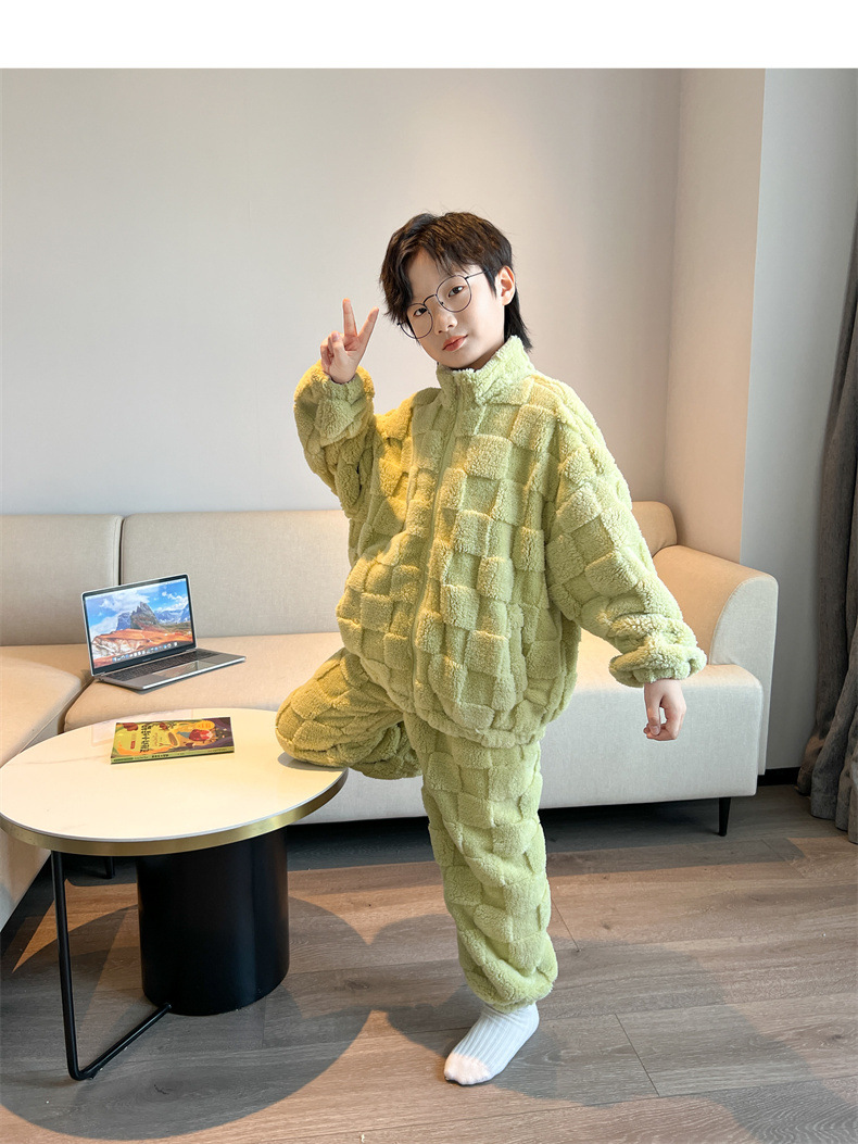 男童冬季家居服套装2023新款中大儿童保暖珊瑚绒法兰绒睡衣两件套
