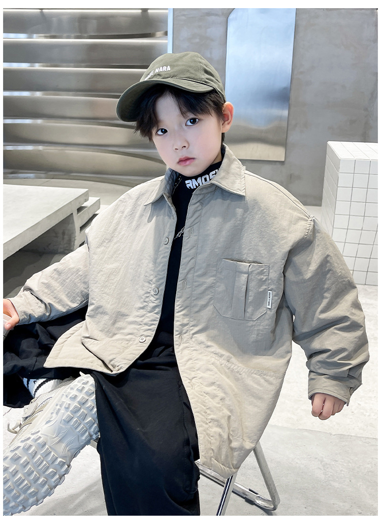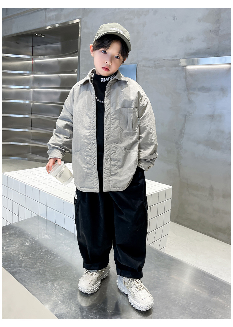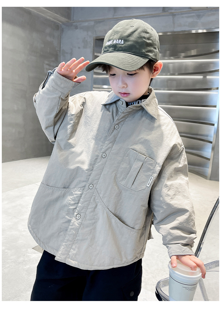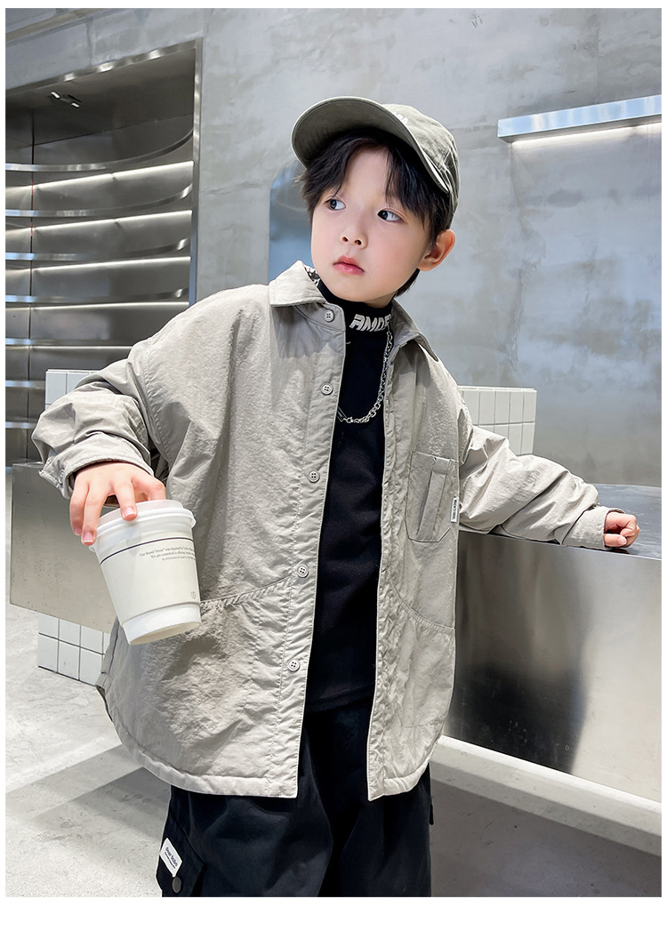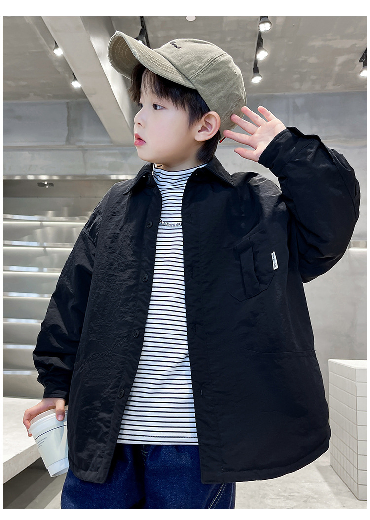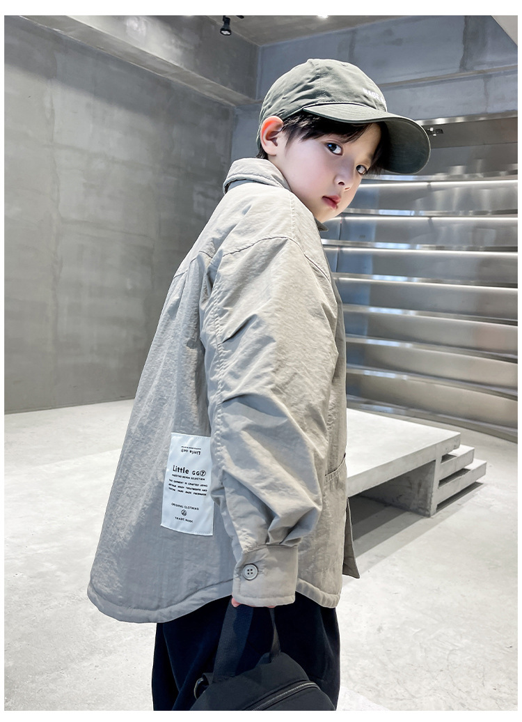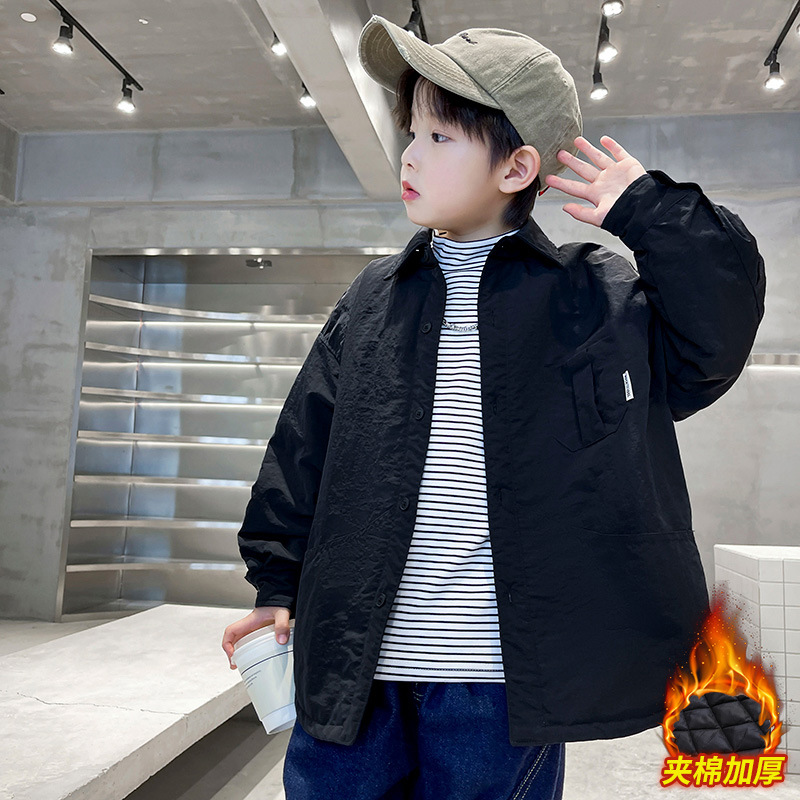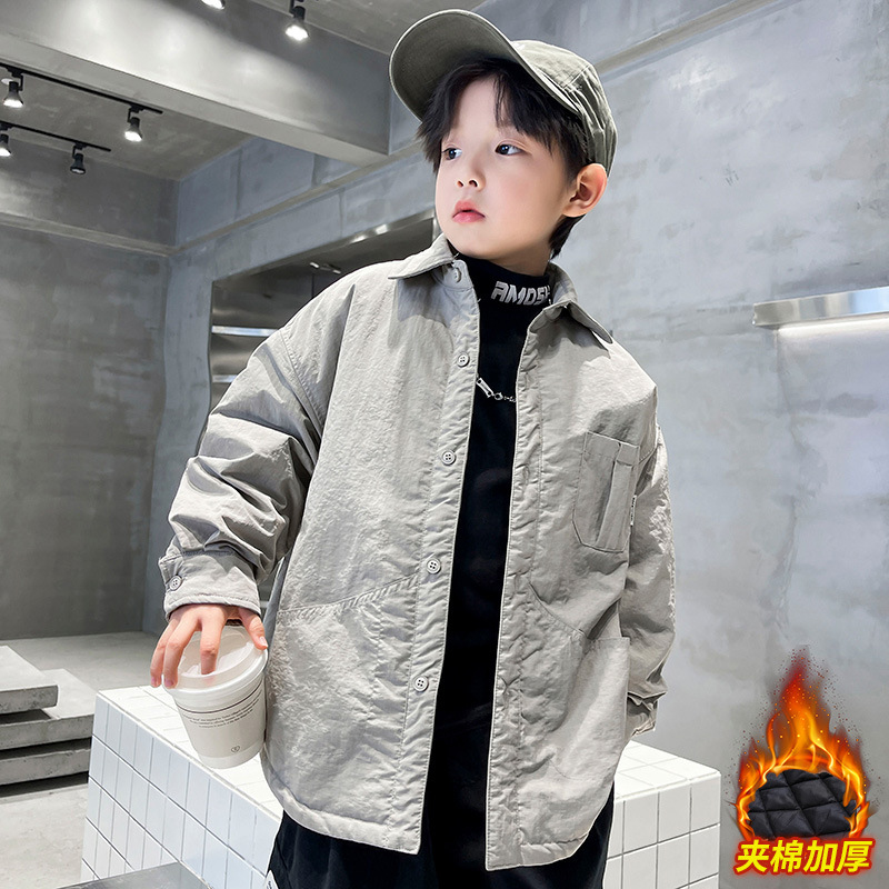 男童秋冬季加棉加厚衬衫外套2023新款中大儿童洋气保暖拼接风衣潮