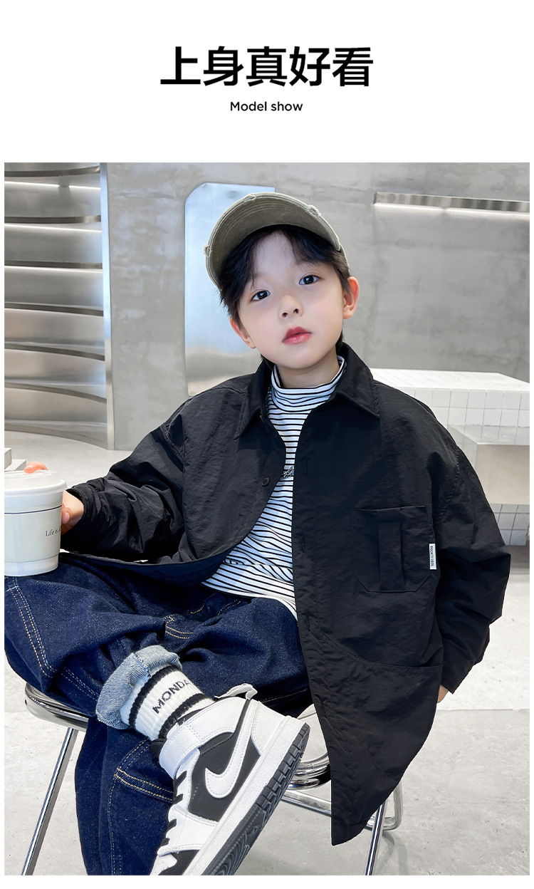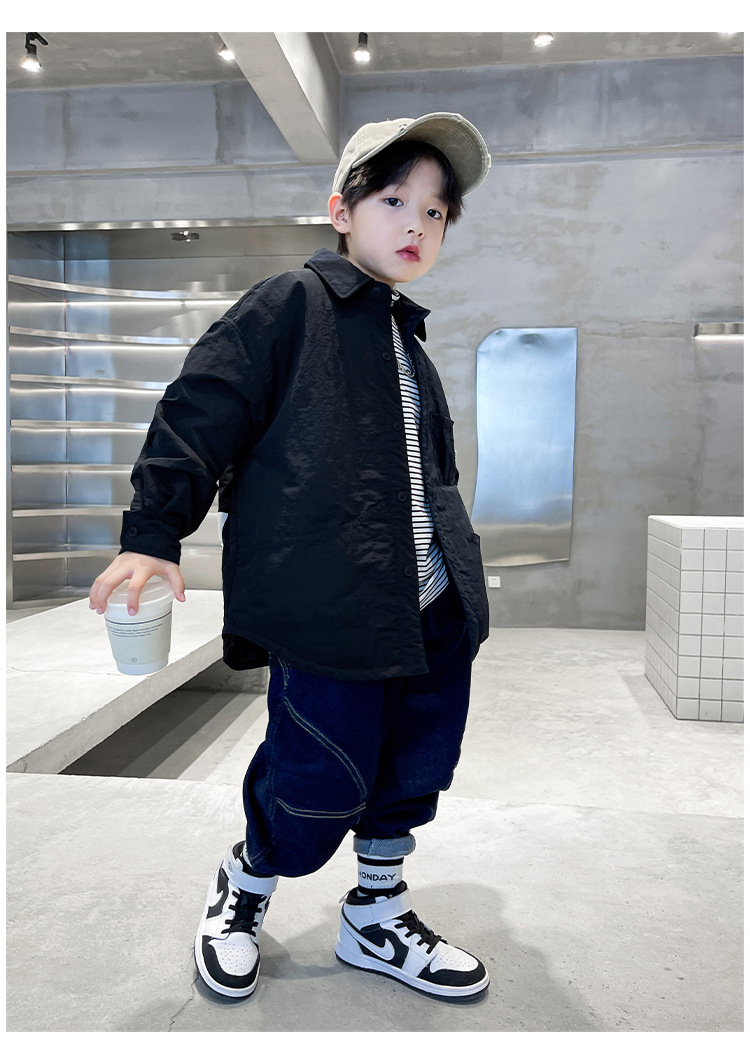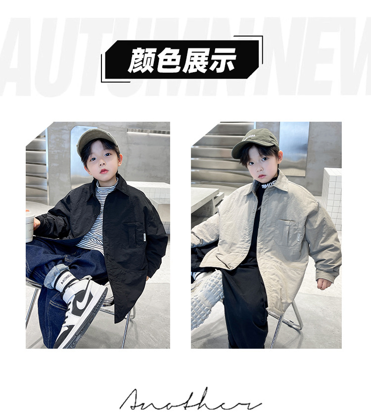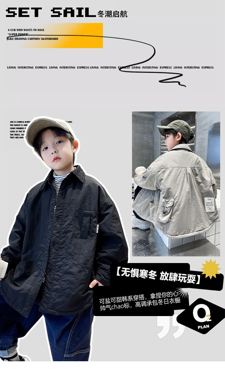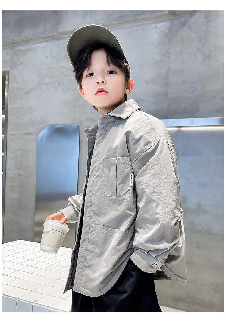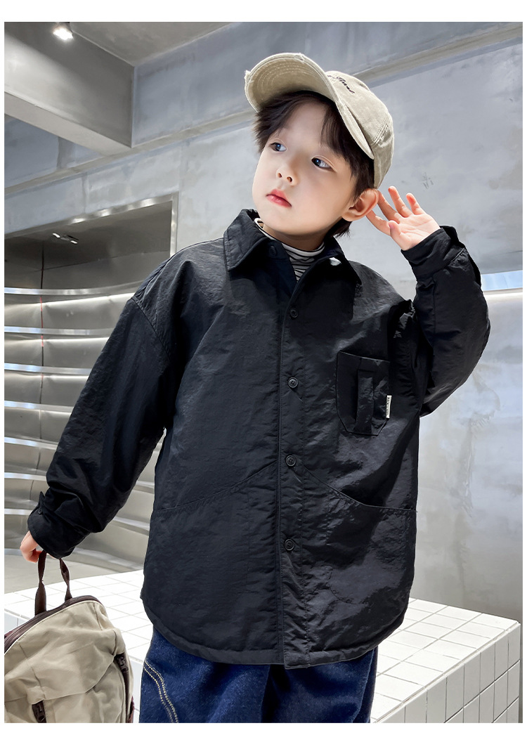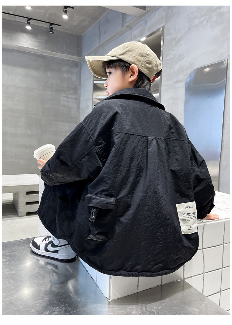 男童秋冬季加棉加厚衬衫外套2023新款中大儿童洋气保暖拼接风衣潮