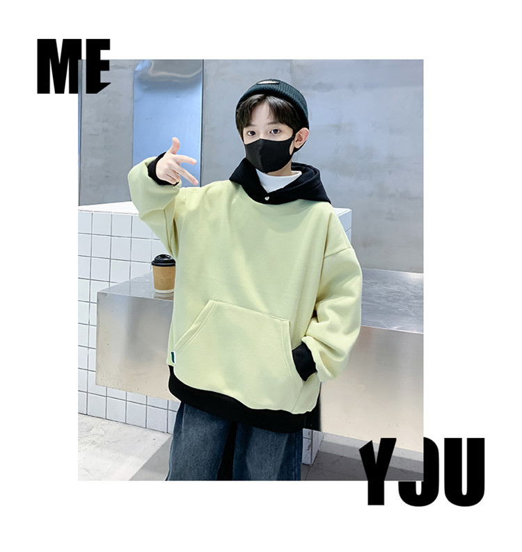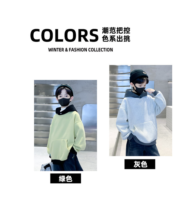 男童冬季撞色连帽卫衣2023新款儿童休闲加绒加厚保暖字母卫衣冬装