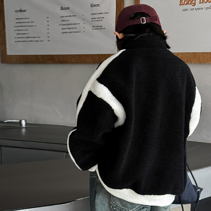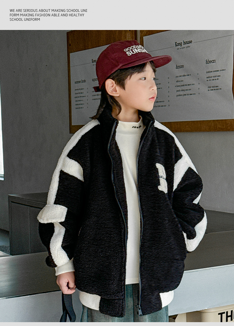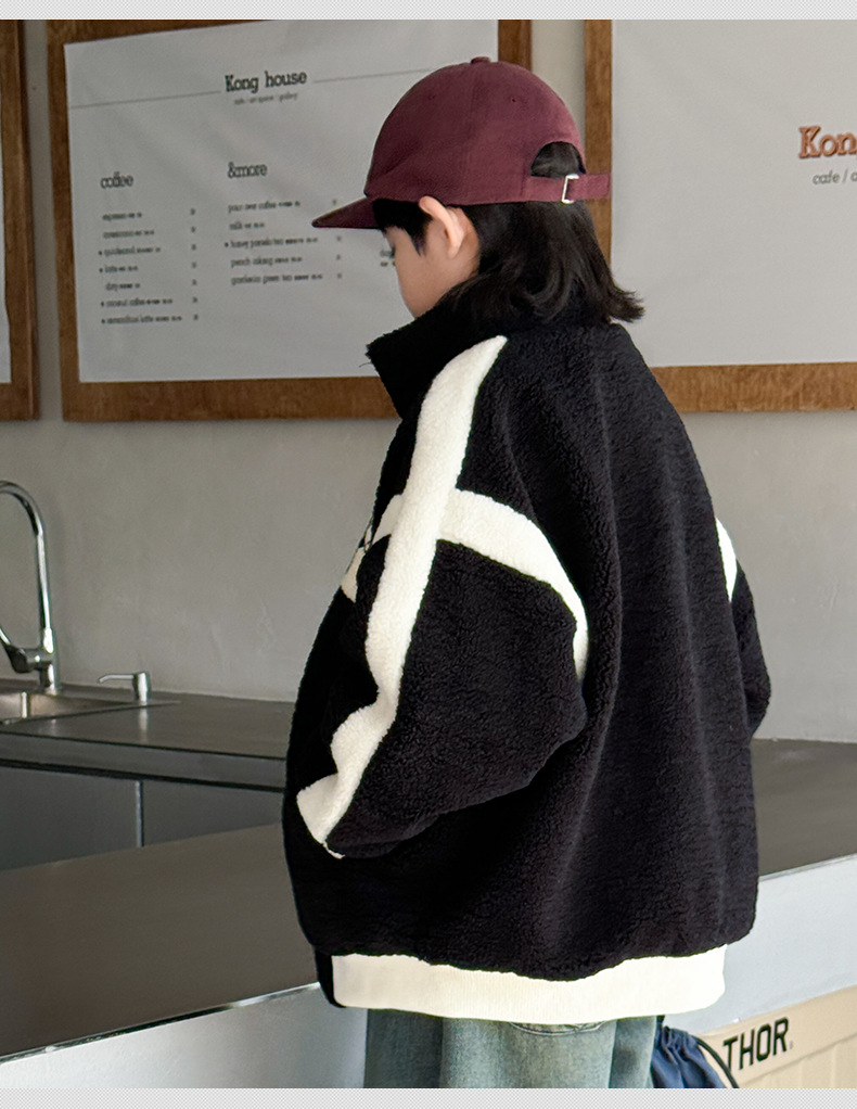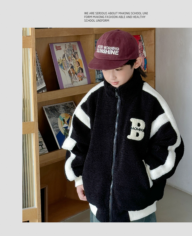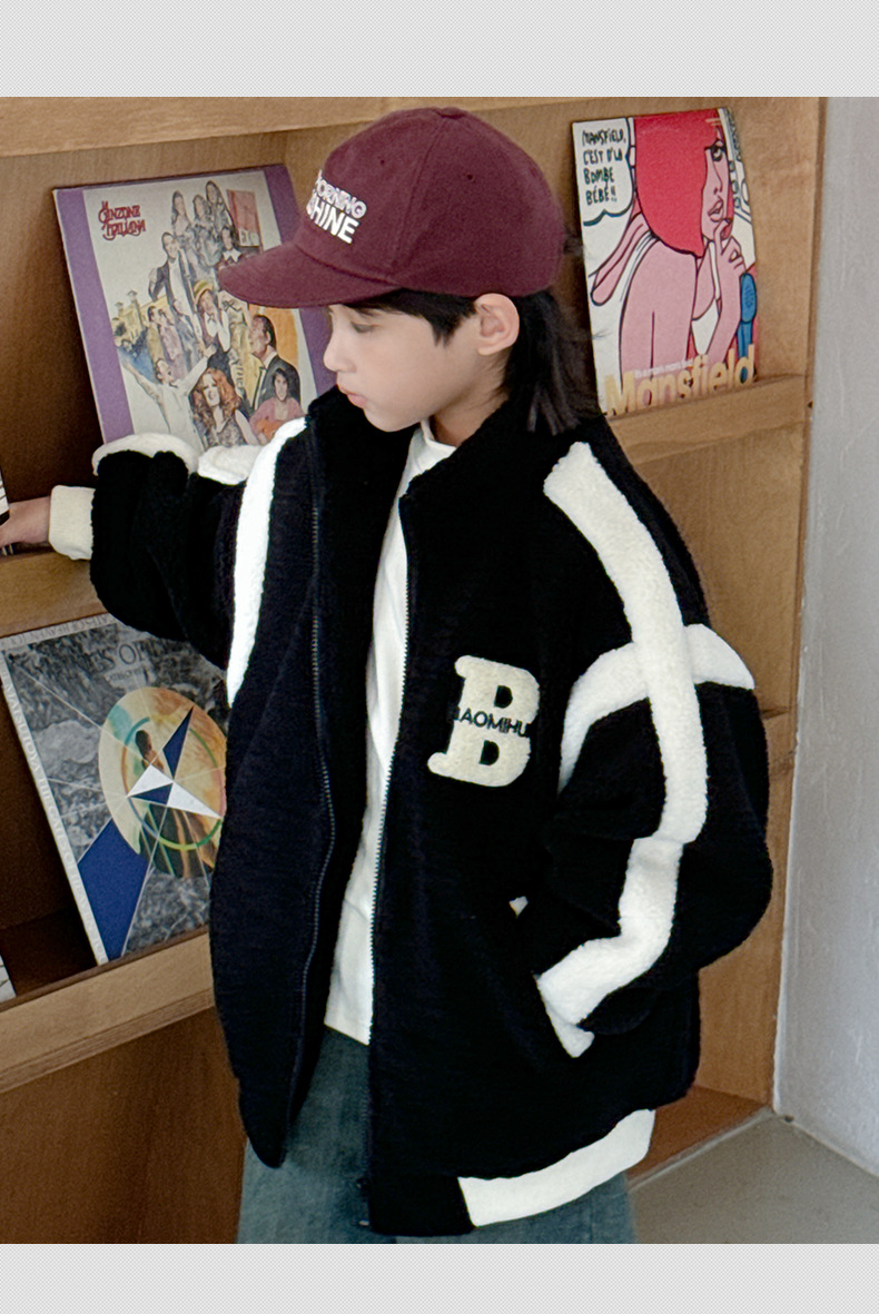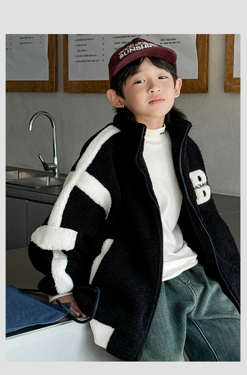 男童冬季波浪连帽毛毛衣2023新款大儿童加绒加厚保暖风衣外套冬装