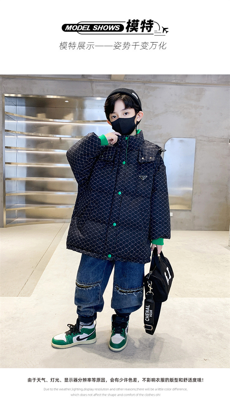 男童冬季字母绣花羽绒服2023新款儿童中大童加厚保暖白鸭绒外套潮