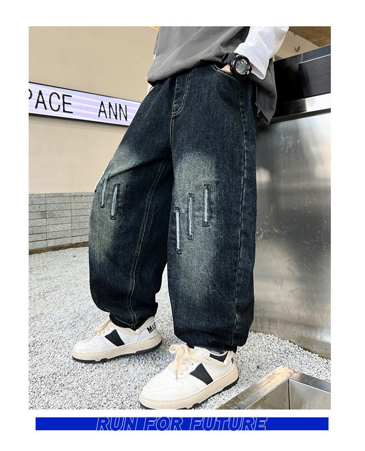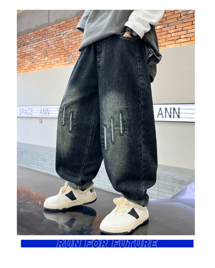 男童冬季字母宽松加绒牛仔裤2023新款儿童装加厚保暖休闲裤长裤子