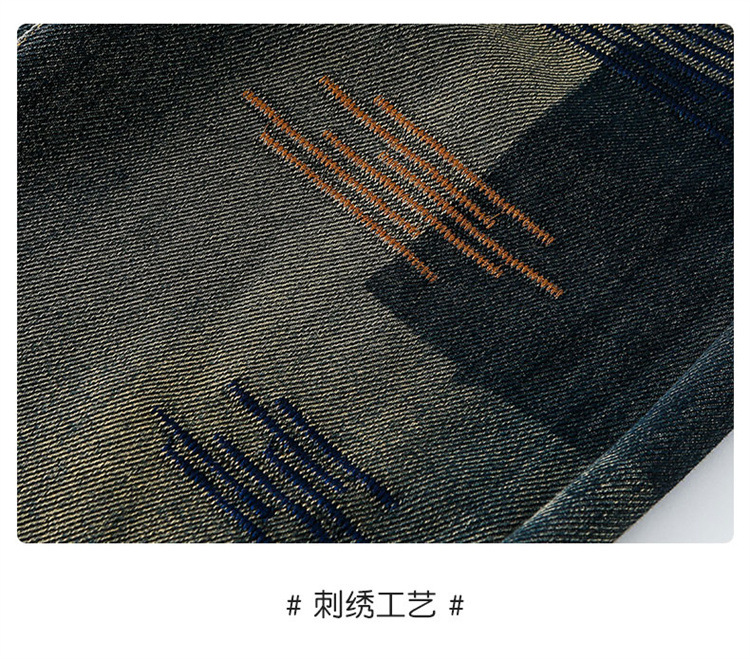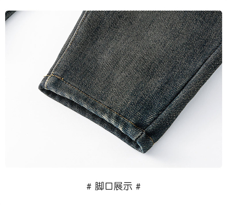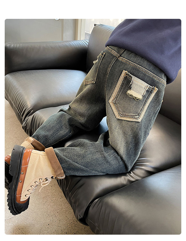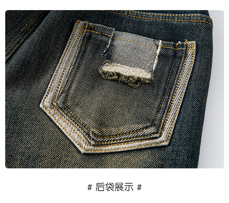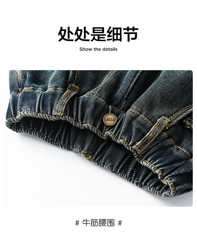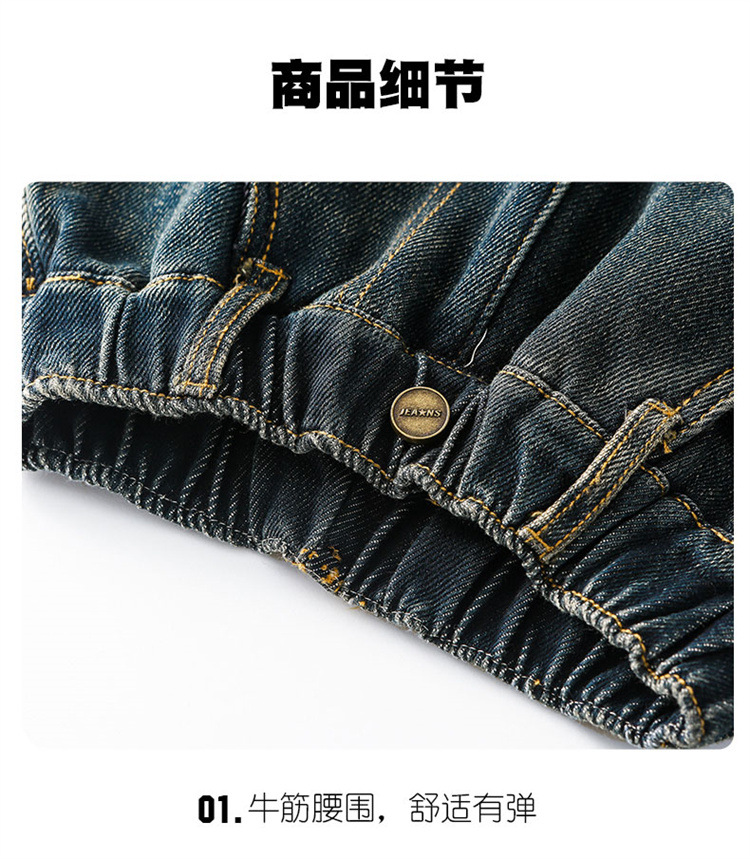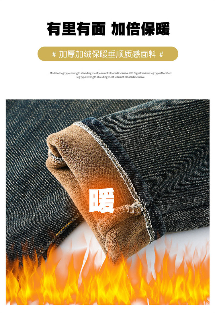 男童冬季条纹刺绣加绒牛仔裤2023新款大儿童装加厚保暖休闲长裤子