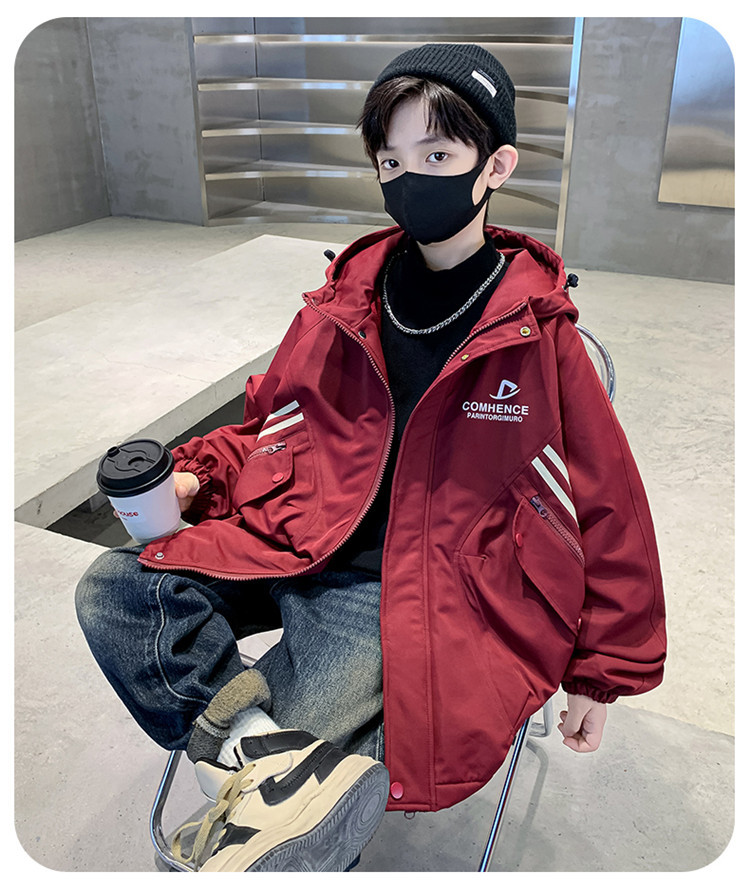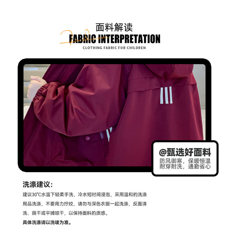 男童冬季加绒拉条冲锋衣外套2023新款大儿童加厚保暖夹克风衣冬装