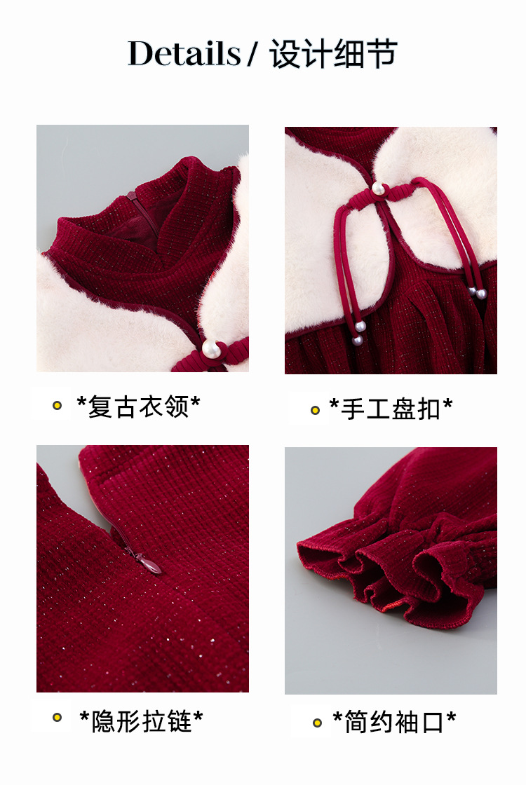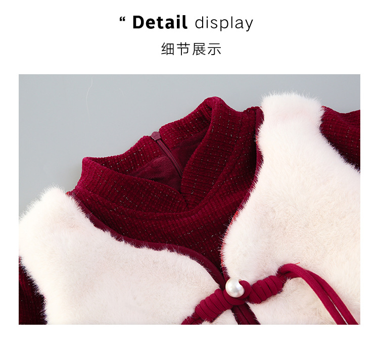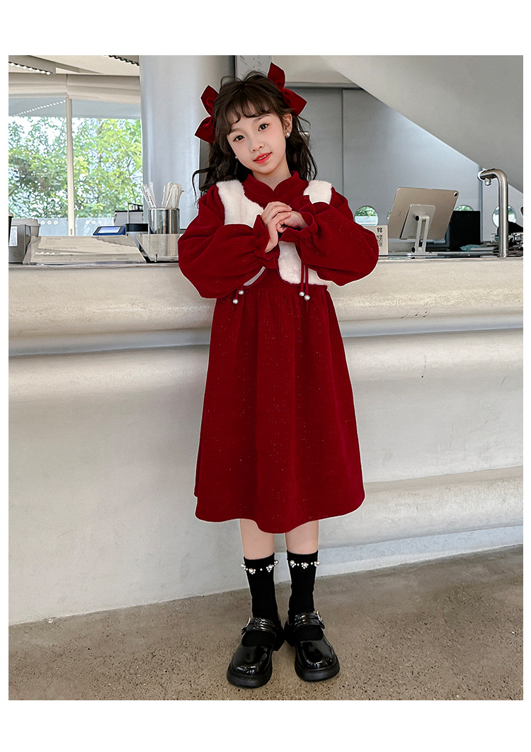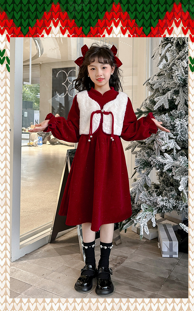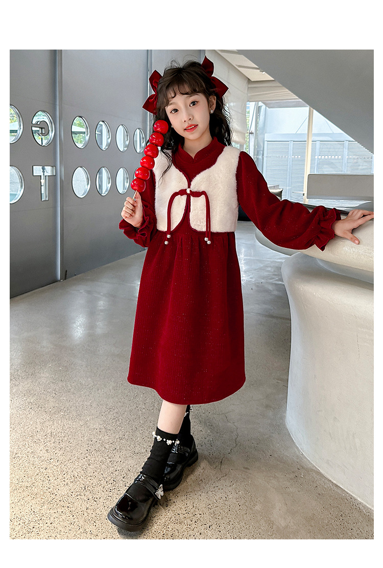 女童冬季年服裙连衣裙2023新款儿童加绒加厚保暖新年马甲公主裙子
