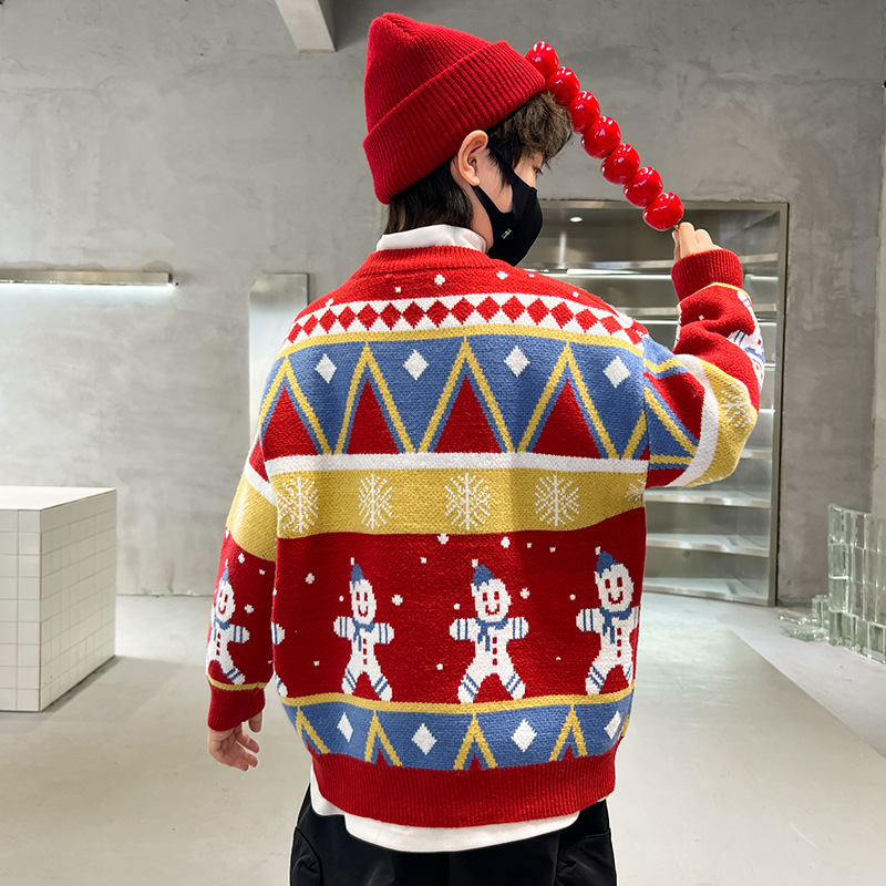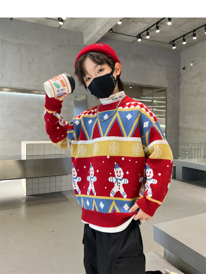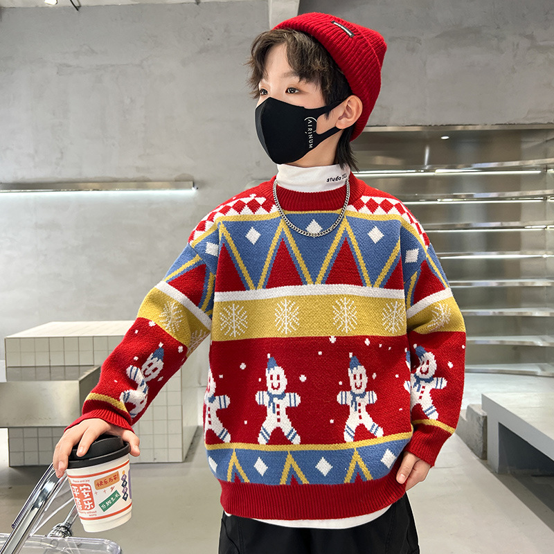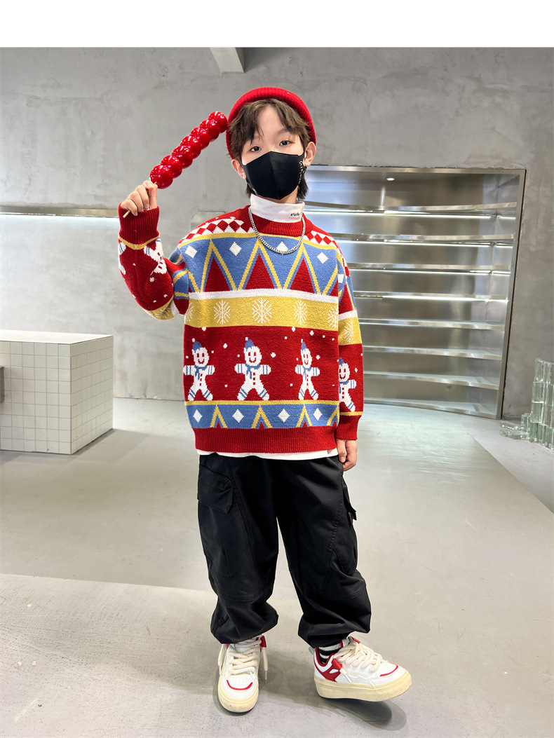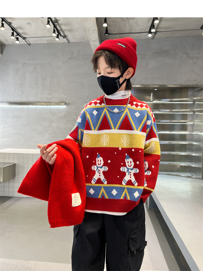 男童冬季圣诞套头毛衣2023新款中大儿童洋气休闲加厚保暖针织线衫