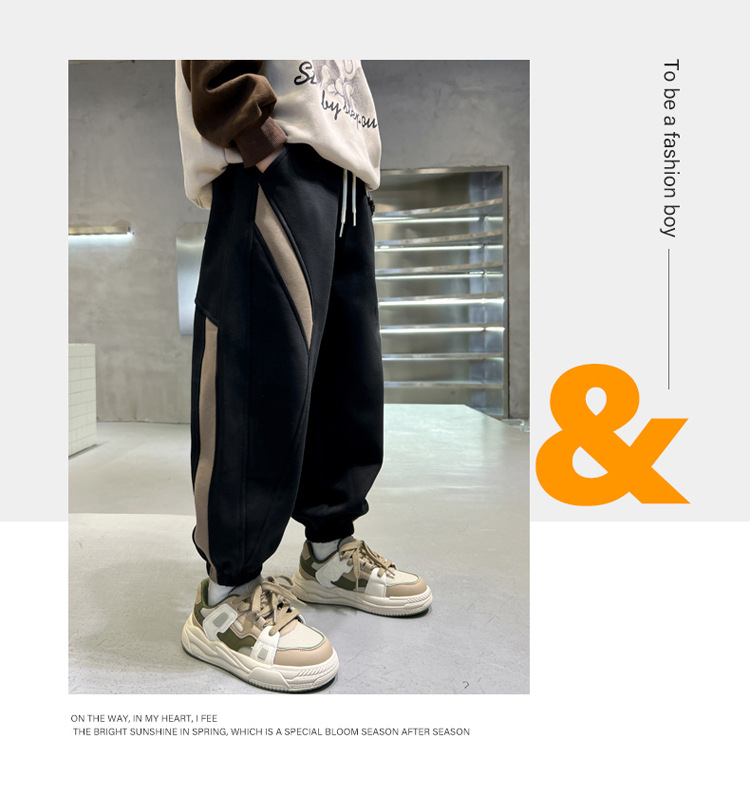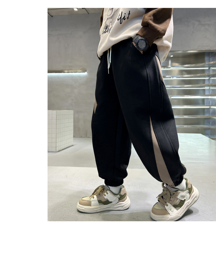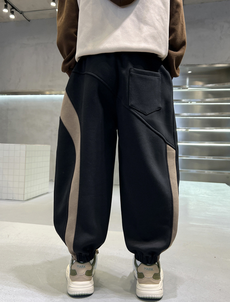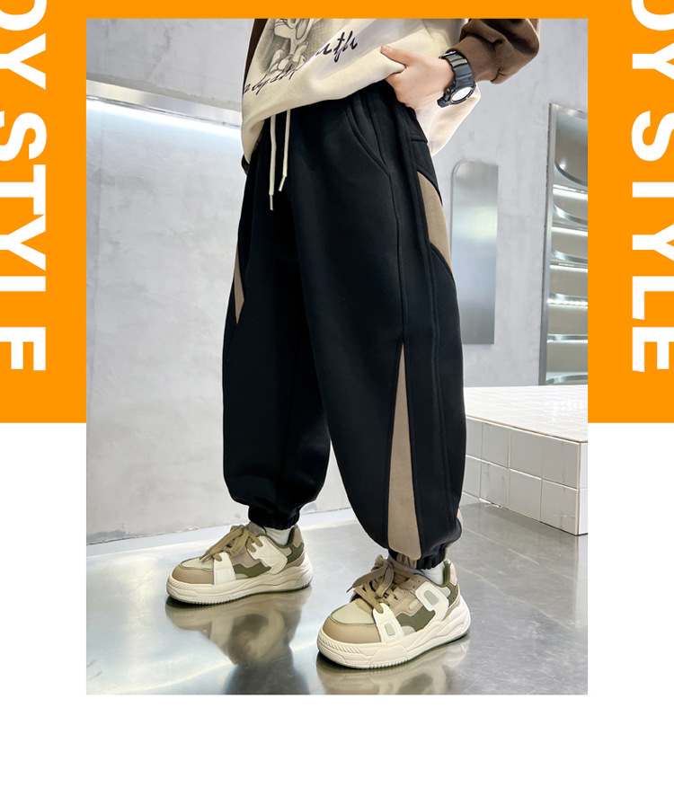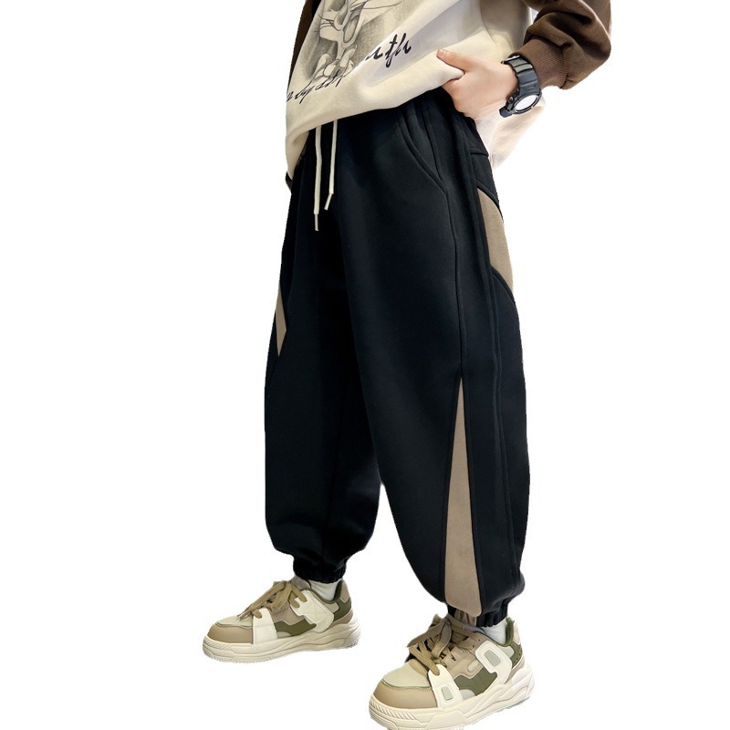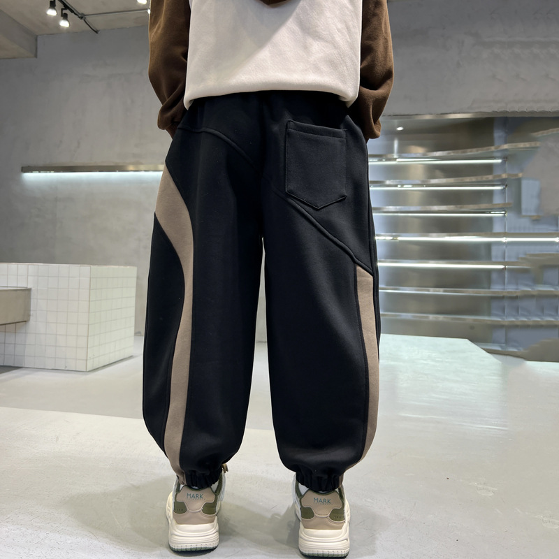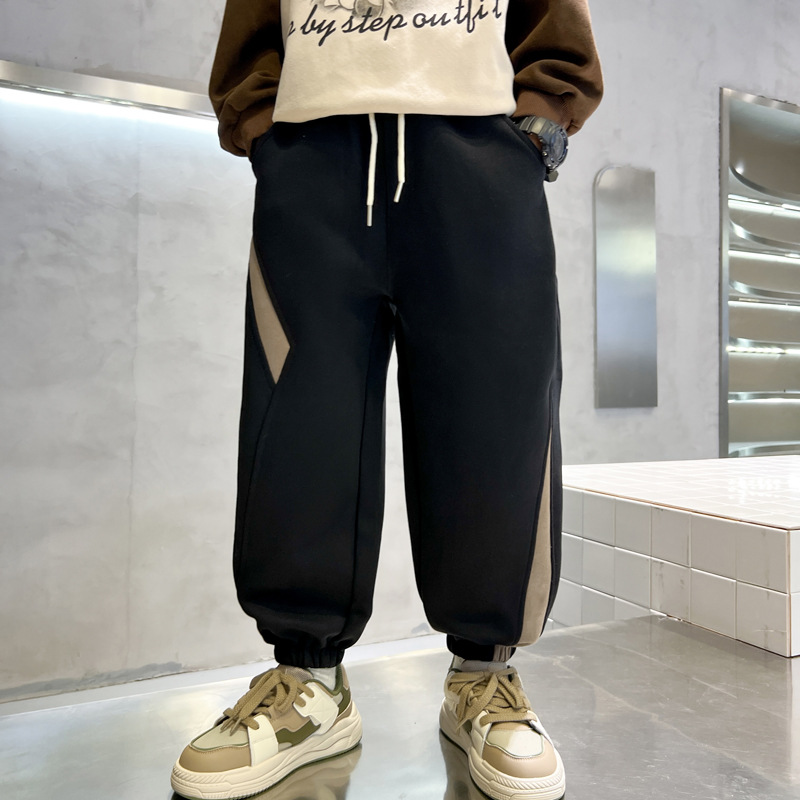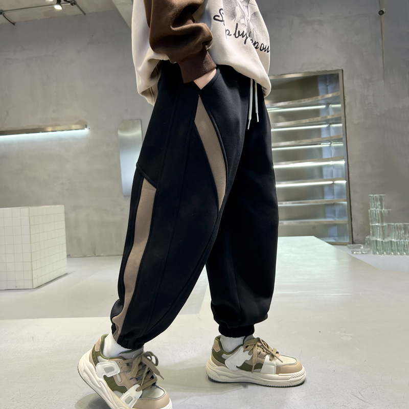 男童冬季拼接针织加绒卫裤2023新款儿童加厚保暖运动休闲裤长裤子