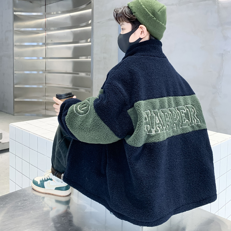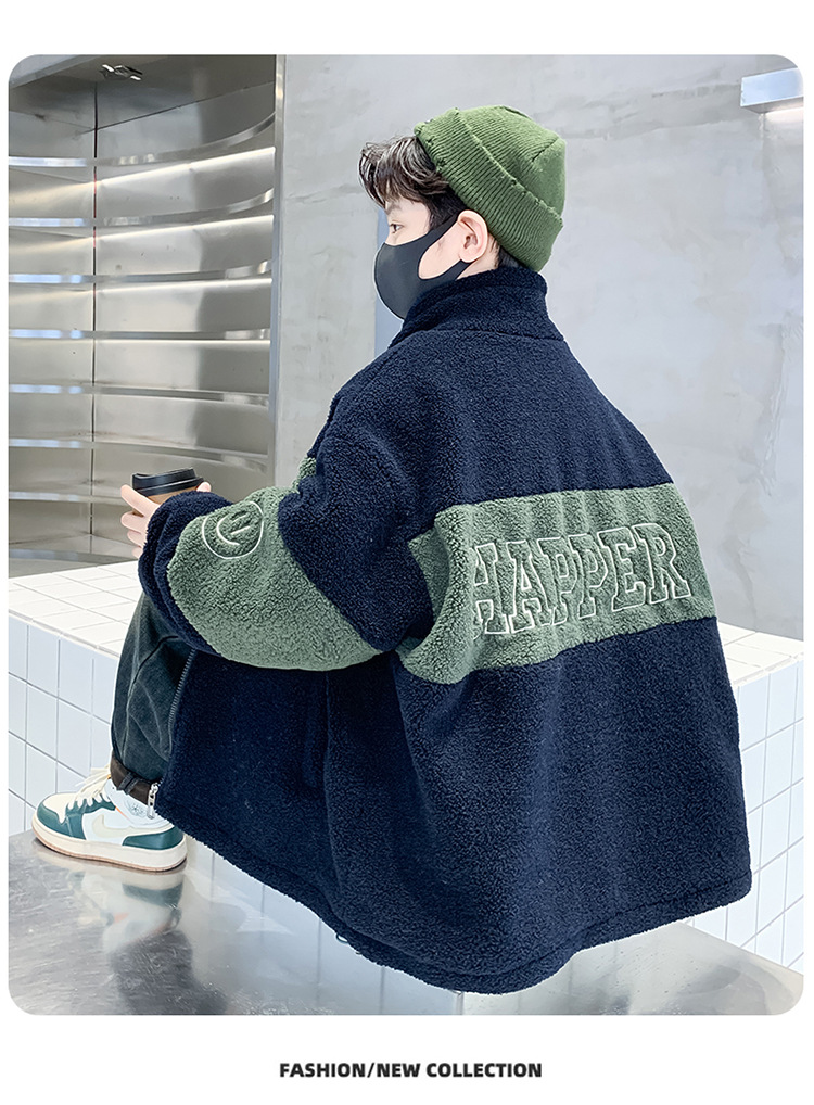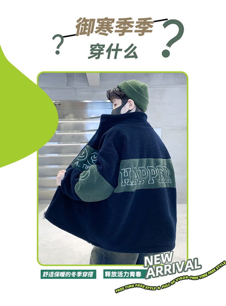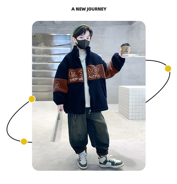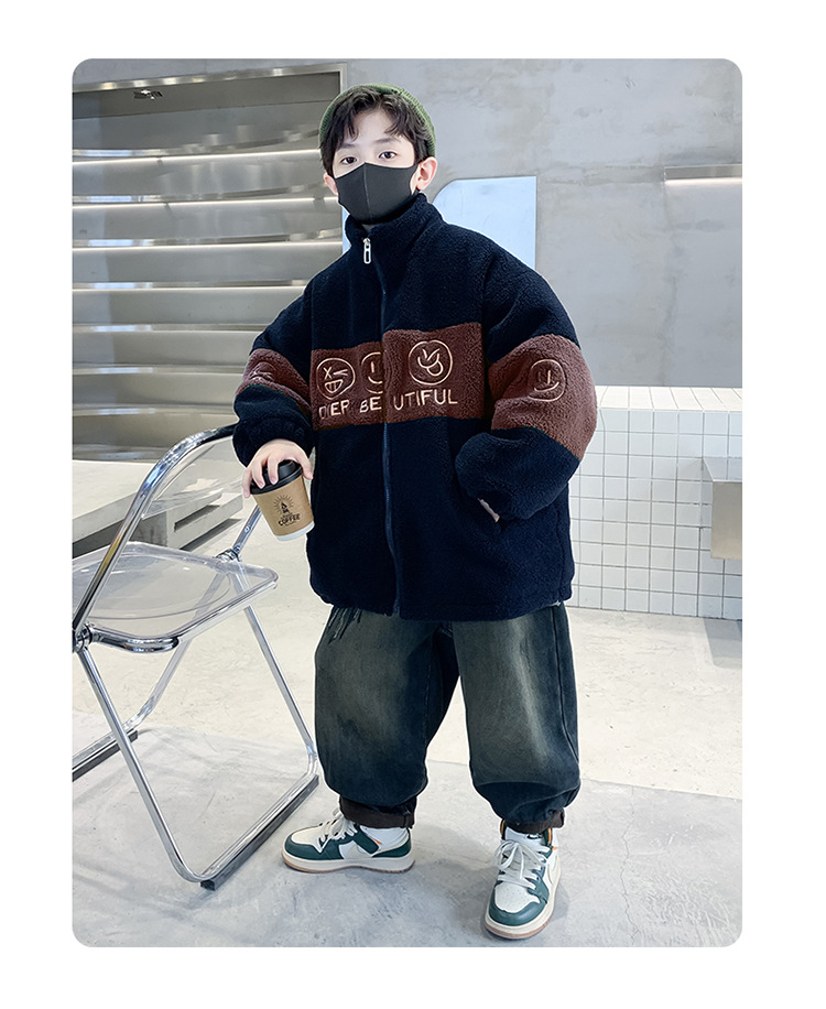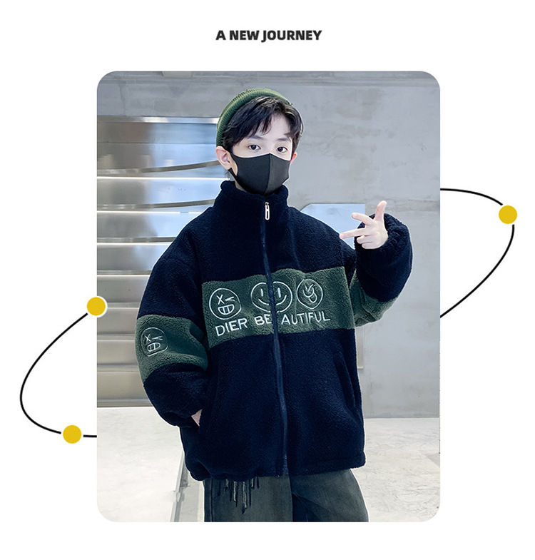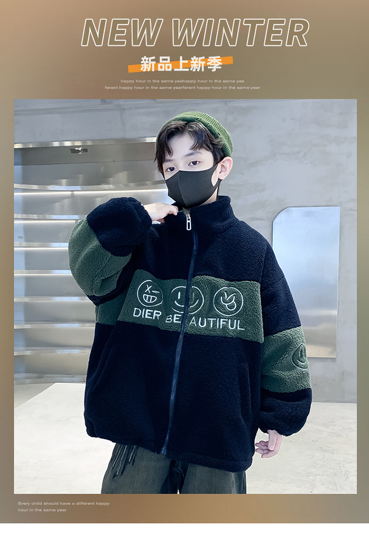 男童秋冬季加绒笑脸毛毛衣2023新款中大儿童洋气加厚保暖风衣外套