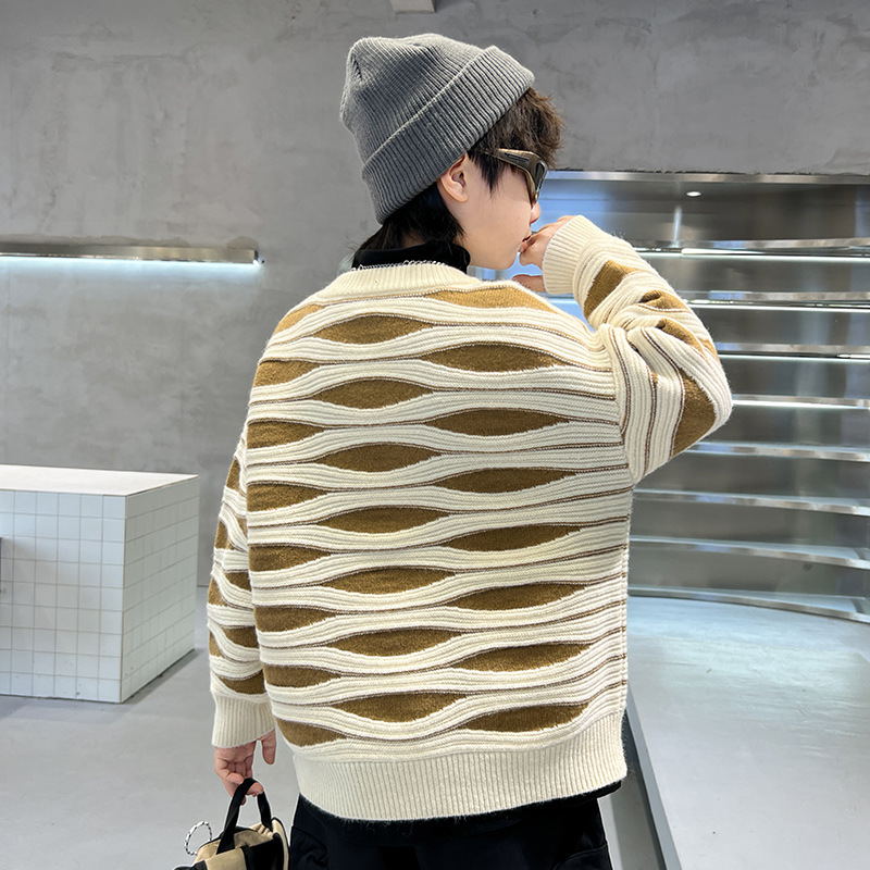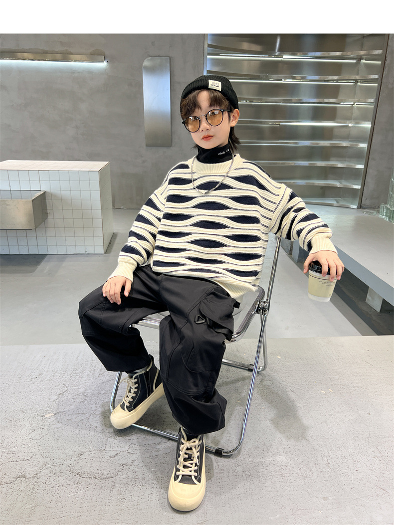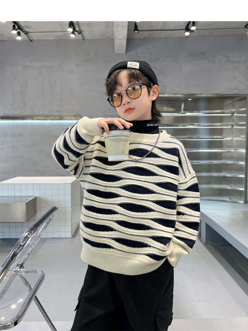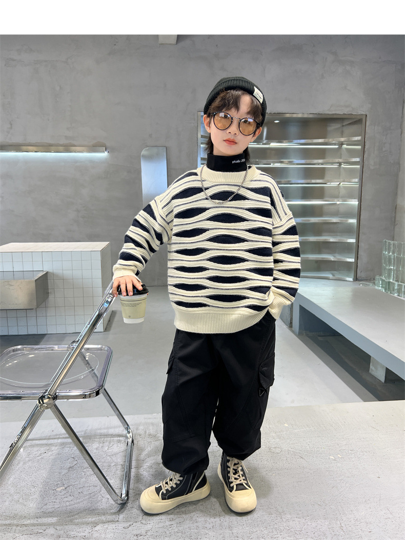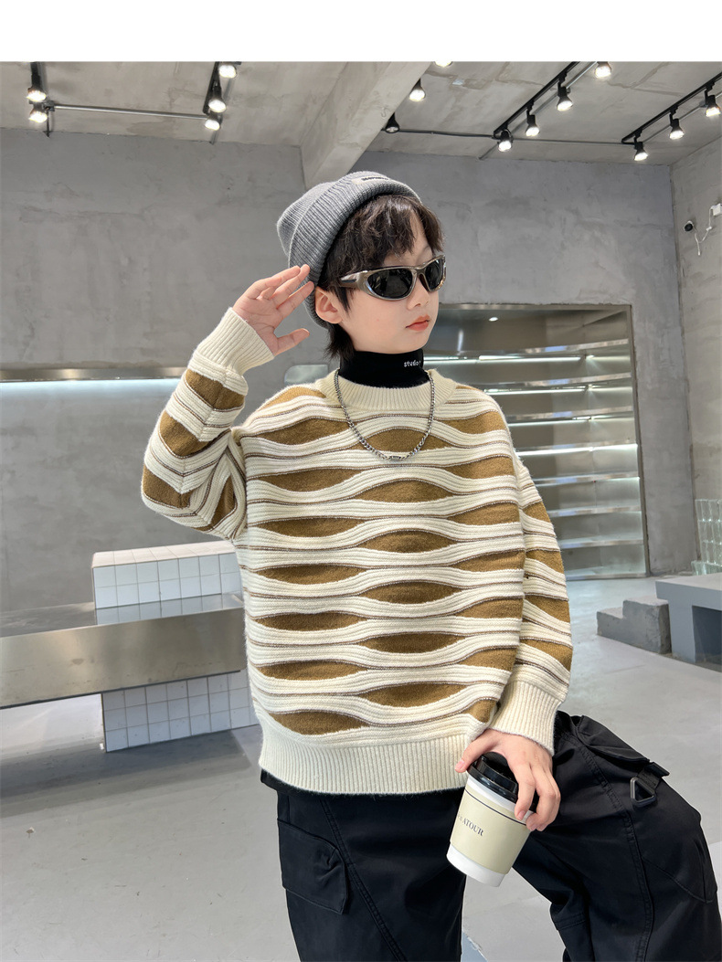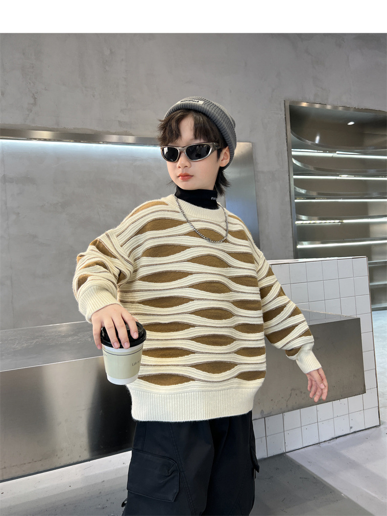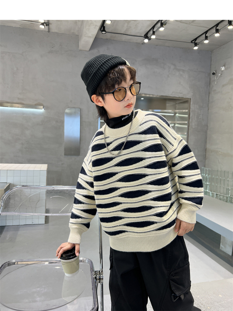 男童冬季波浪套头毛衣2023新款中大儿童洋气休闲加厚保暖针织线衫