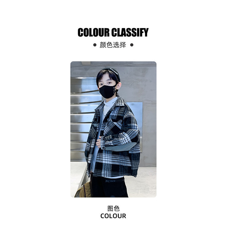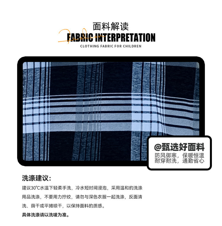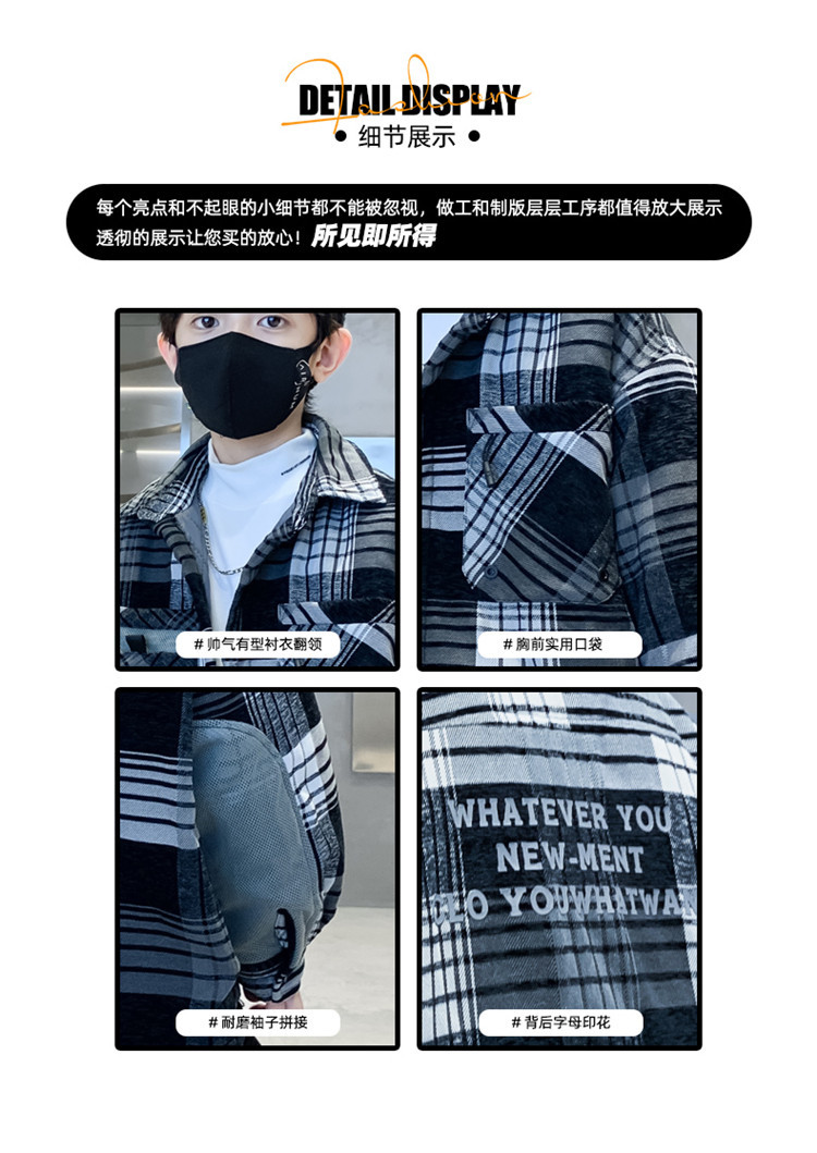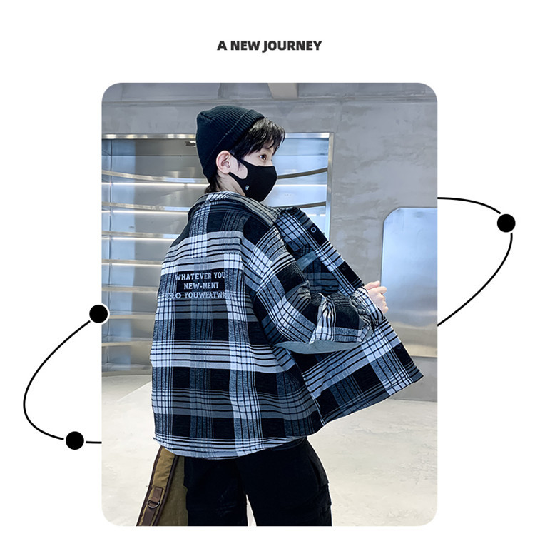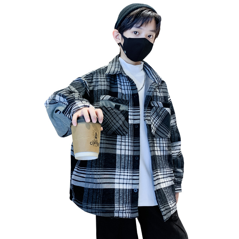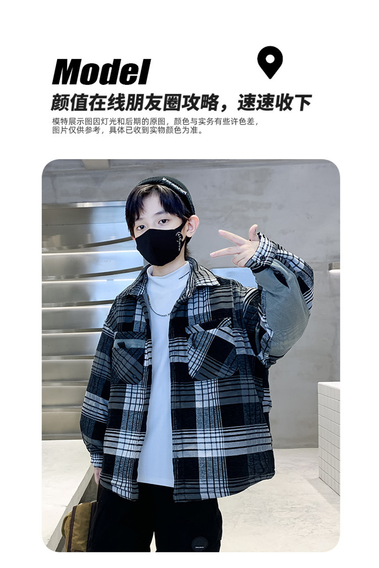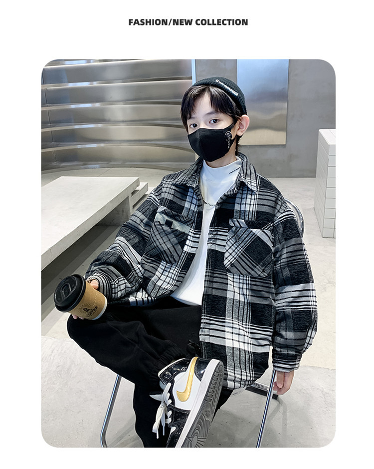男童冬季格子加棉衬衫外套2023新款中大儿童加厚保暖夹克风衣冬装