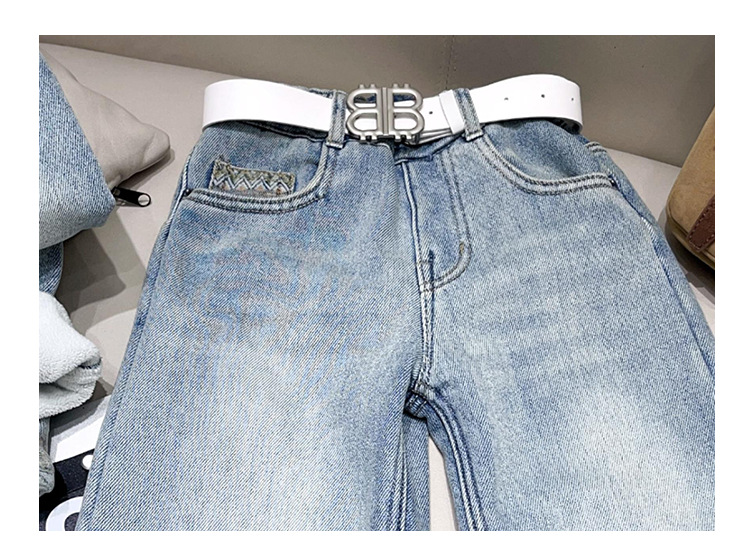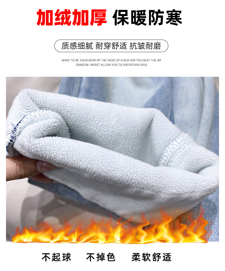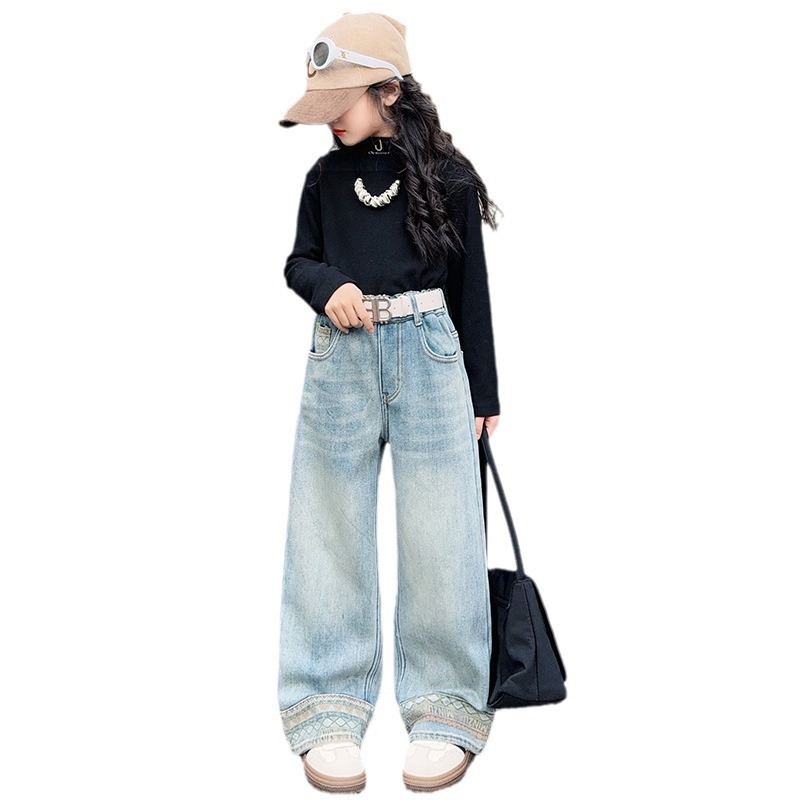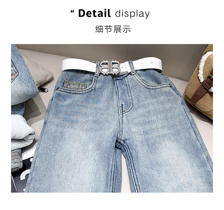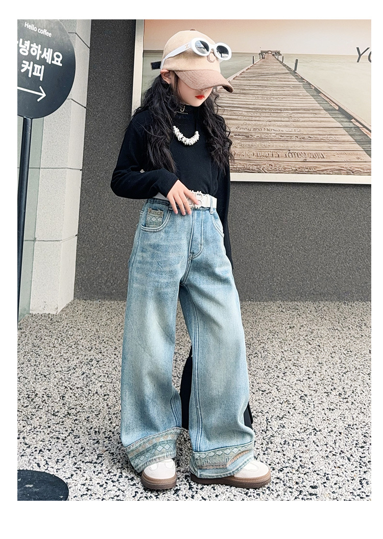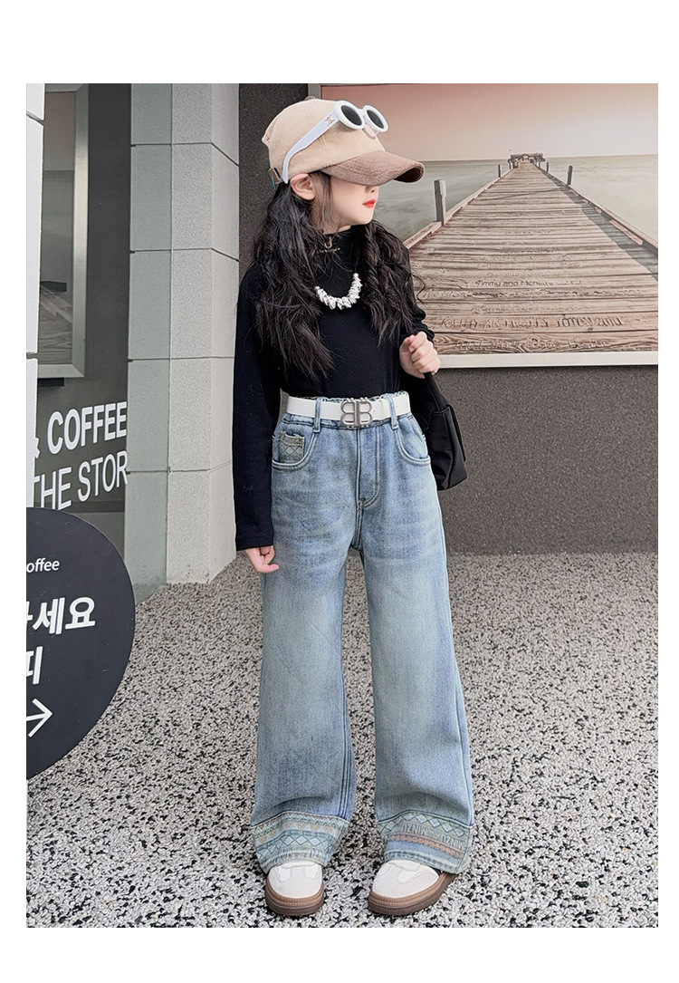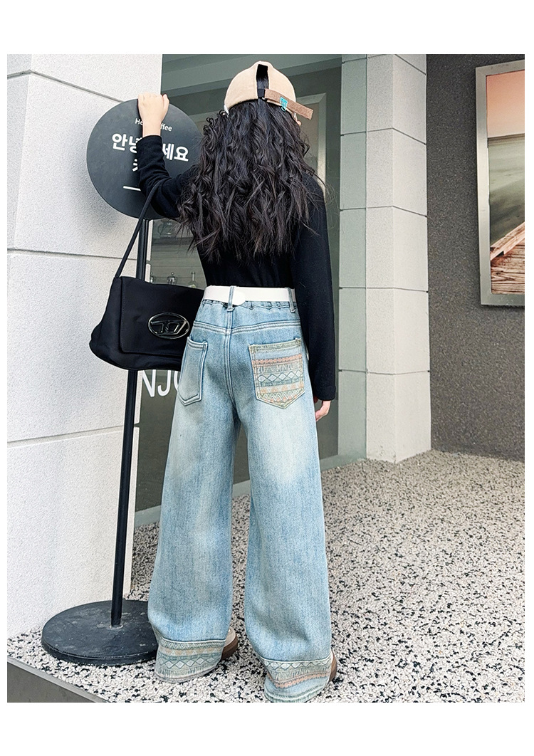 女童冬季加绒民族风牛仔裤2023新款中大儿童加厚保暖休闲裤长裤子
