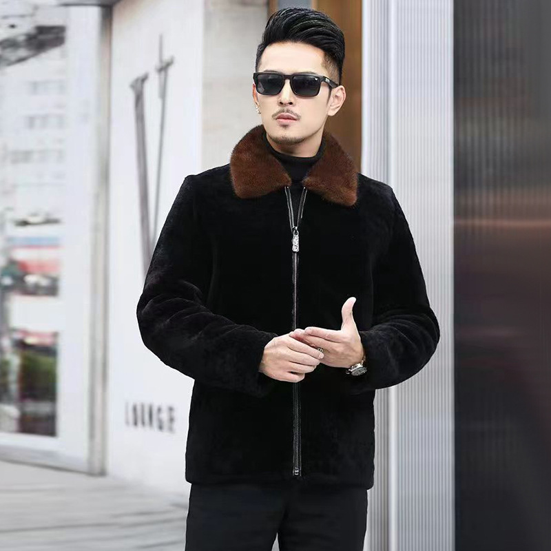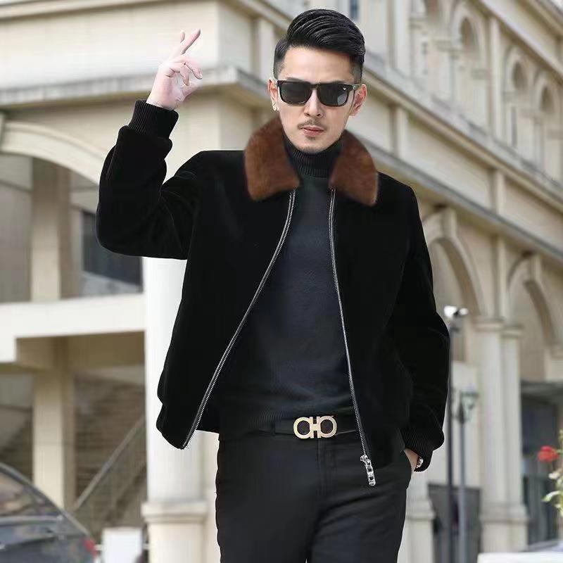 直播厂家货源冬季新款男士白领貂外套 休闲宽松仿水貂绒海宁皮草