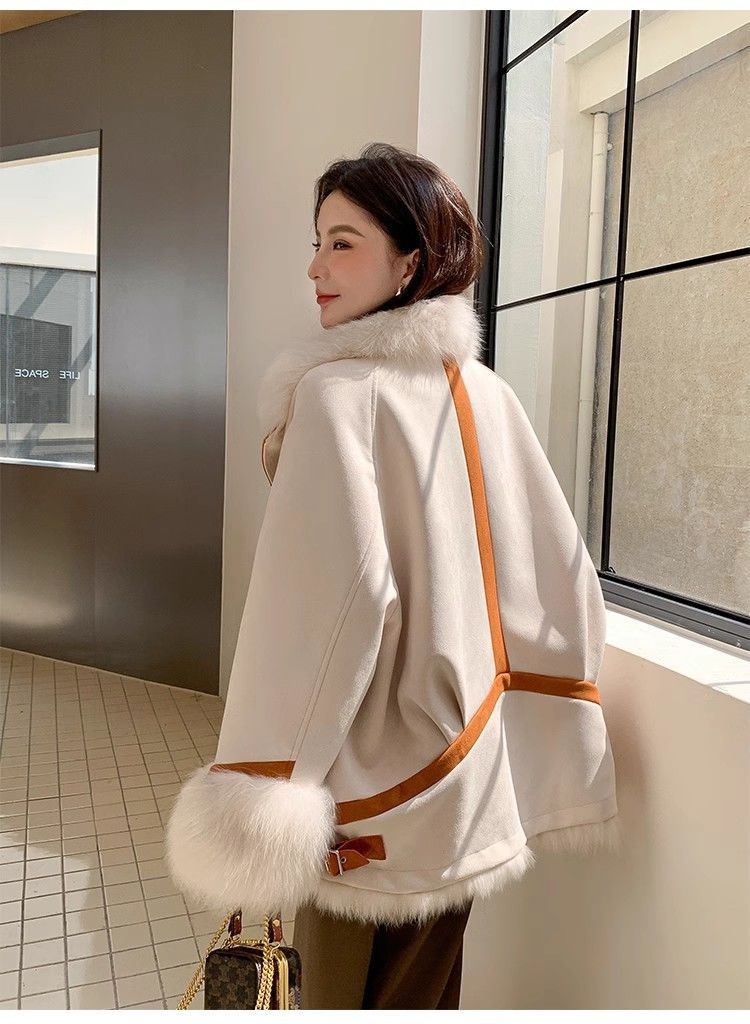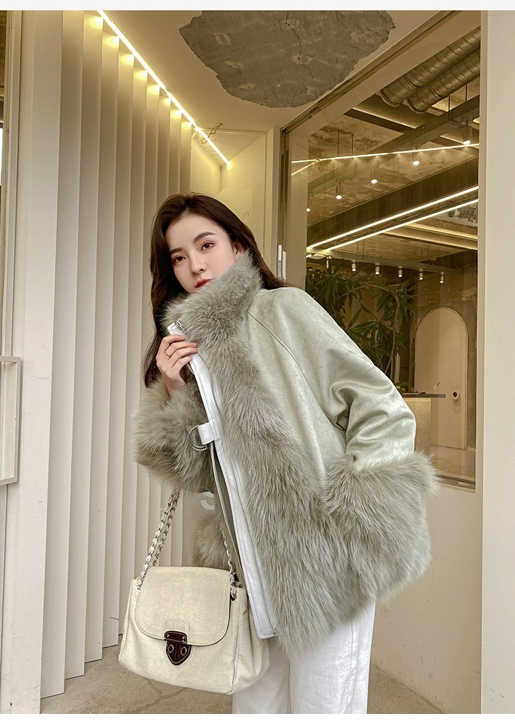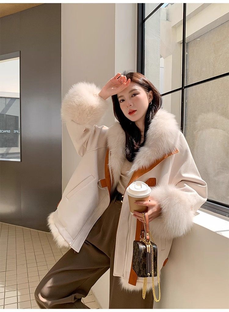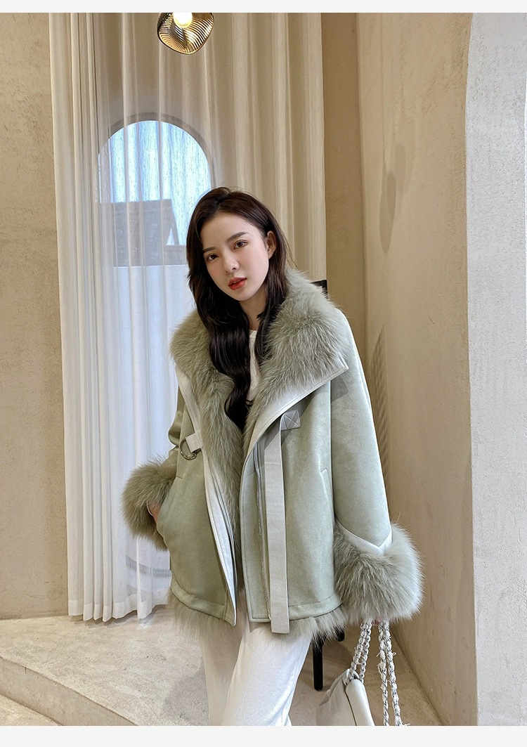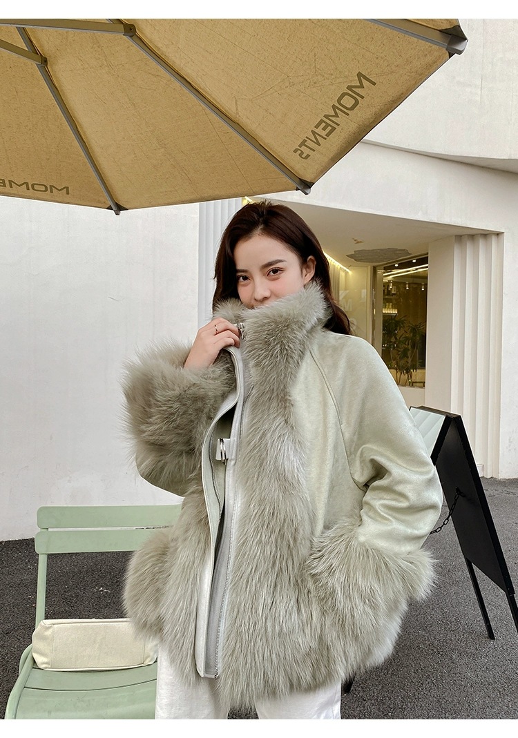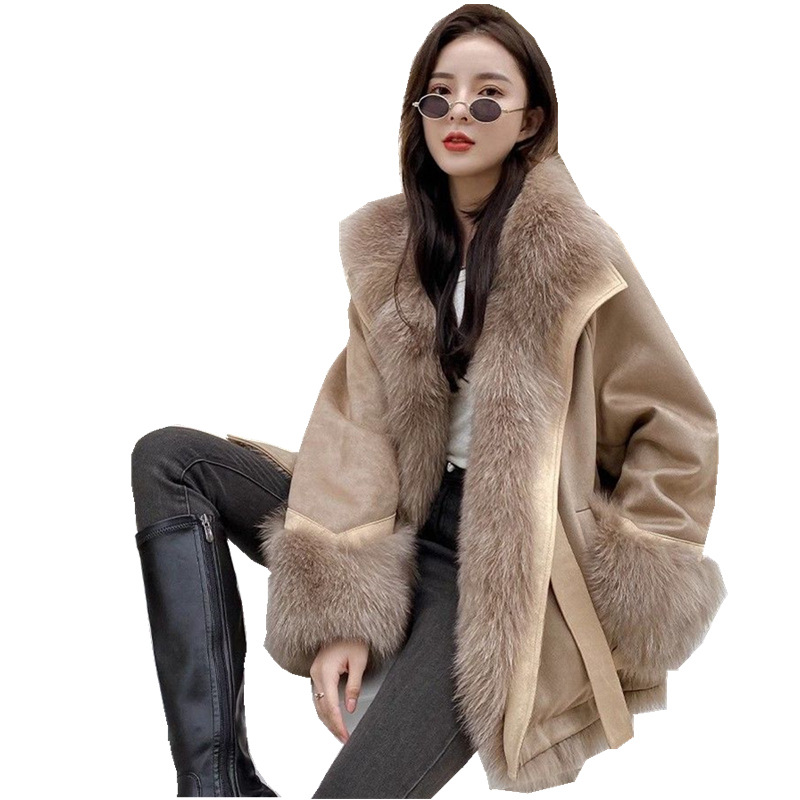 麂皮绒拼接狐狸毛皮草内胆派克服外套女中长款2023新款小个子年轻
