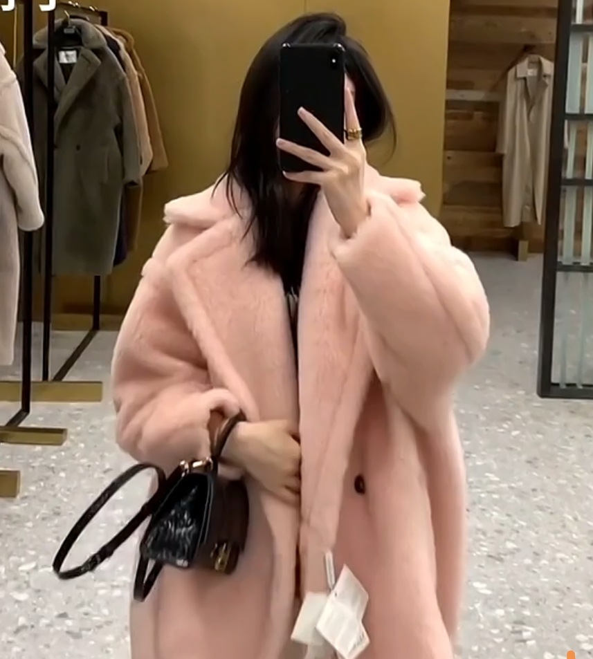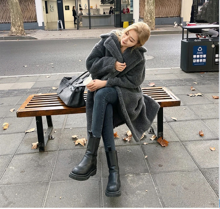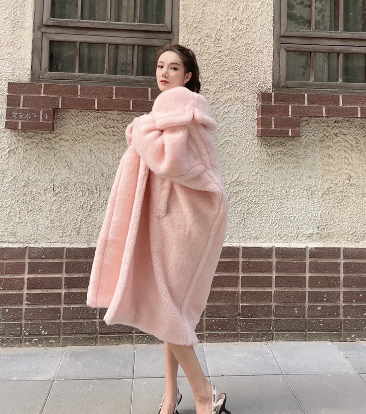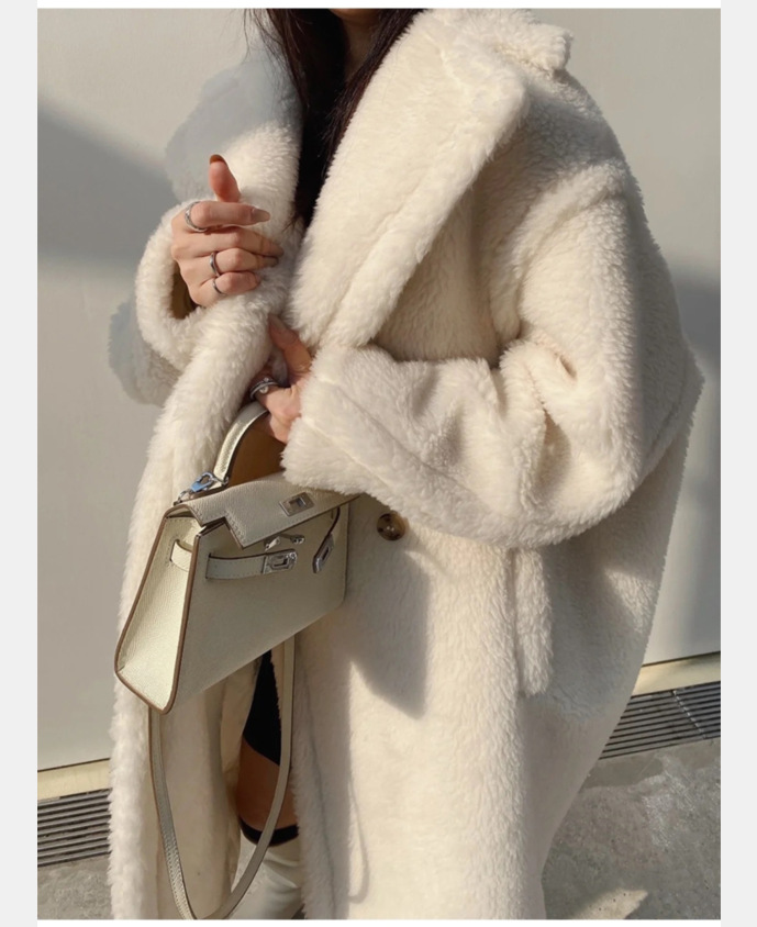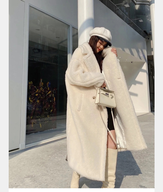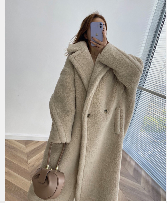 M家皮草Teddy 廓形新款泰迪熊大衣冬季羊驼绒中长款羊羔毛外套女