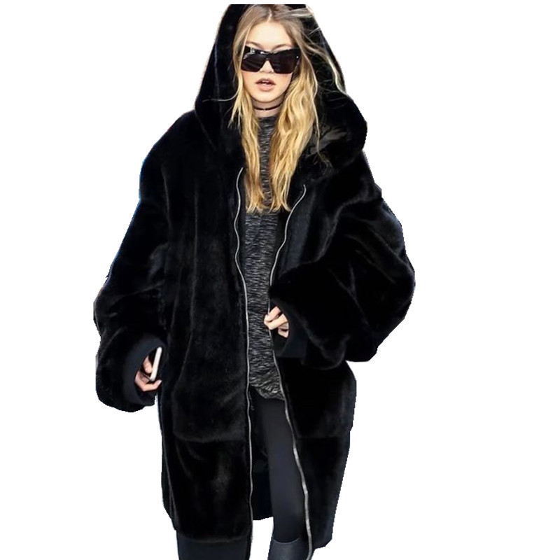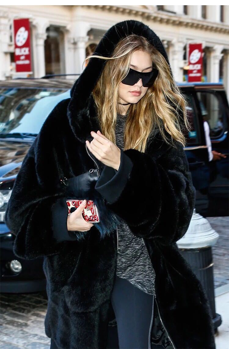 海宁皮草大衣Gigi同款獭兔毛加厚连帽仿皮草长款毛绒外套批发零售