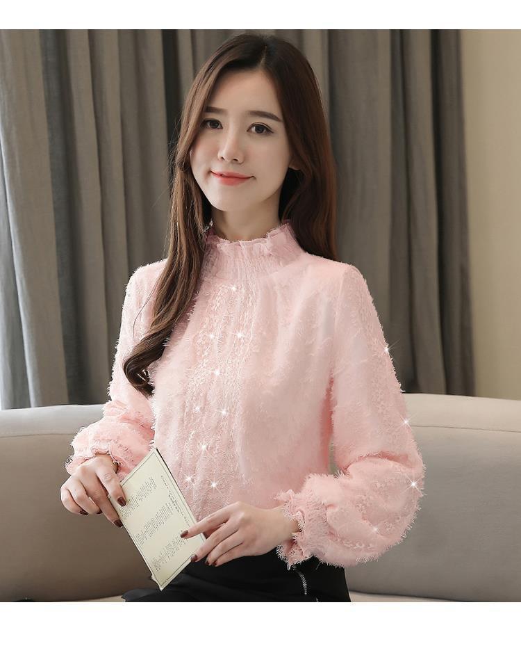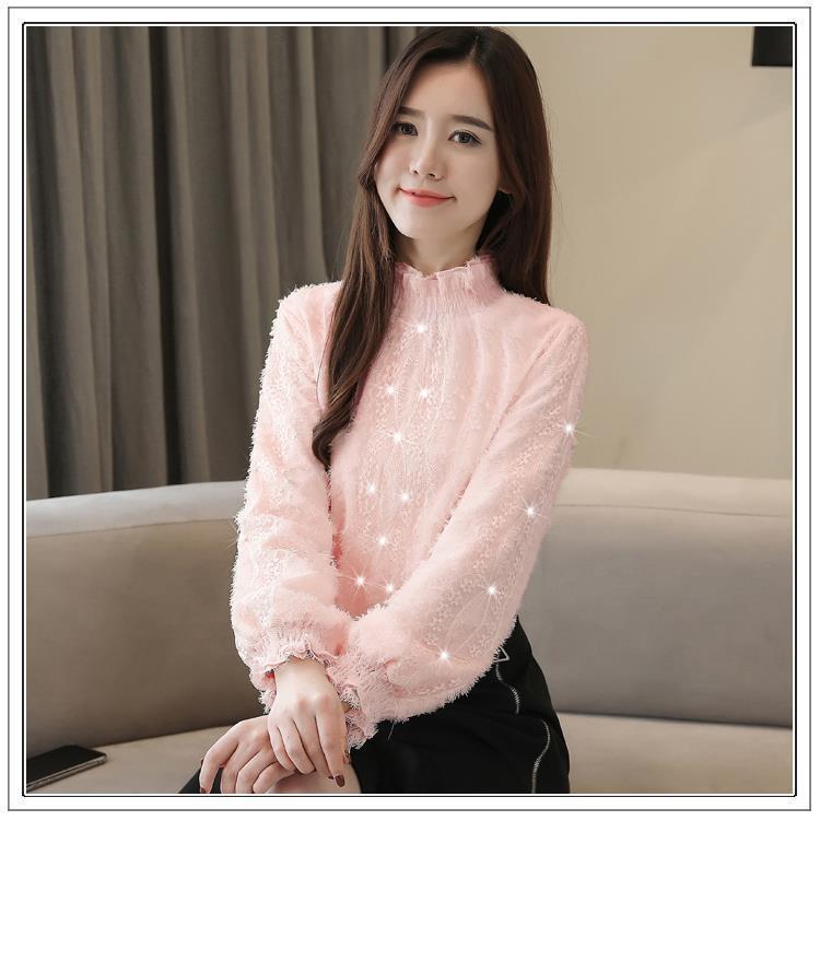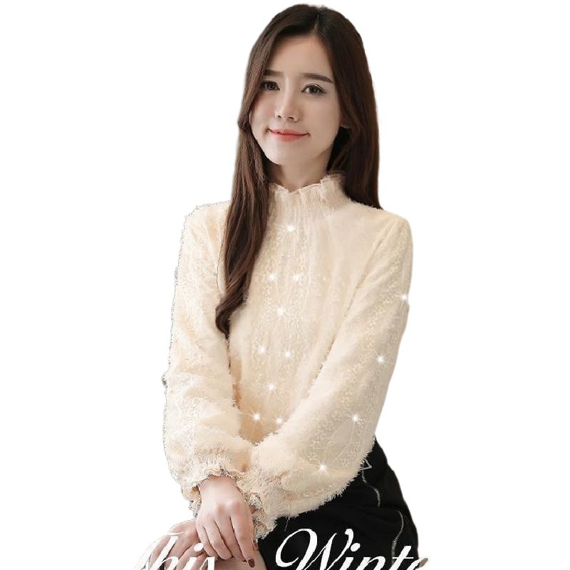 蕾丝加绒加厚打底衫女装秋冬装2023年新款潮雪纺衬衫植绒上衣洋气