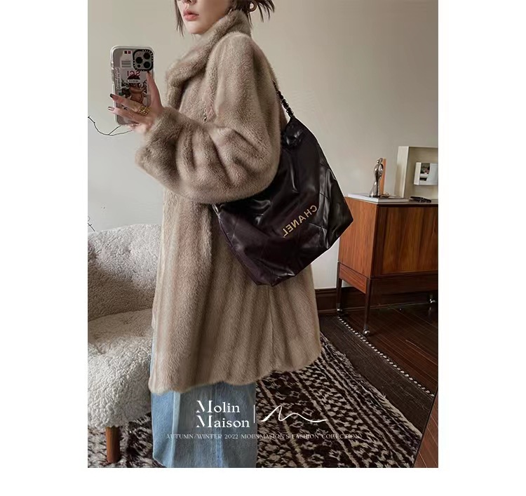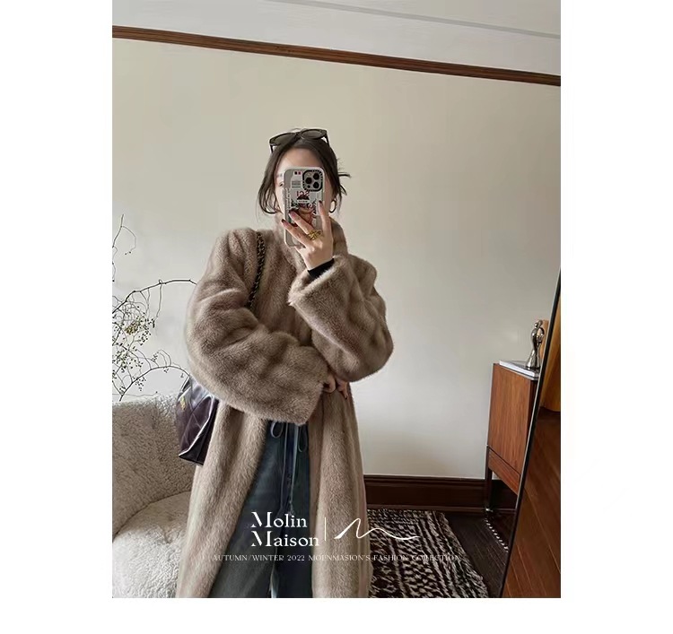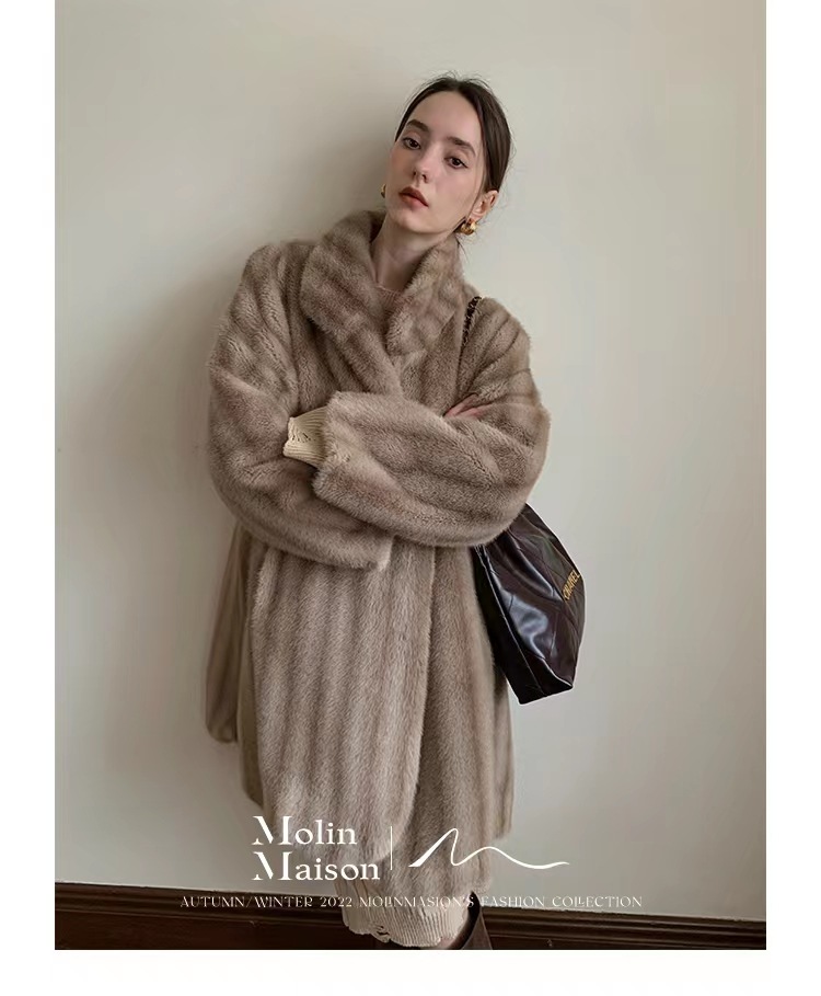 一件代发中古皮草外套大衣女气质高端环保皮草立领保暖冬季新款潮