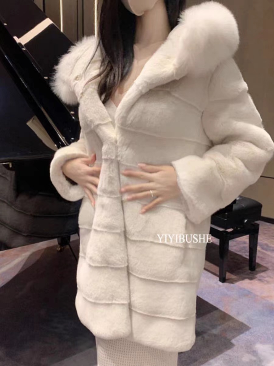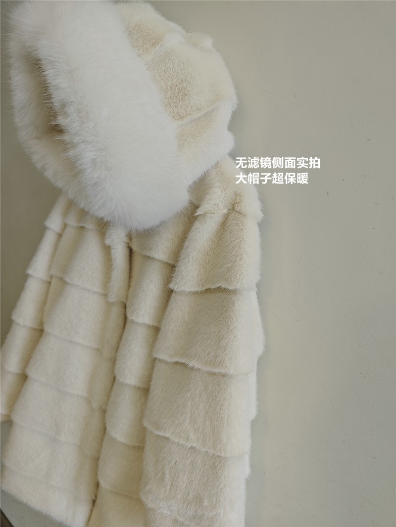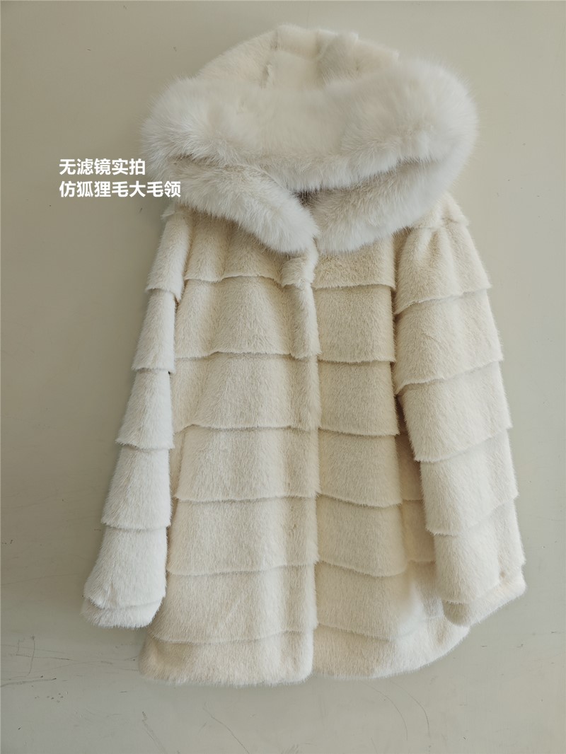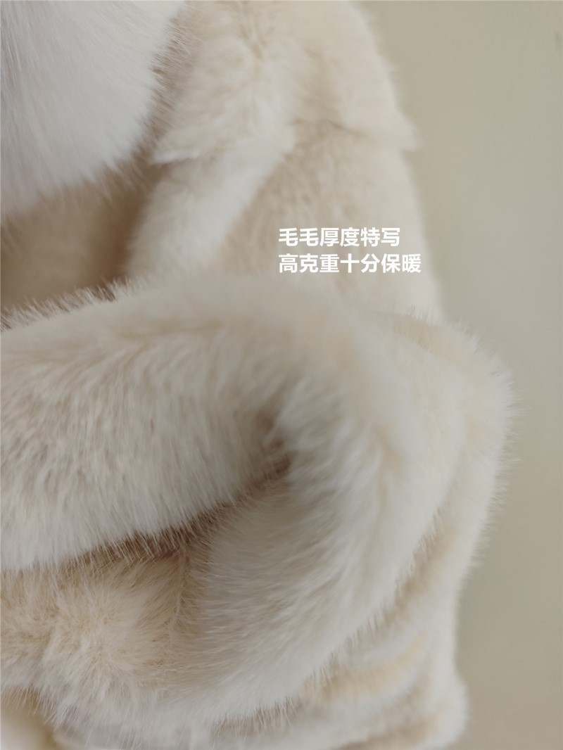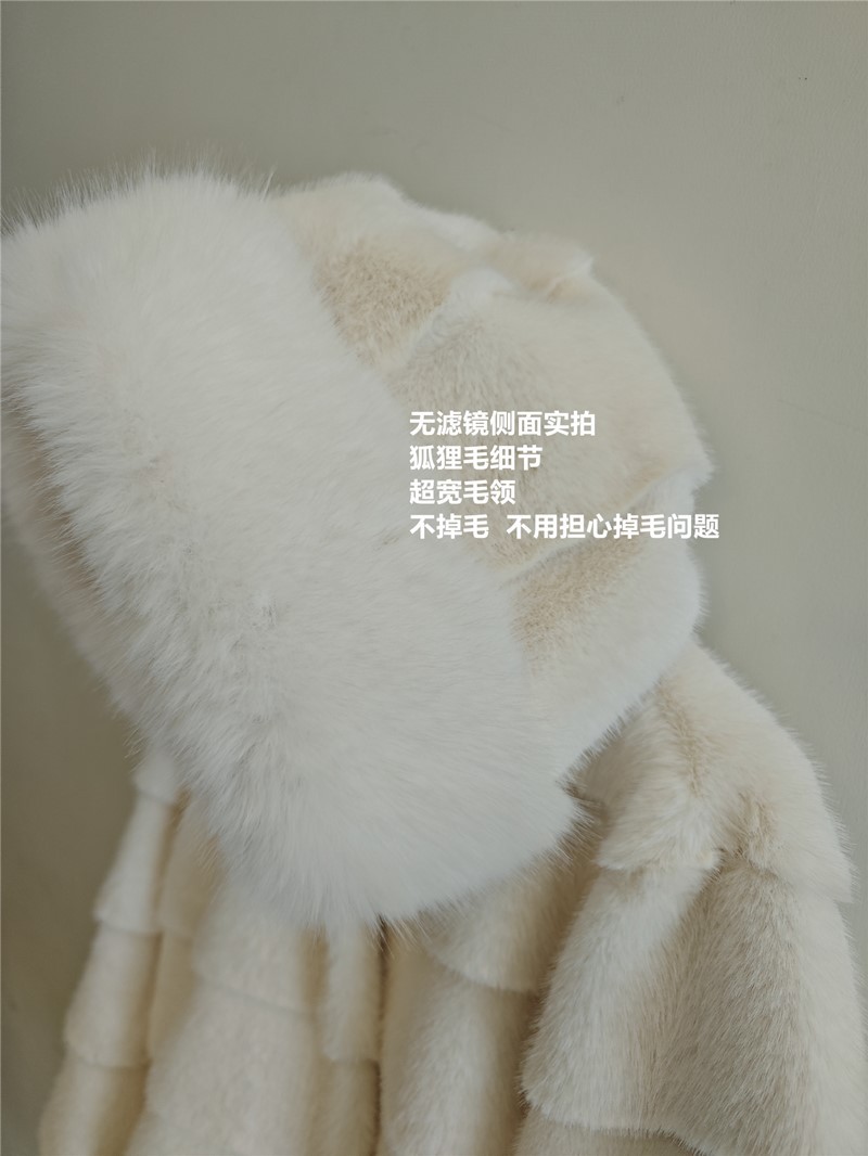 韩国环保皮草大衣女连帽毛领仿皮草长款女冬季外套温柔风名媛