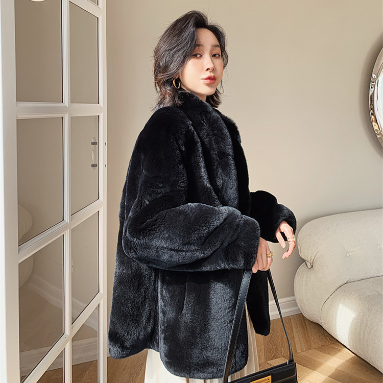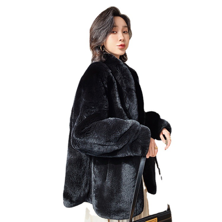 水貂外套大衣女中长款人造毛上衣站领灯笼袖时尚保暖毛绒冬季女装