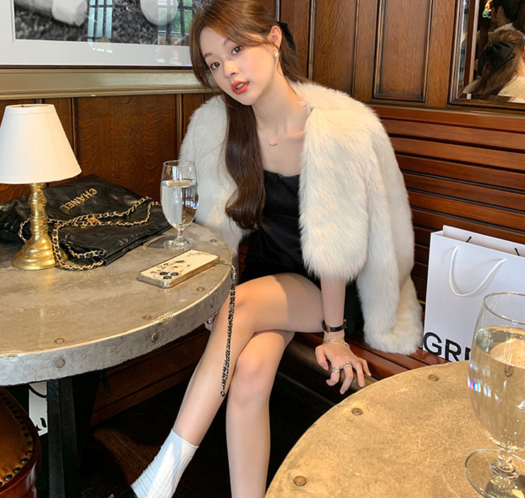 【特拍】狐狸毛小短款宽松环保皮草时尚欧美范仿皮草外套女