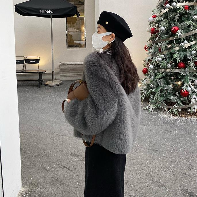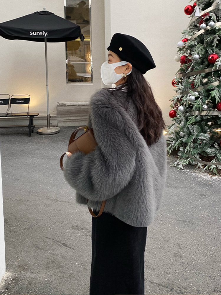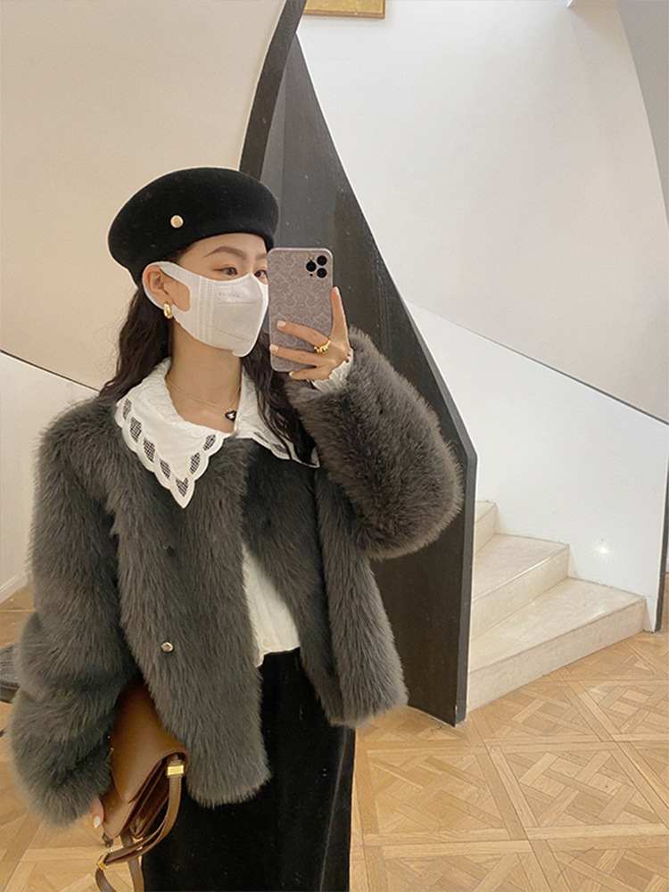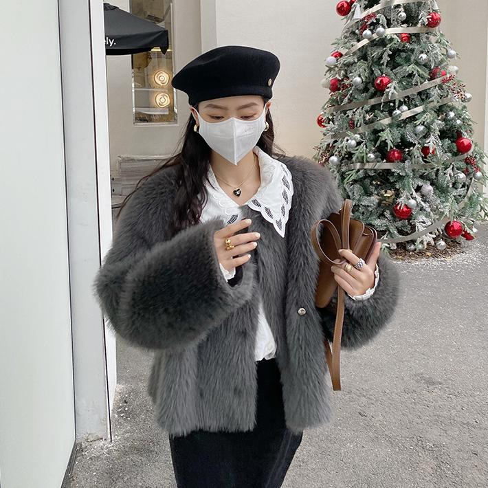 2022毛毛皮草外套女短款无领仿皮毛大衣环保皮草富贵范 托斯卡纳